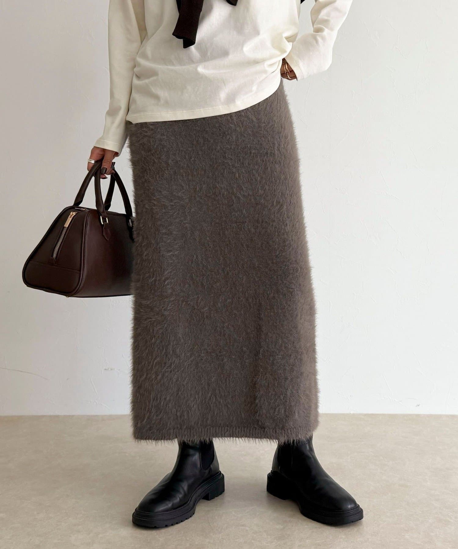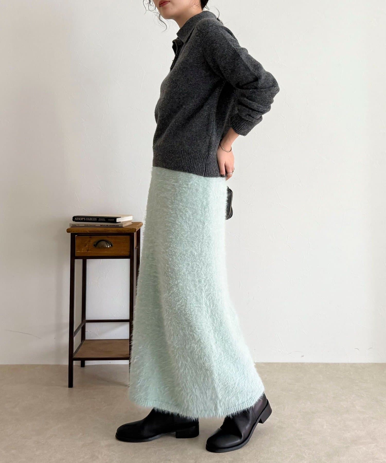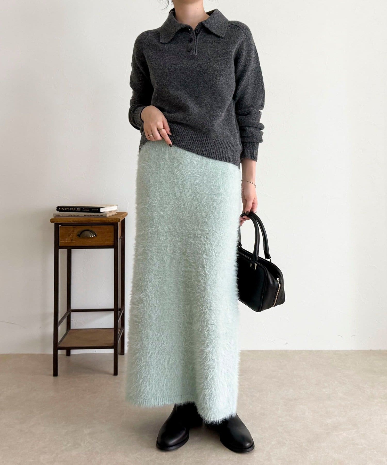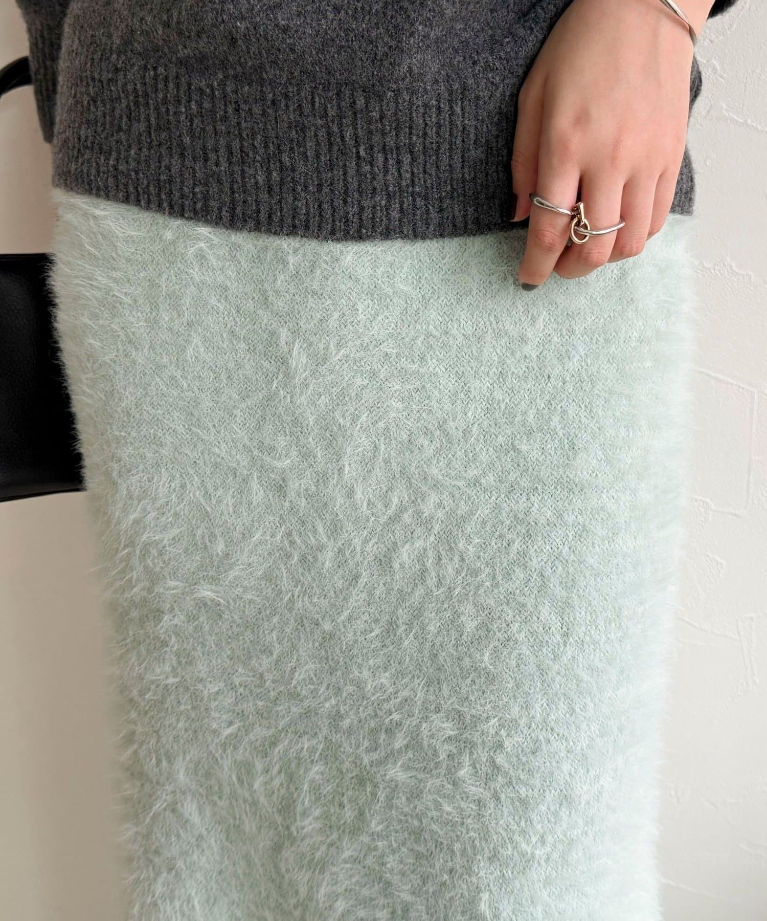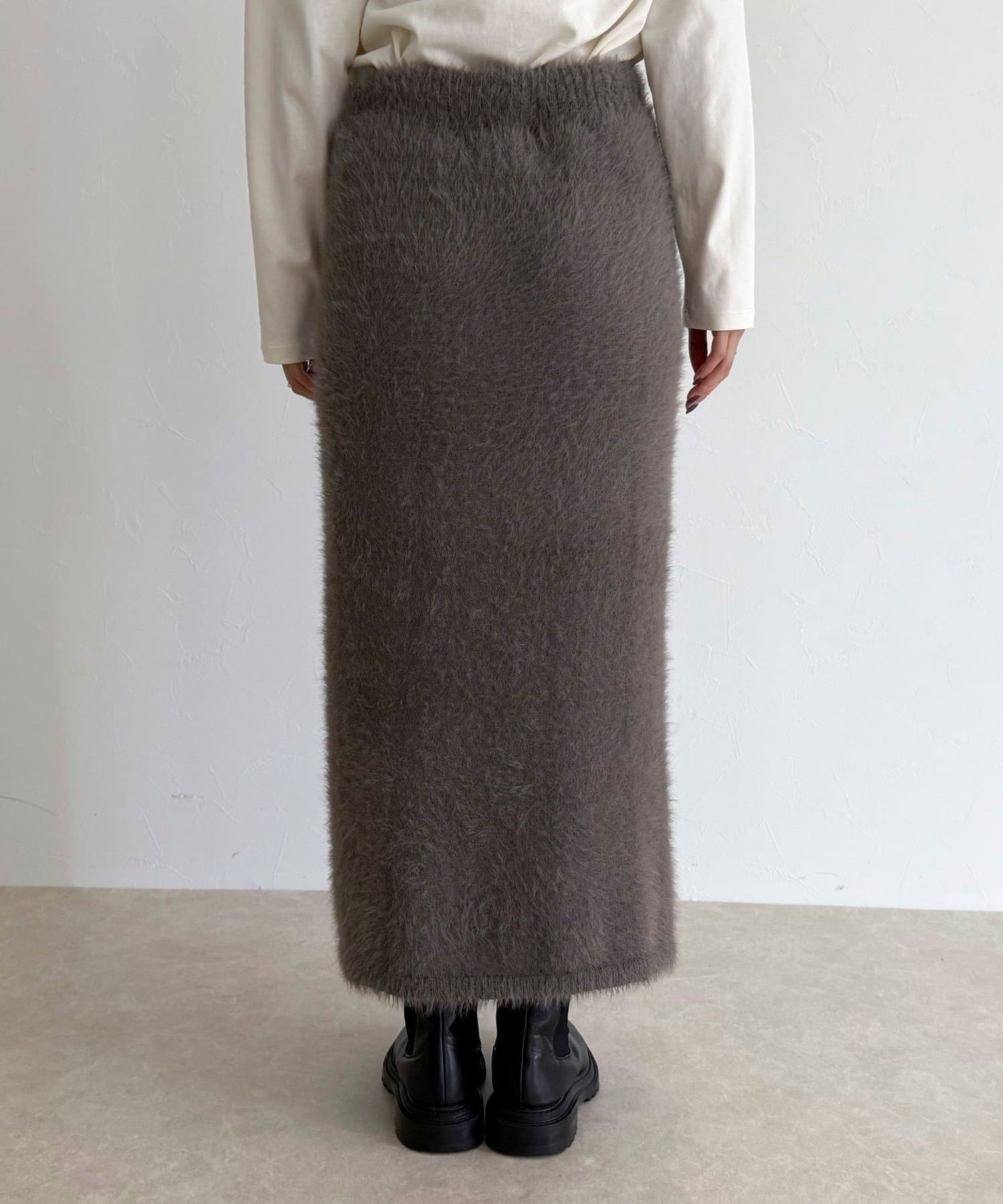 ・柔らかなシャギー素材を使用した、シーズンムード高まるニットスカート