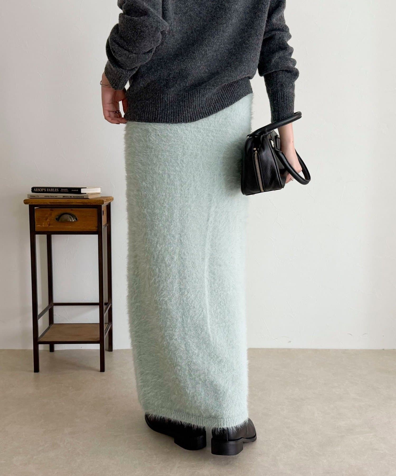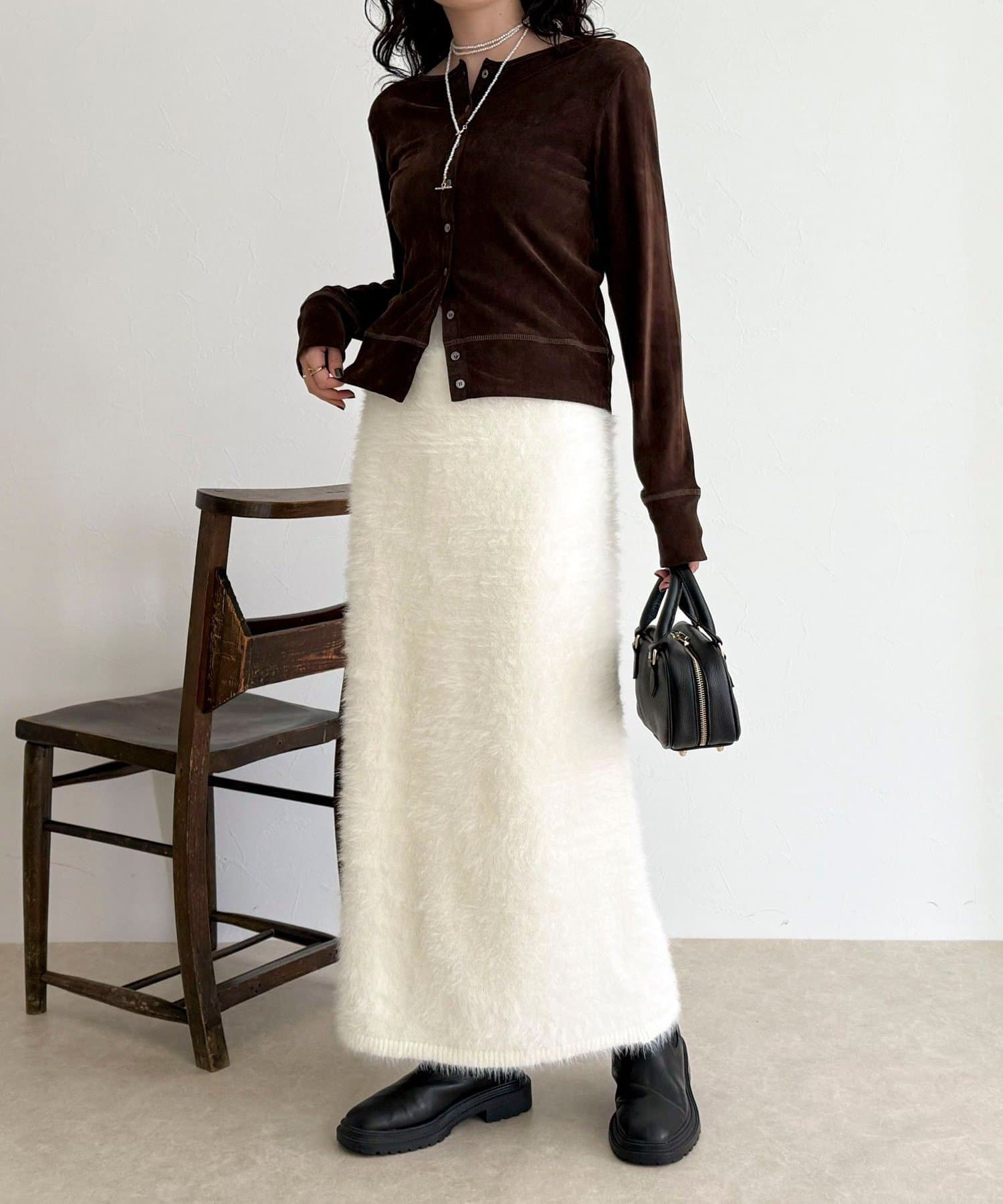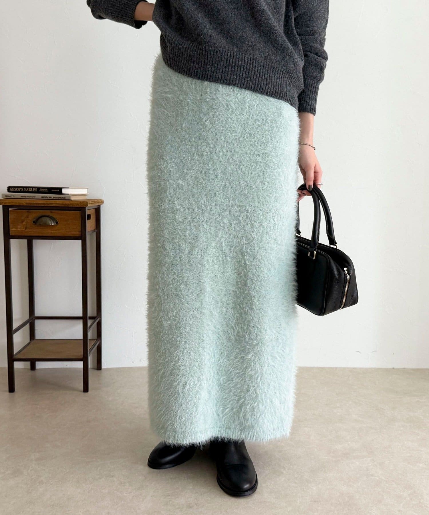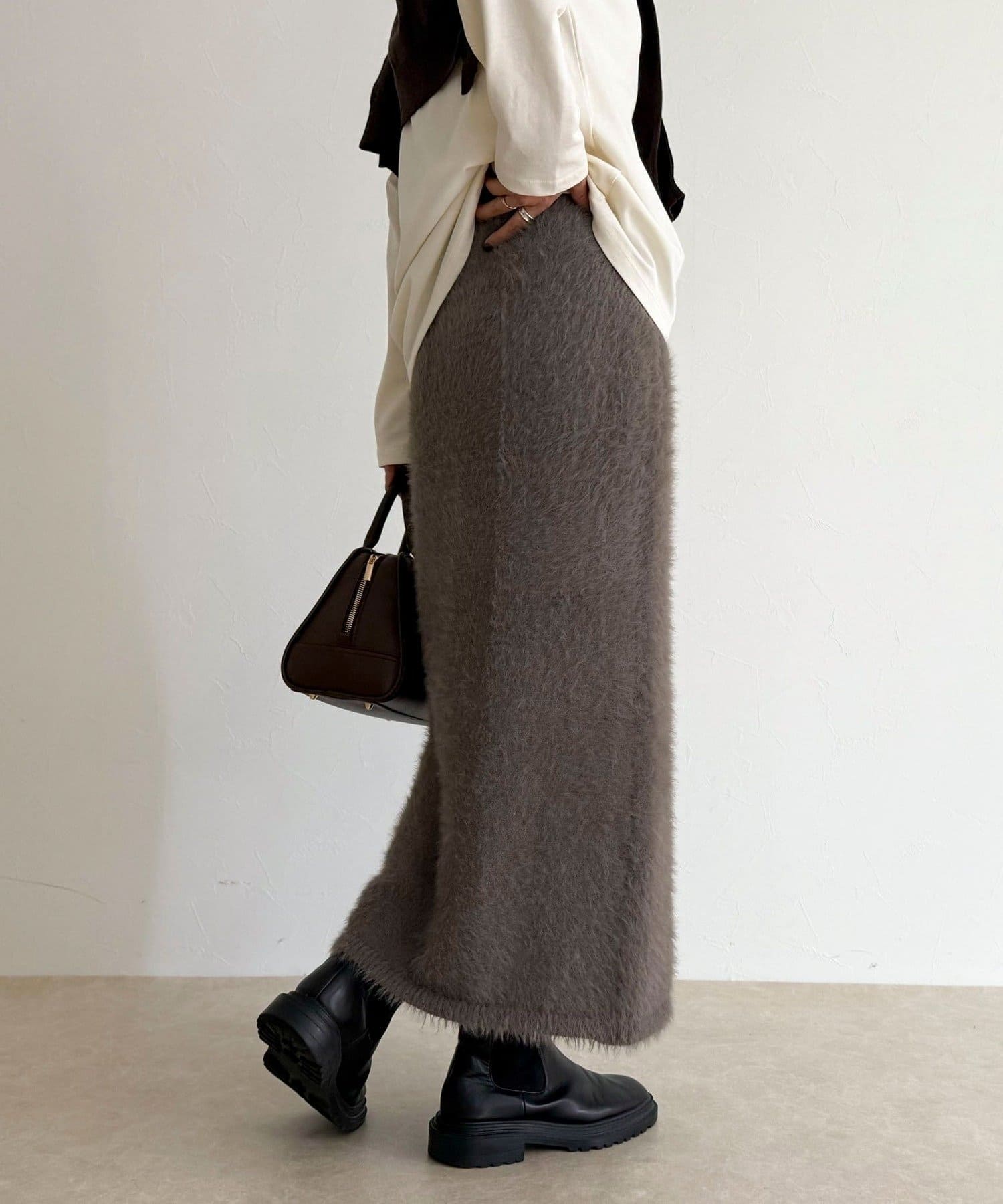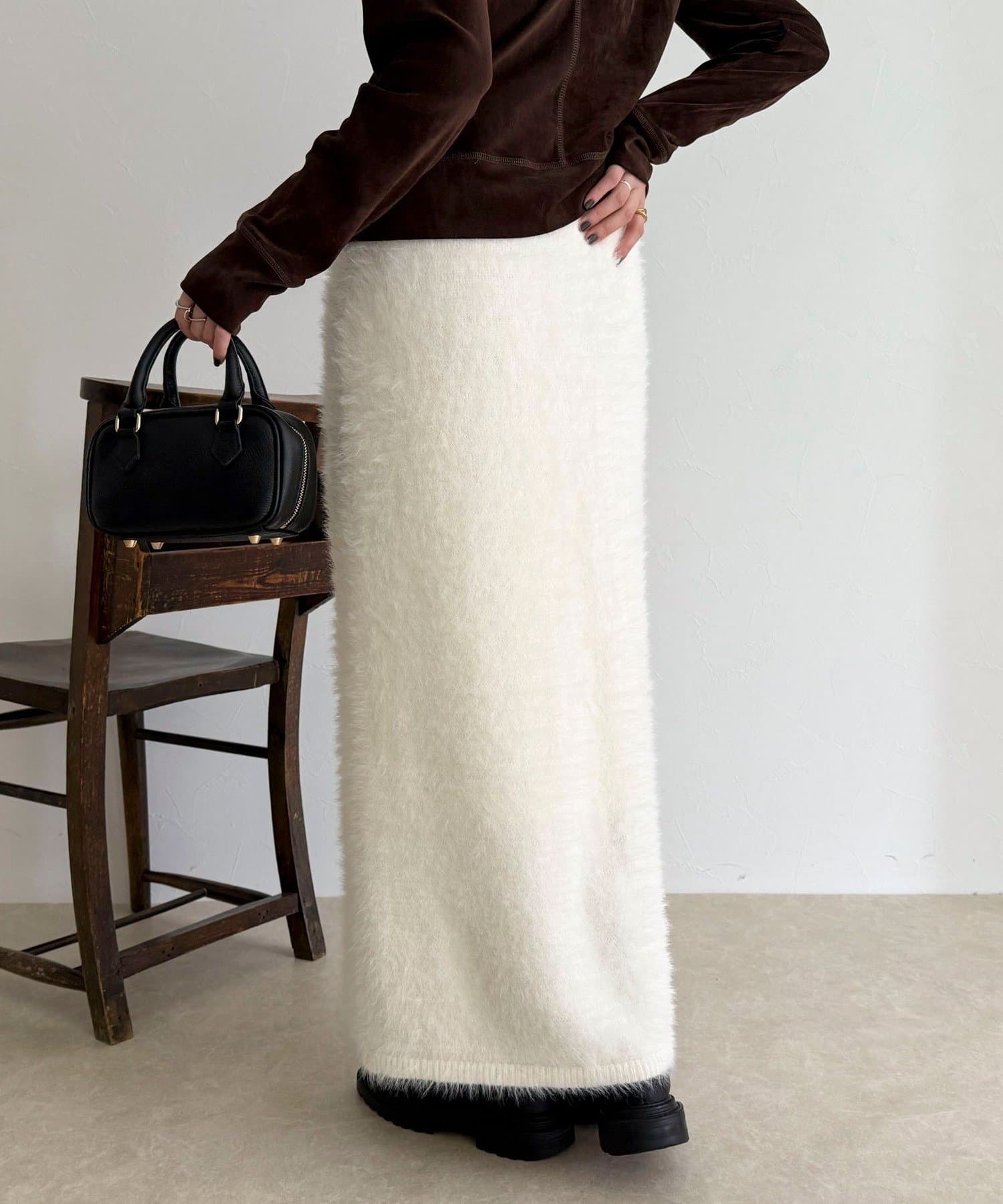 ・柔らかなシャギー素材を使用した、シーズンムード高まるニットスカート
