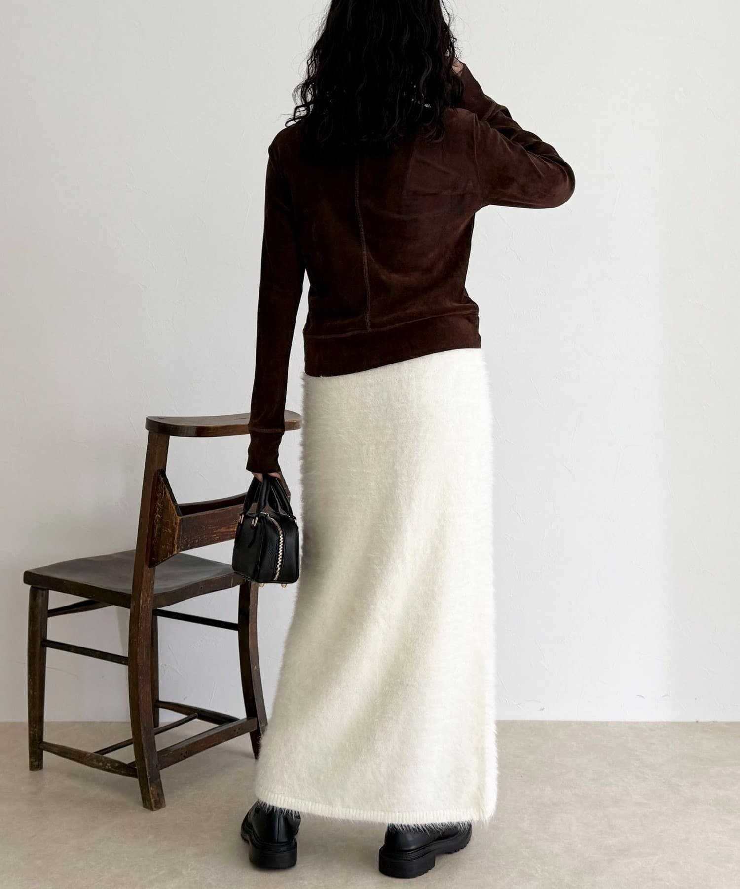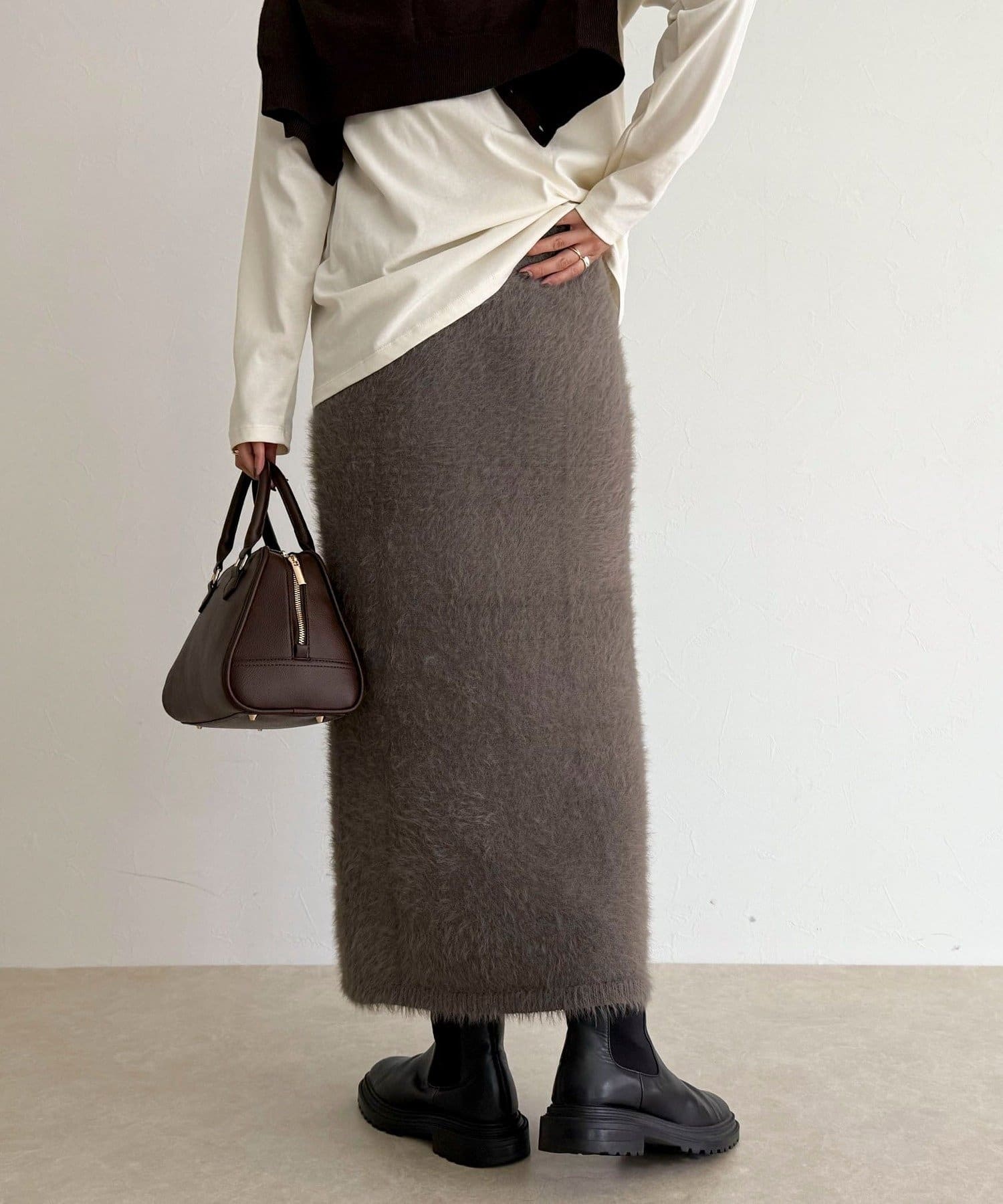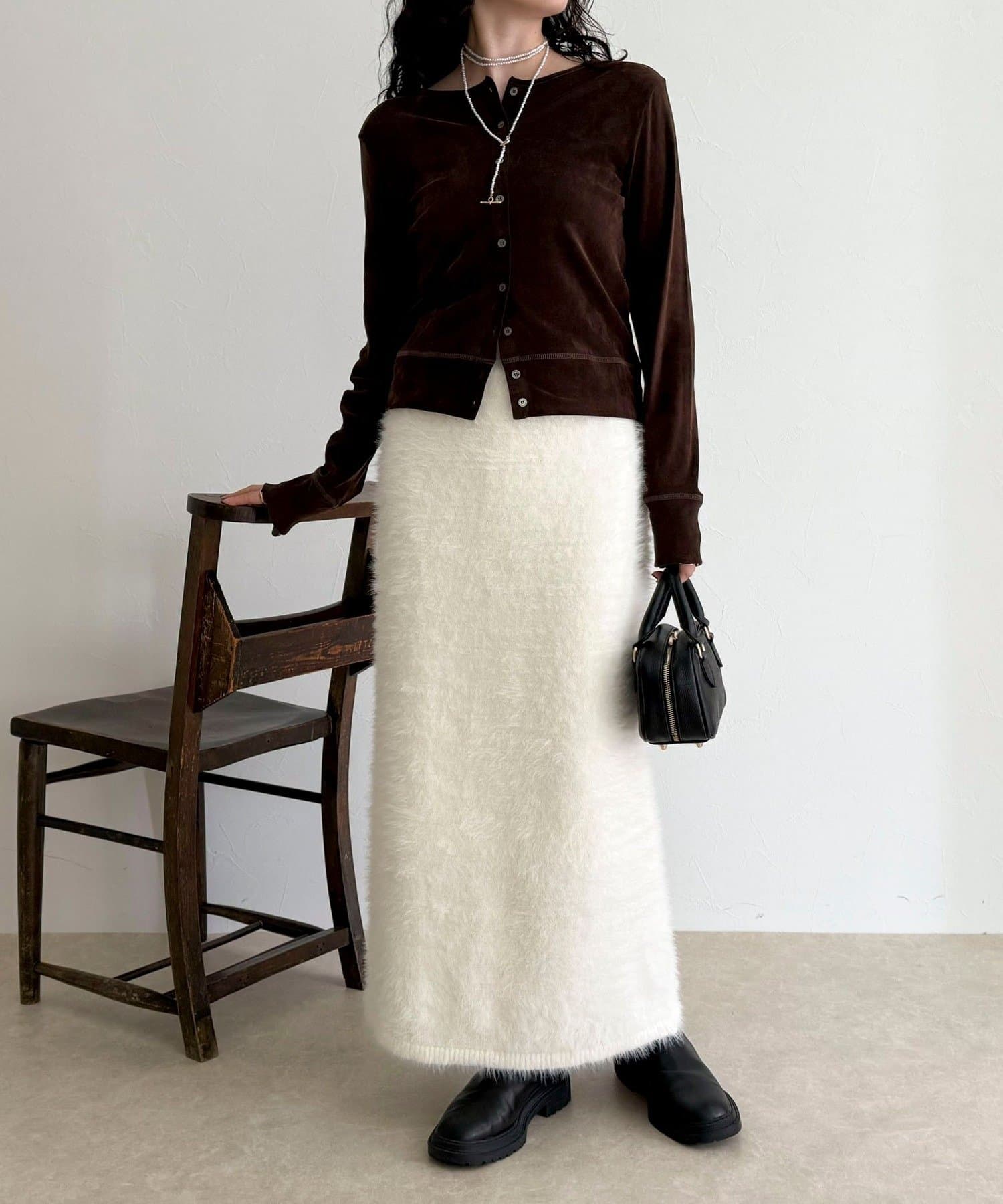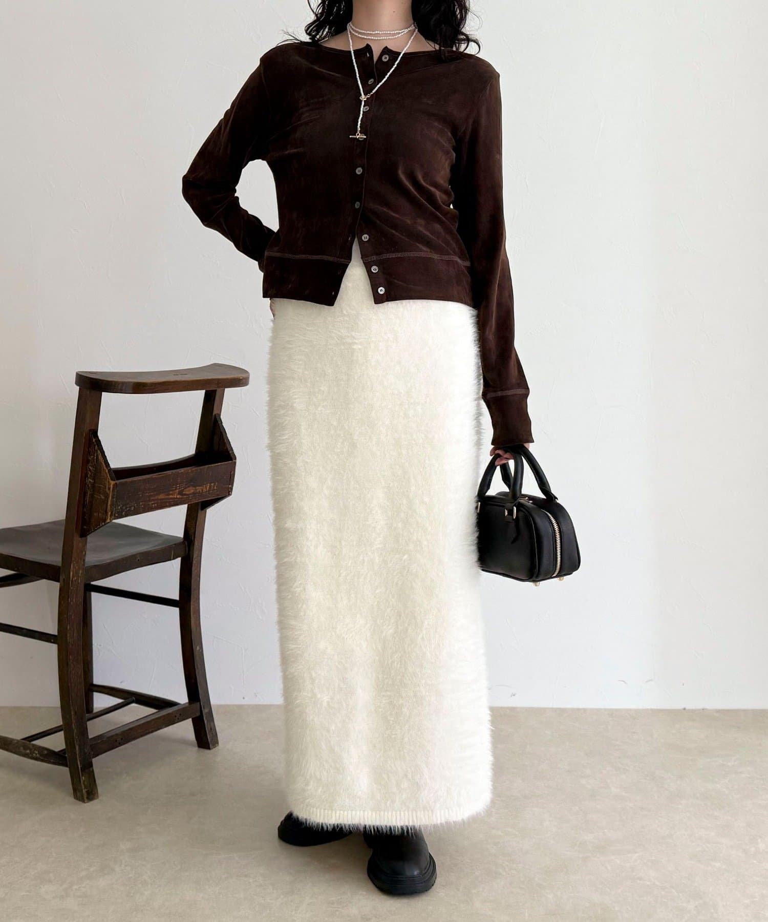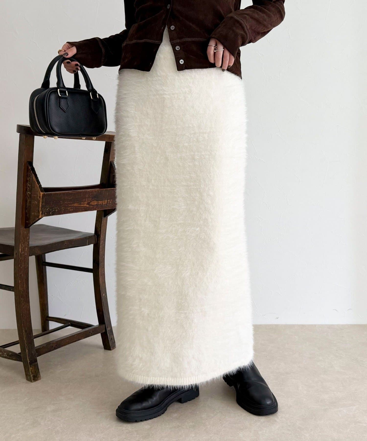 ・柔らかなシャギー素材を使用した、シーズンムード高まるニットスカート