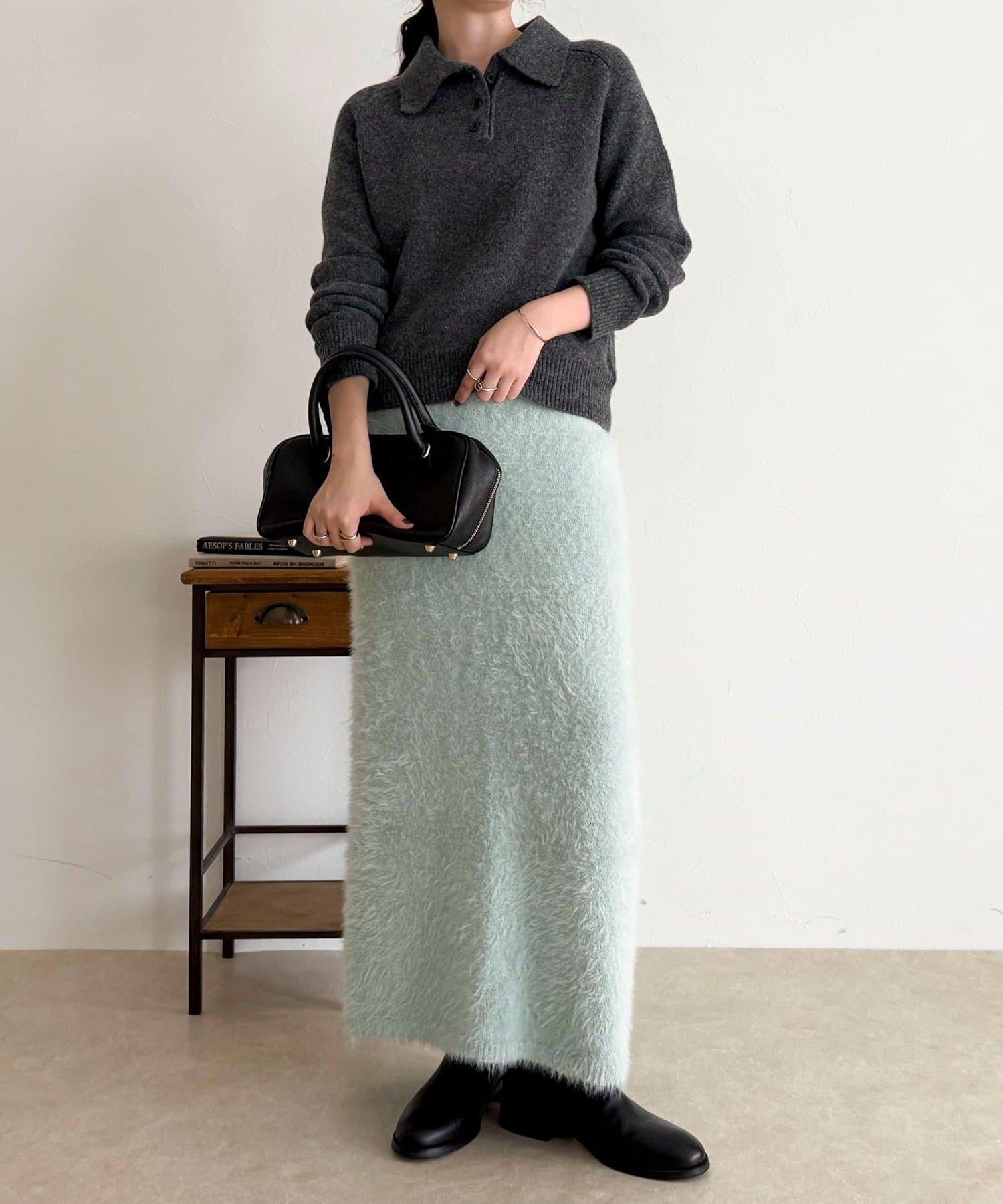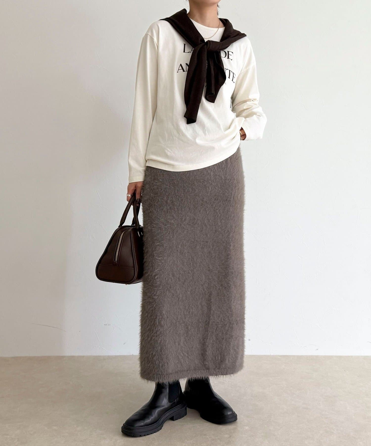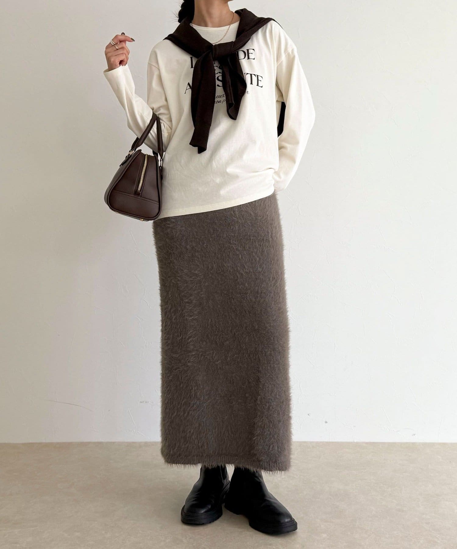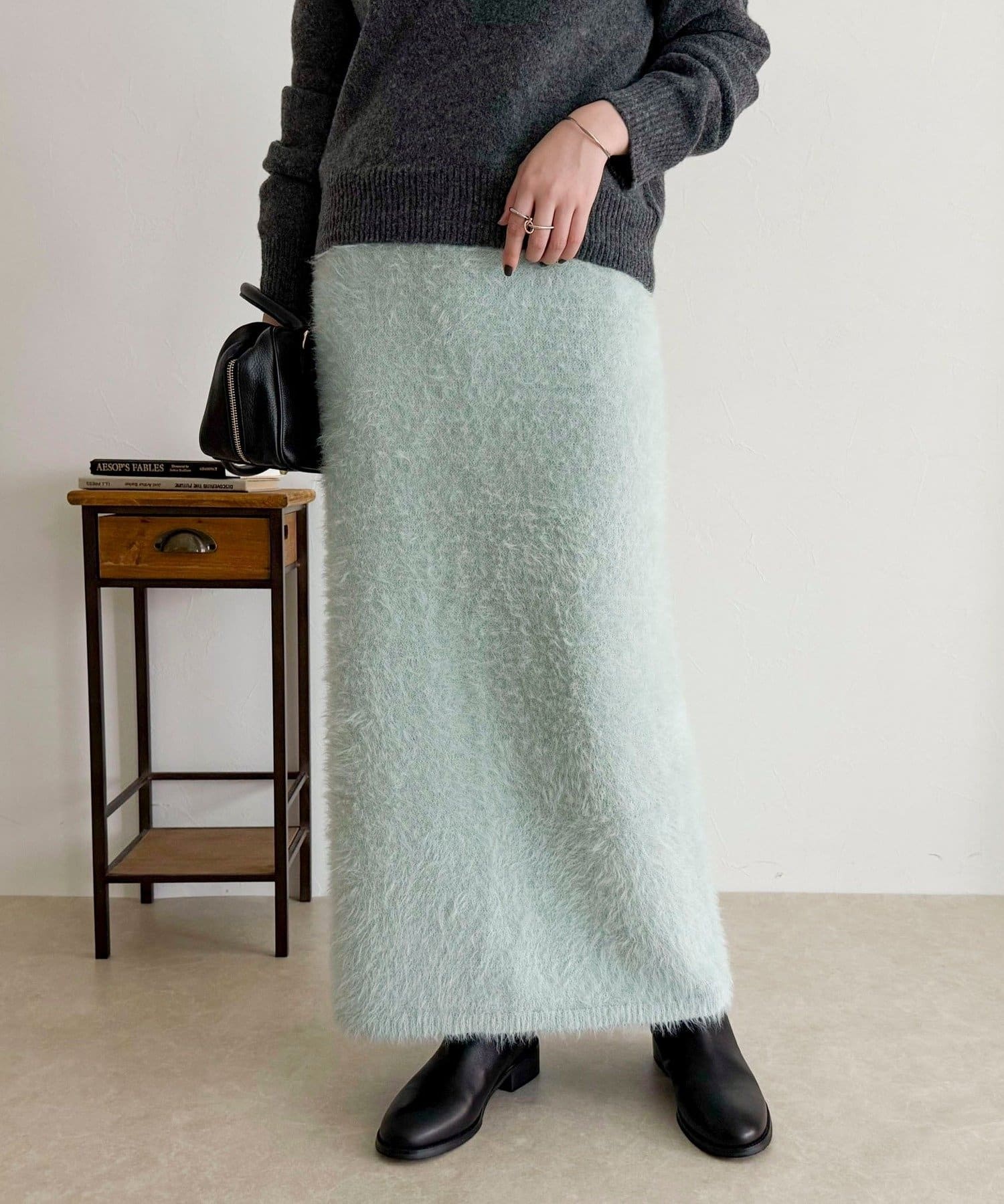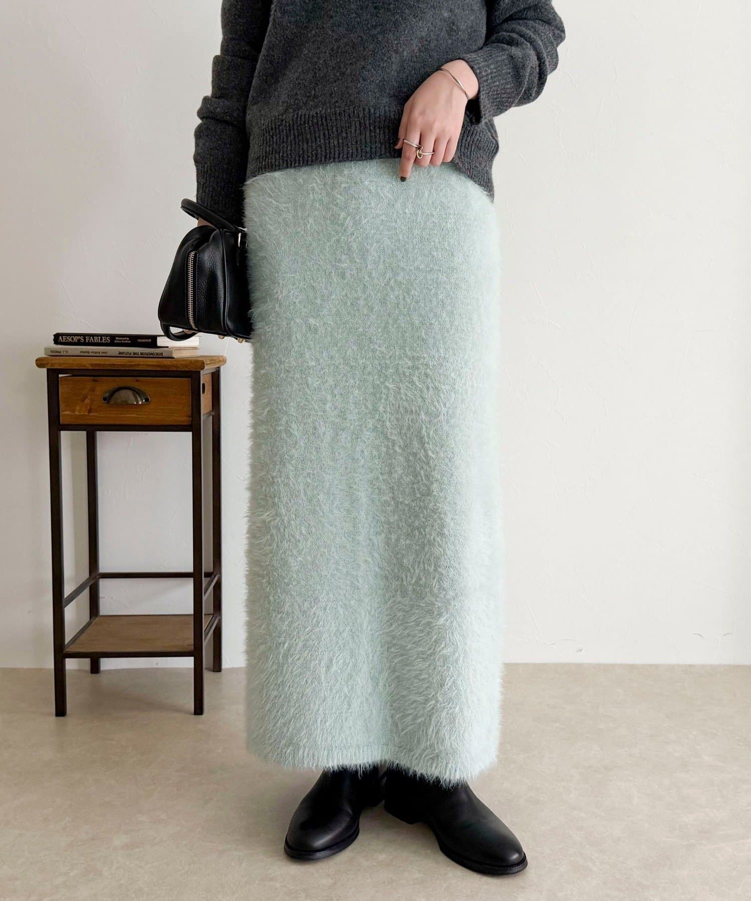 ・柔らかなシャギー素材を使用した、シーズンムード高まるニットスカート