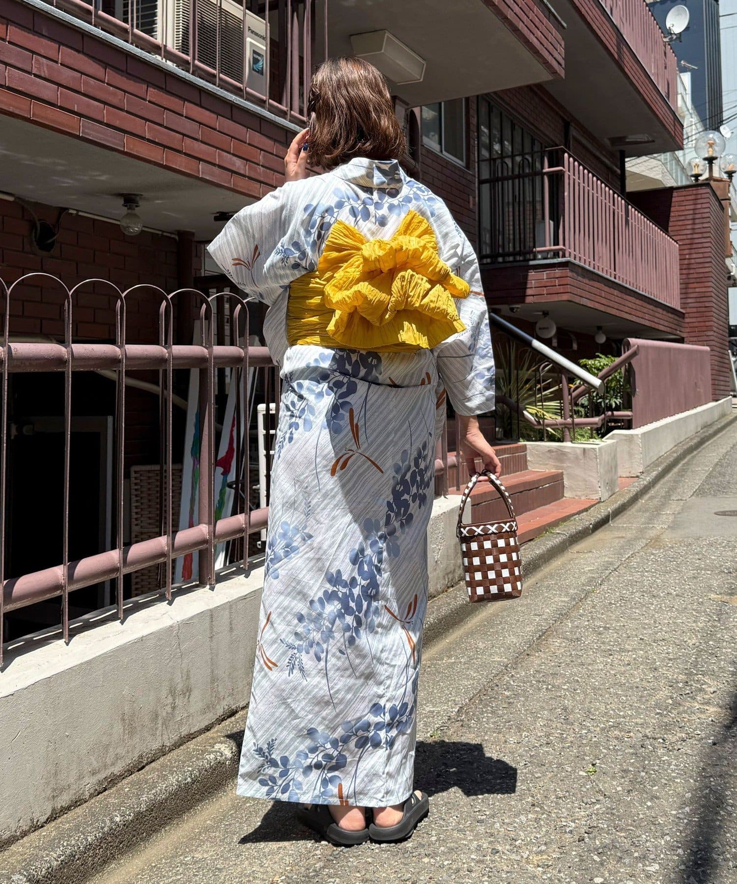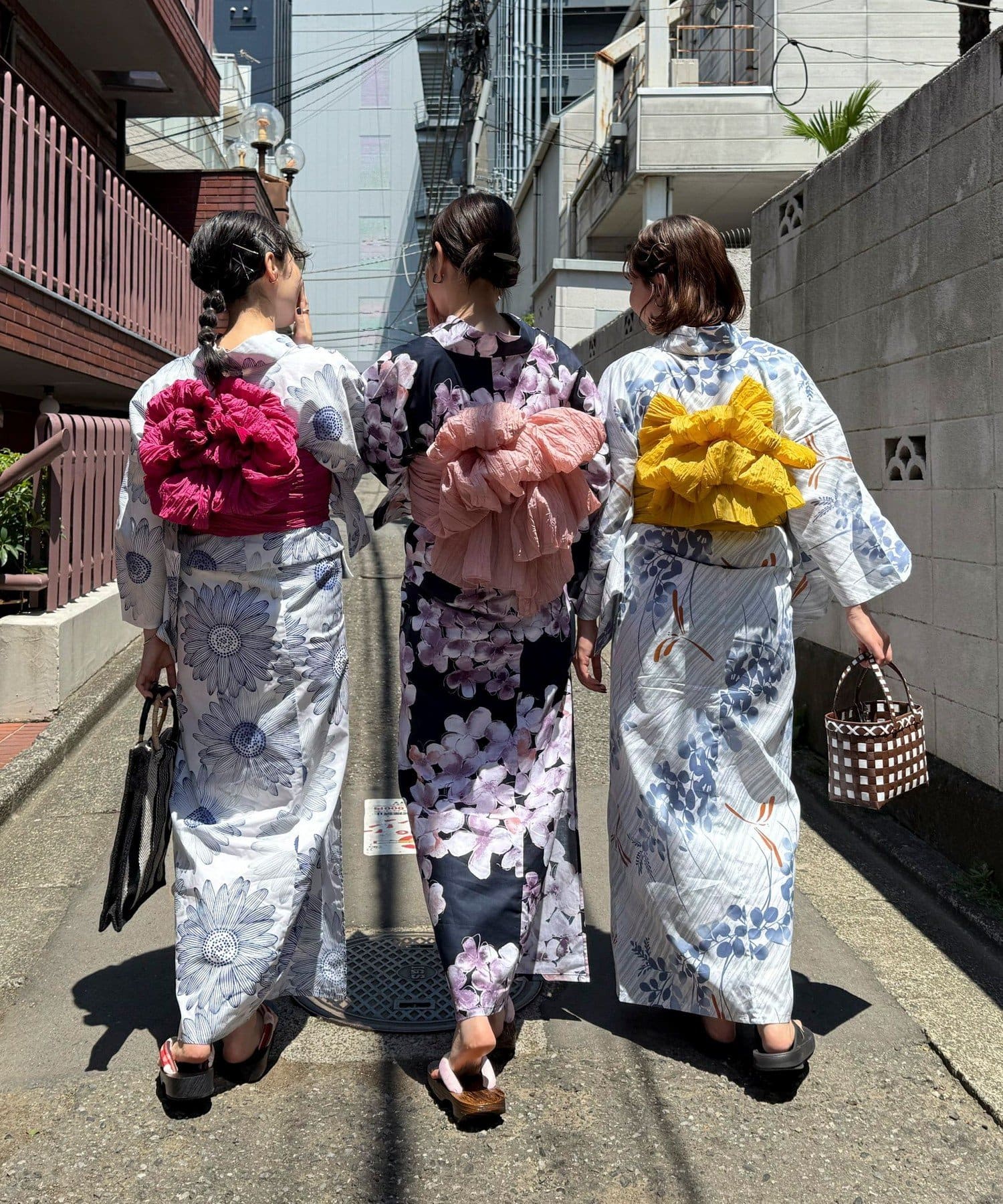 ・帯は柔らかく軽い素材で、締め付け感がなく長時間浴衣を着ていても苦しくなりにくいのも嬉しいポイント◎