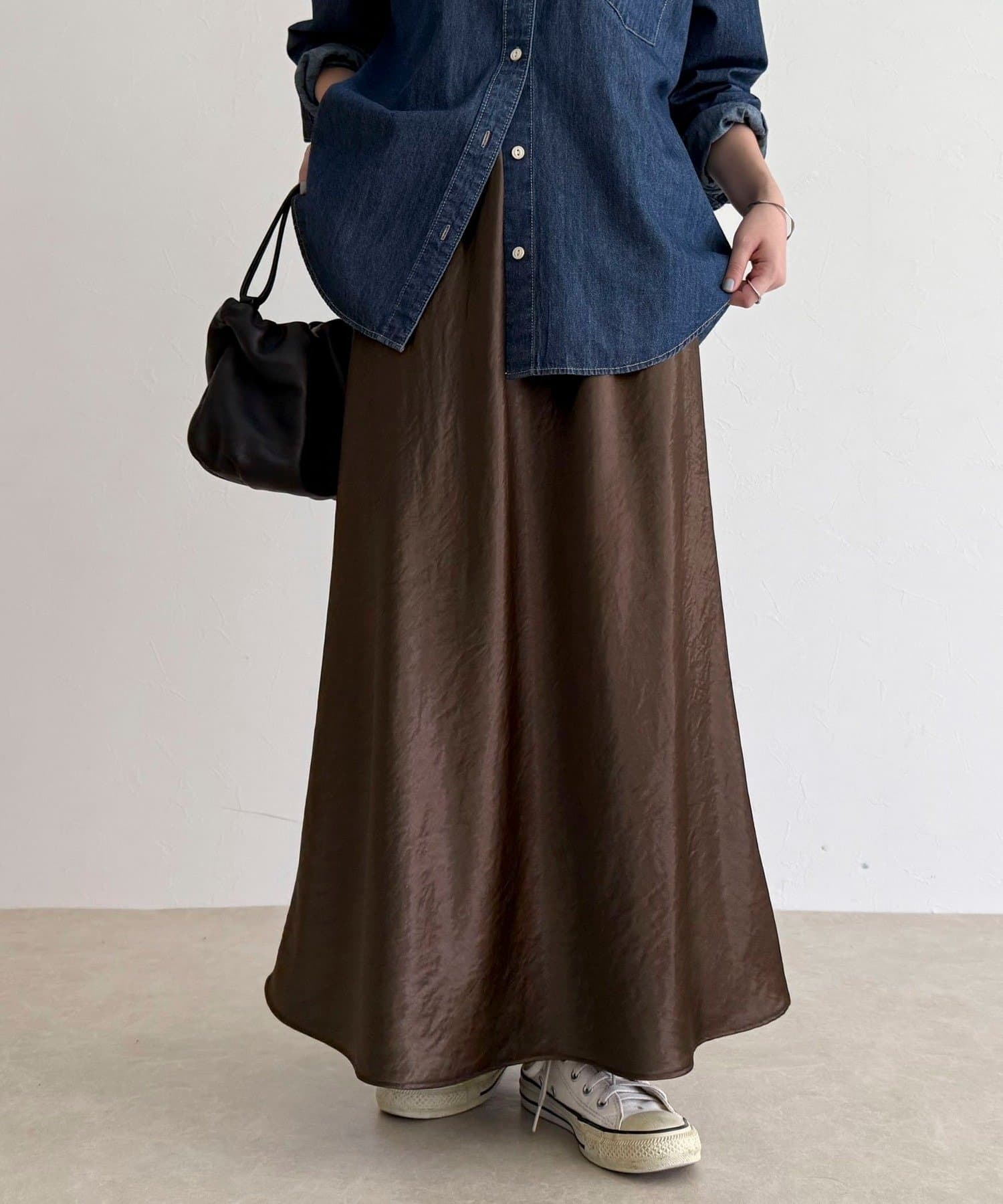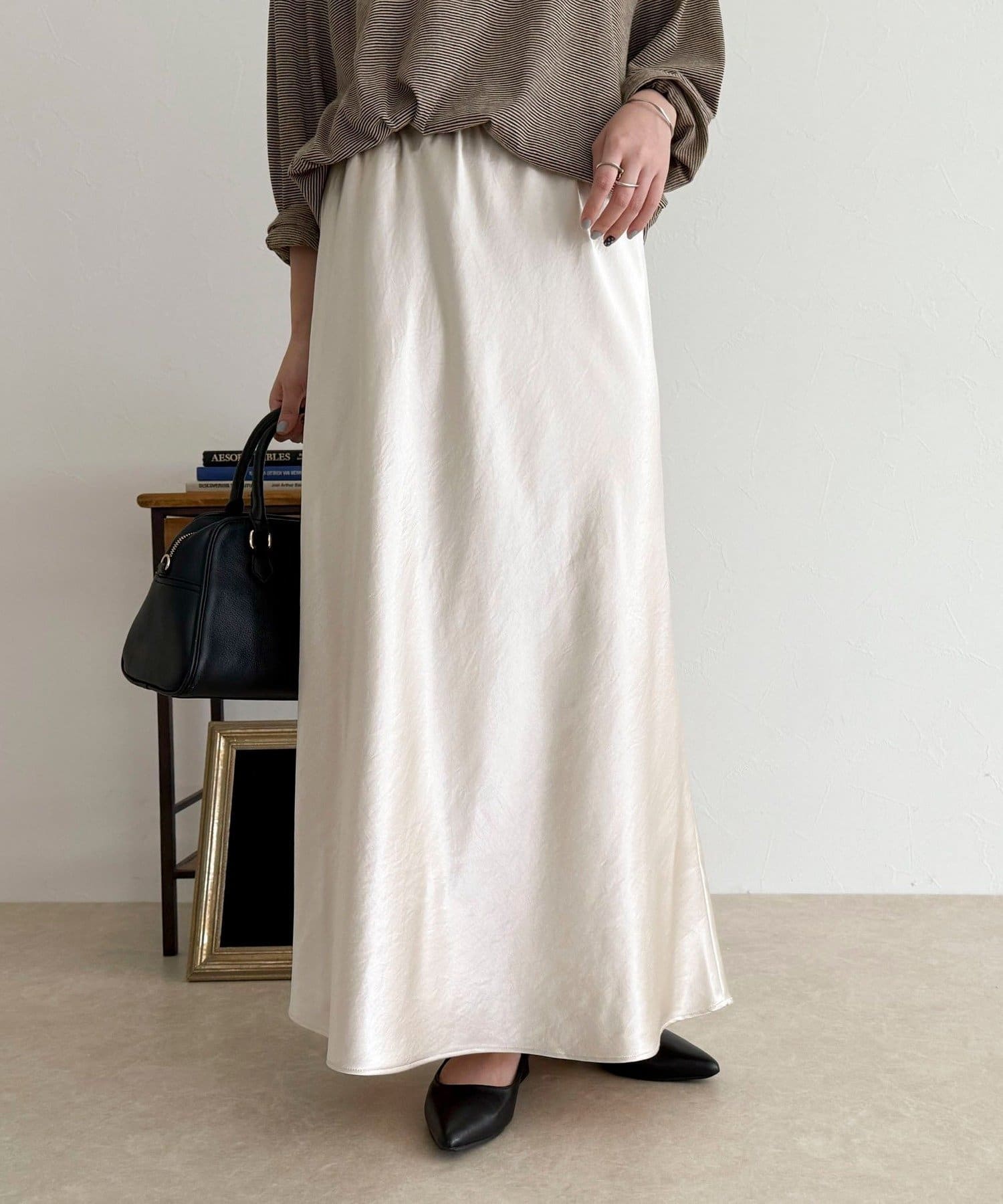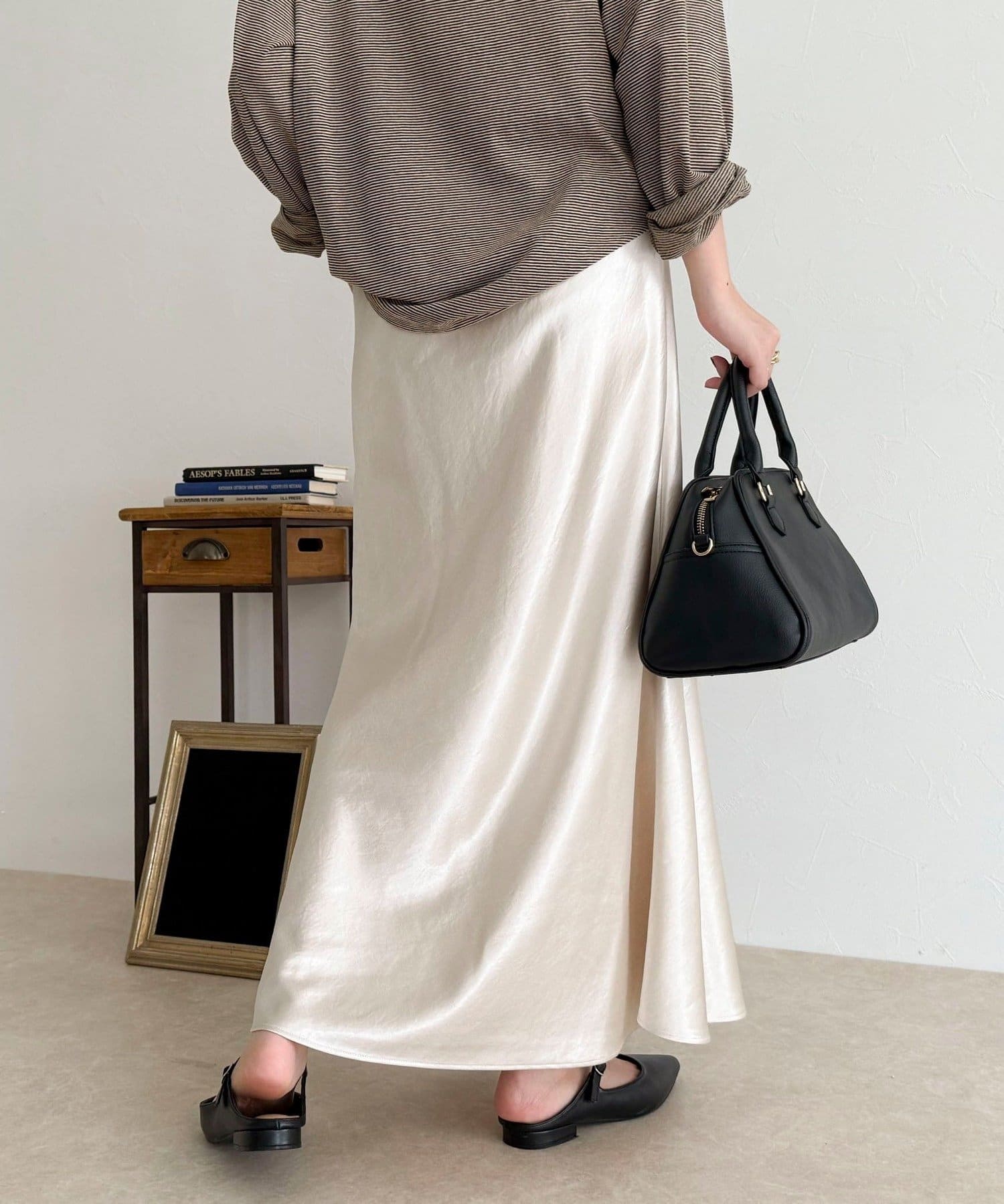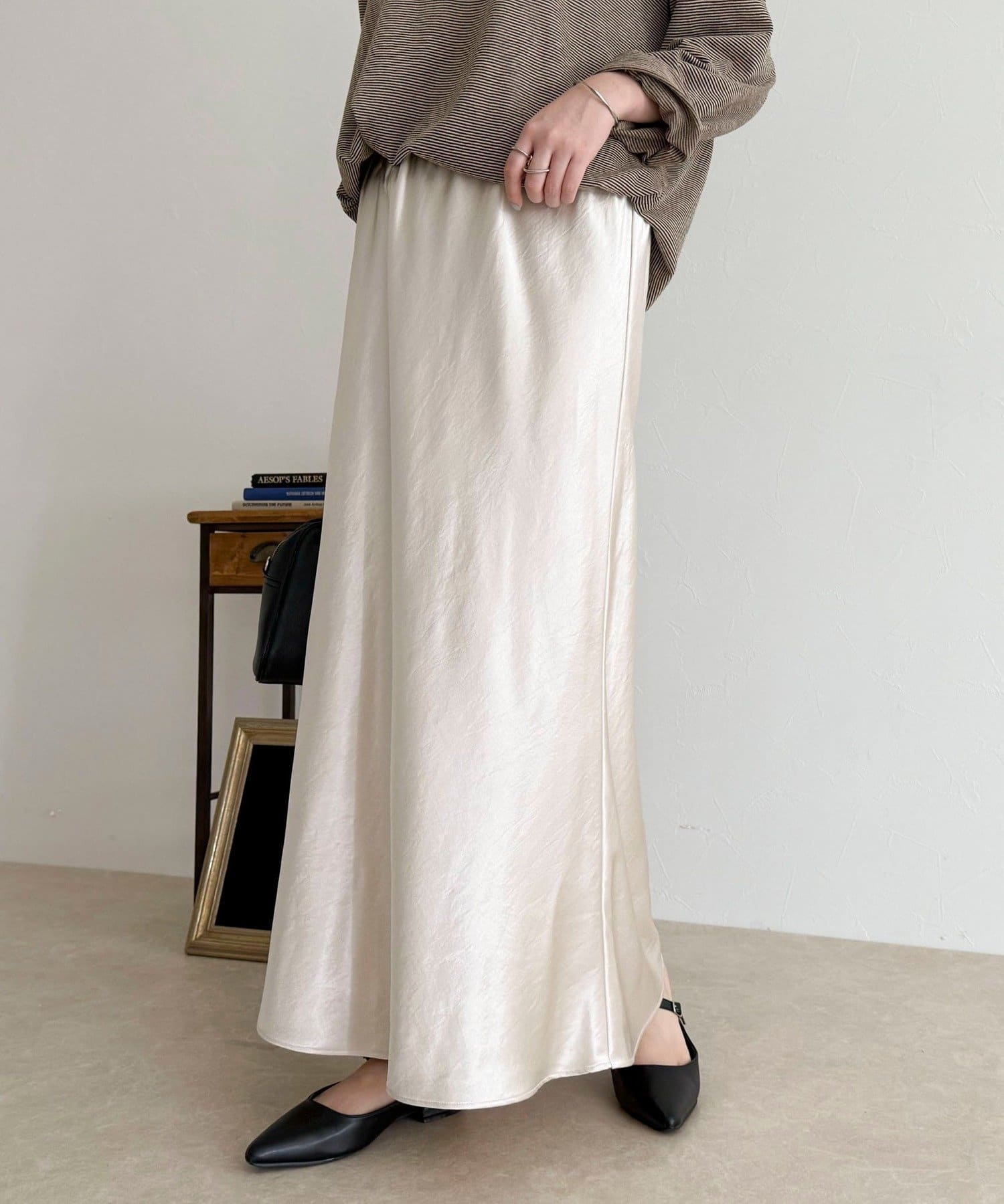 大人のキレイ目スタイルにぴったりなシルキーサテンスカート