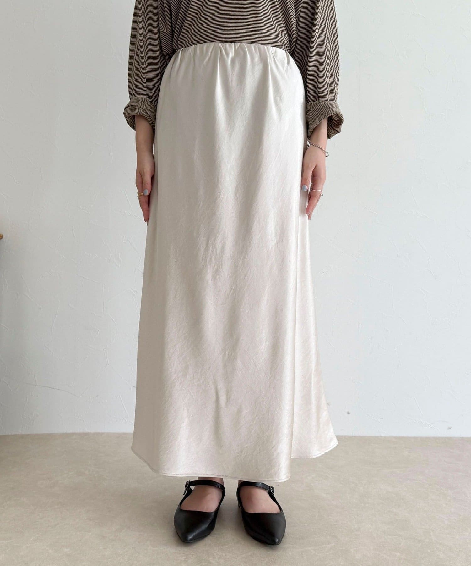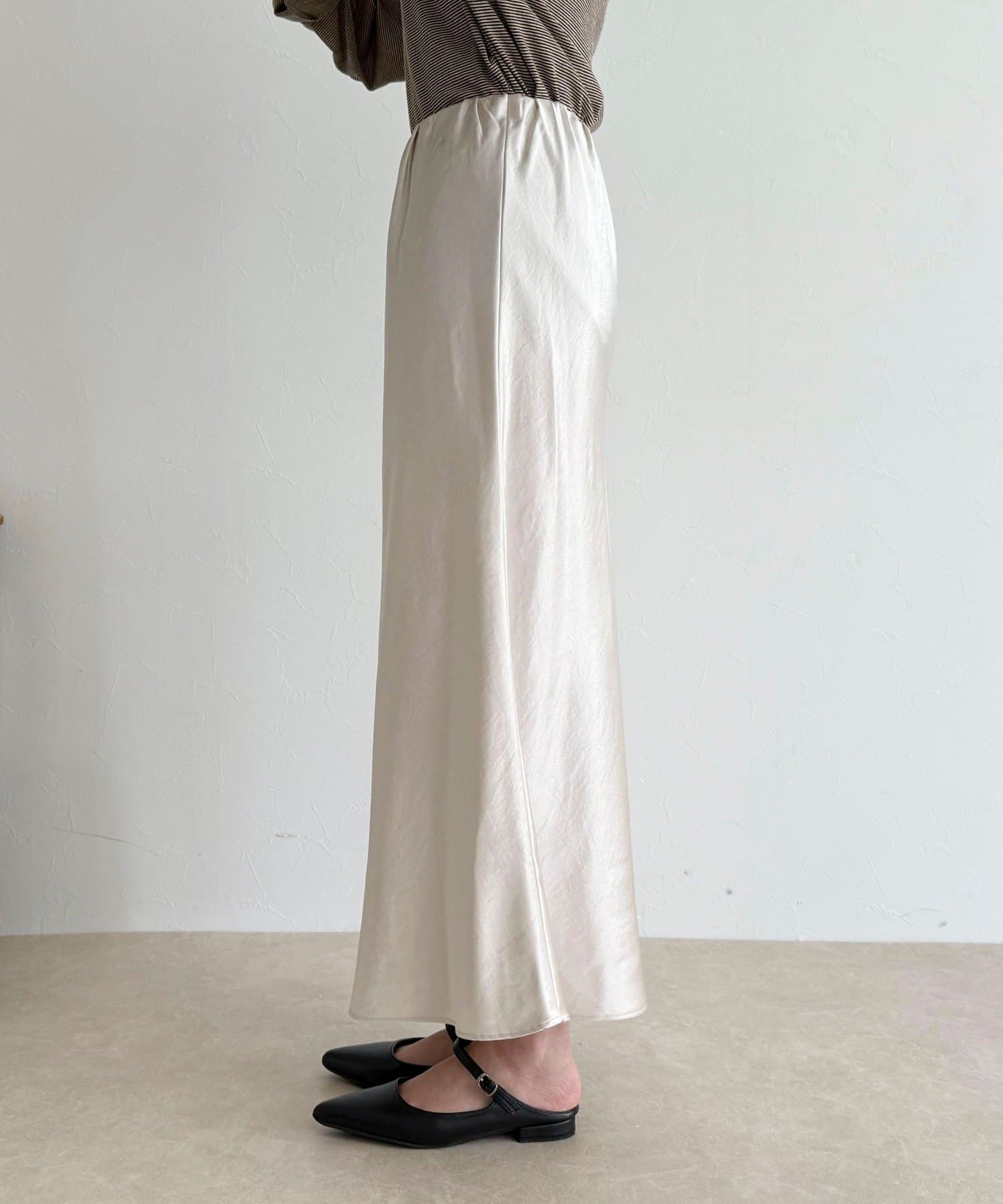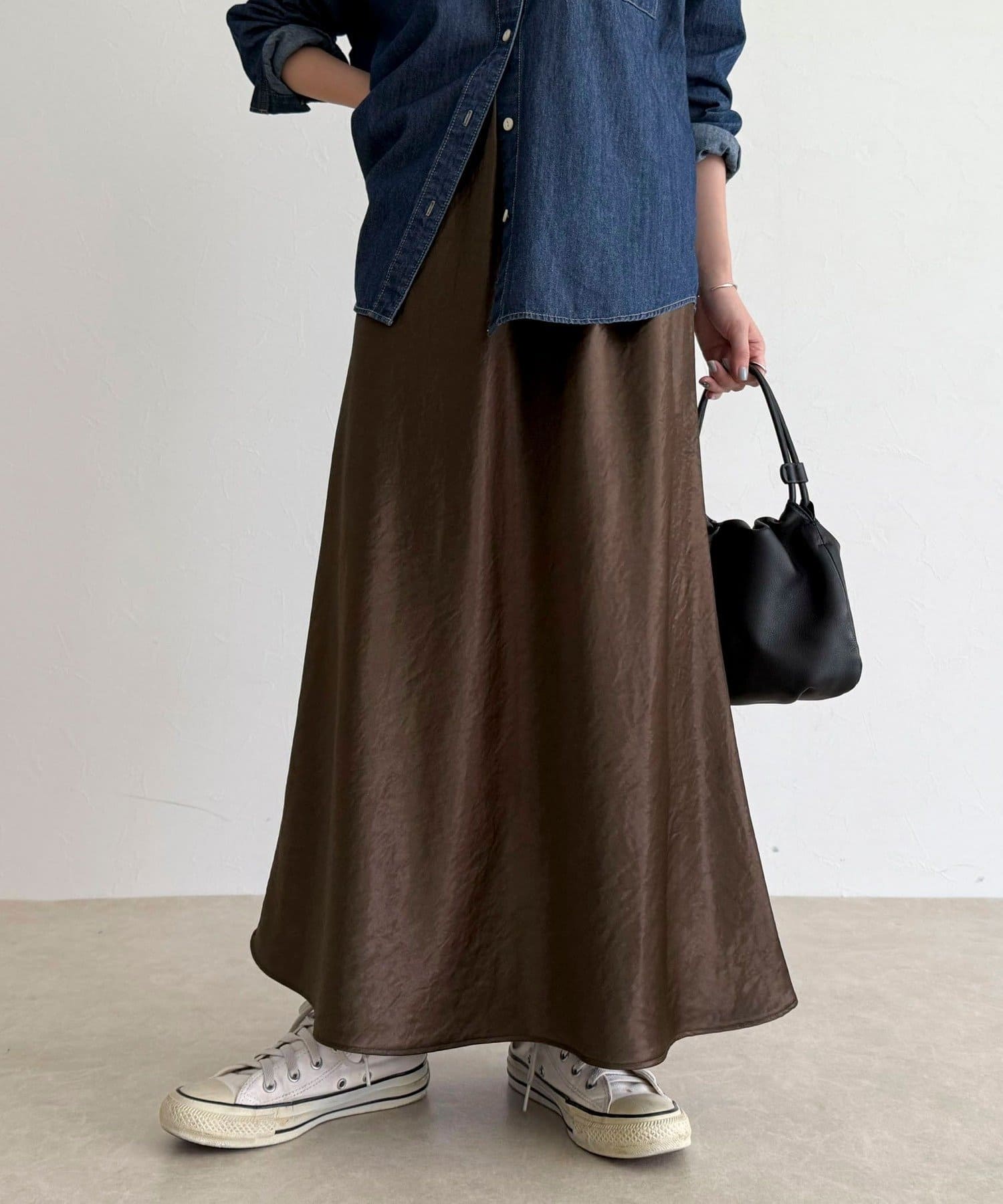 大人のキレイ目スタイルにぴったりなシルキーサテンスカート