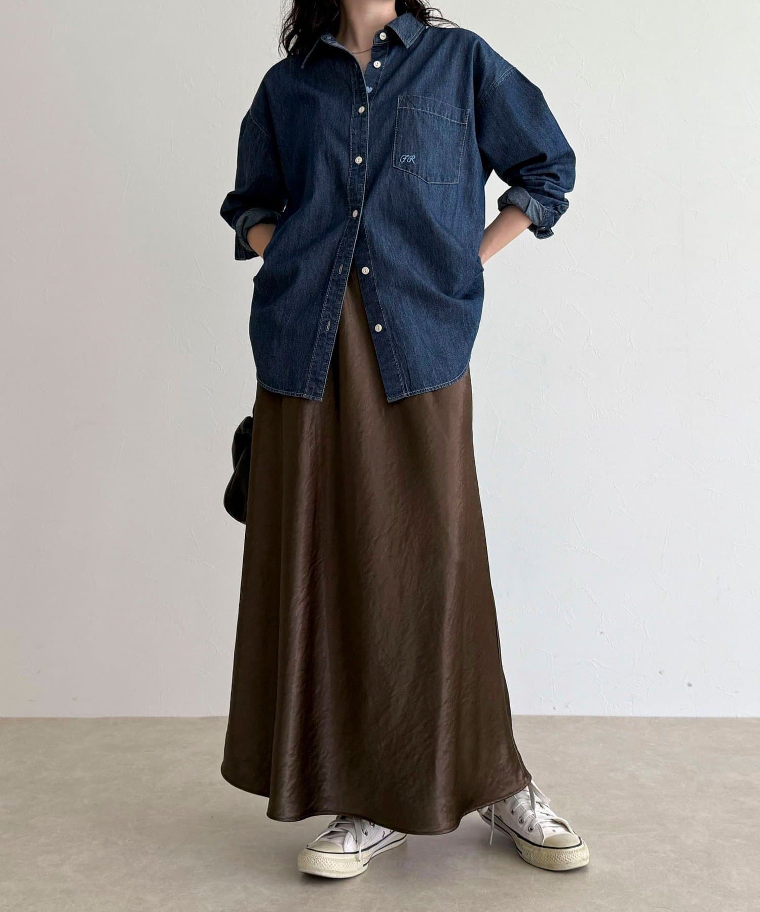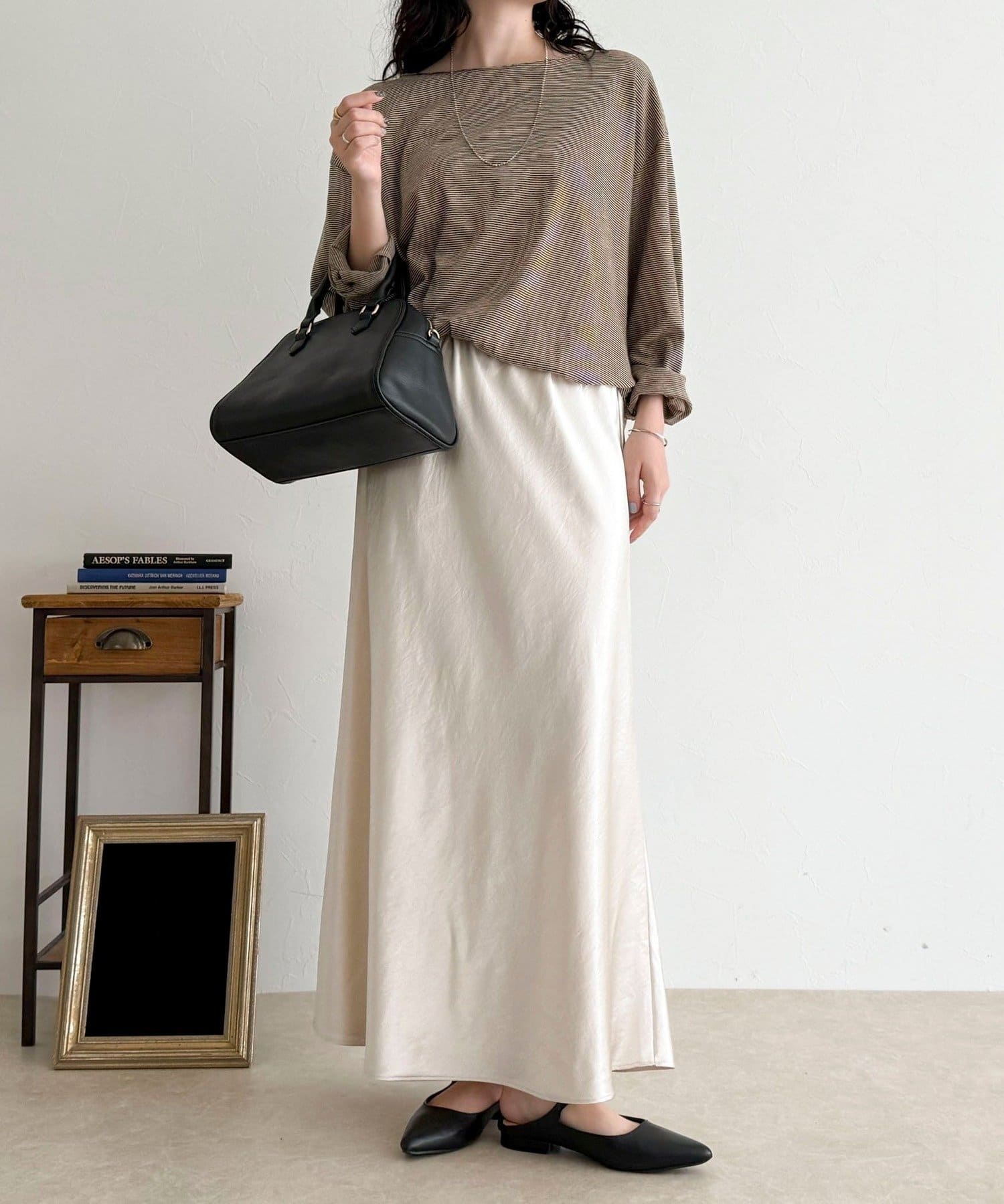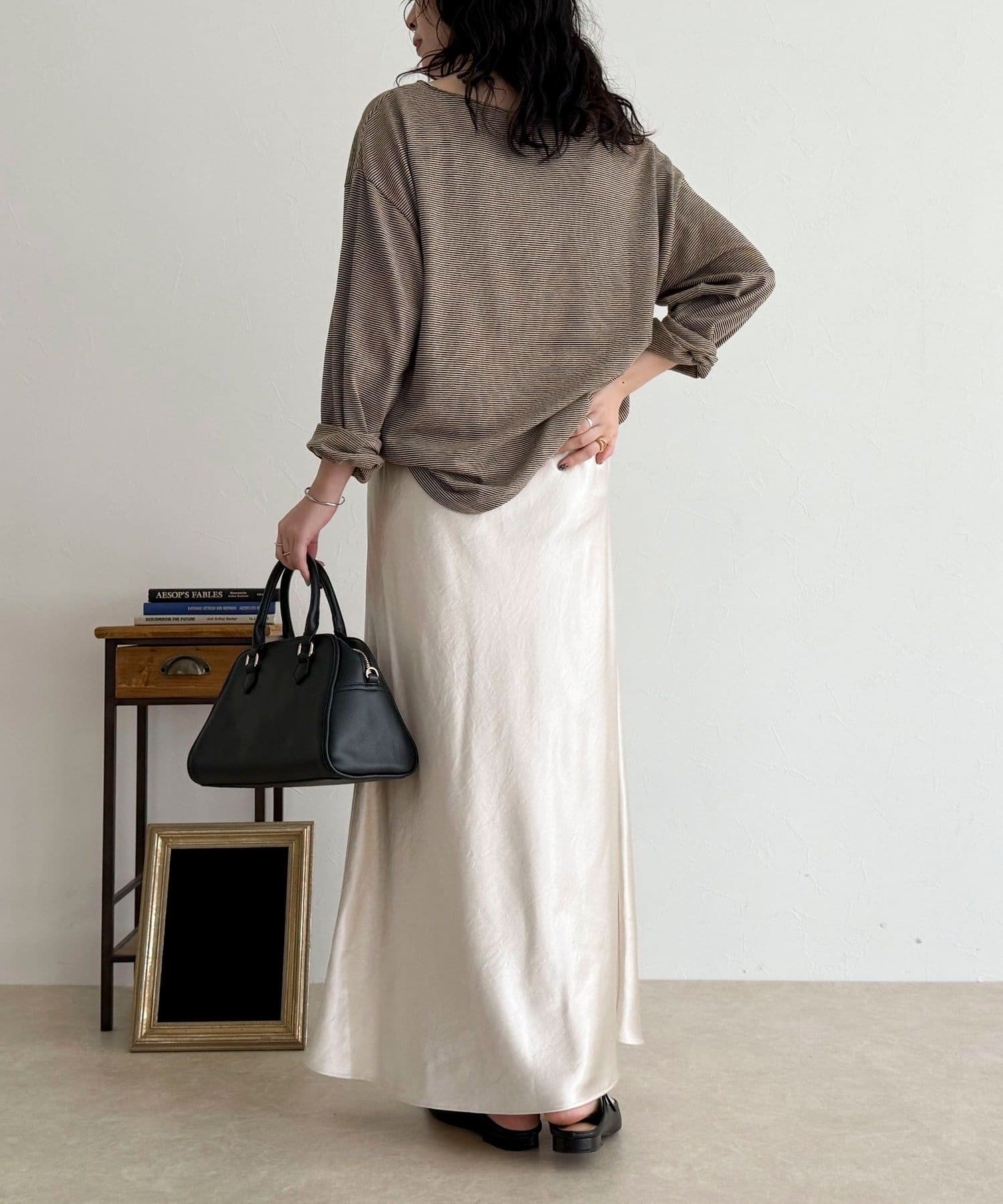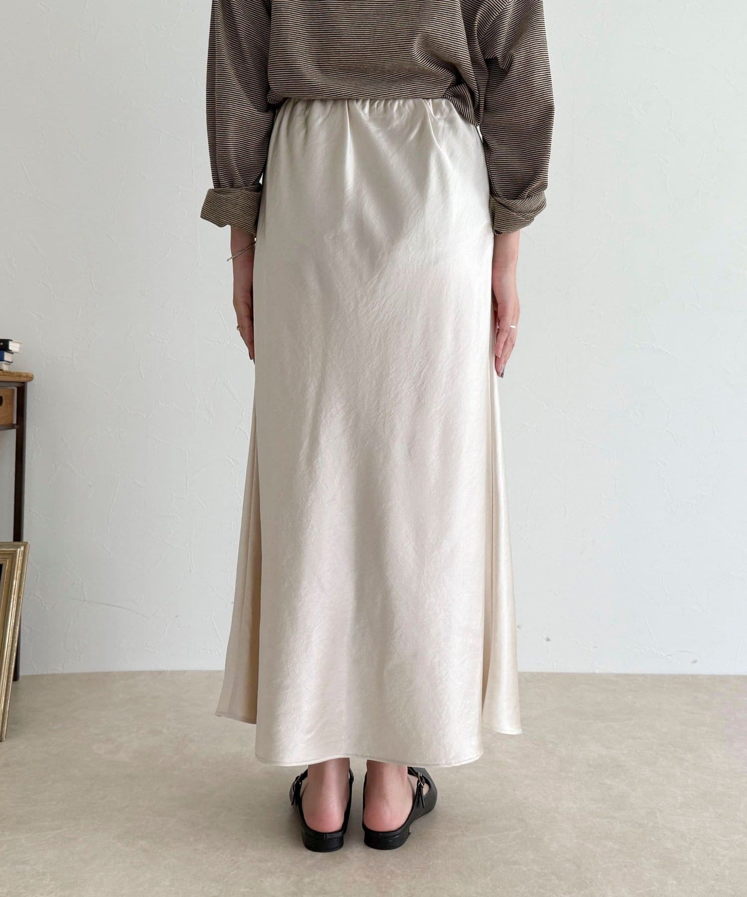 大人のキレイ目スタイルにぴったりなシルキーサテンスカート