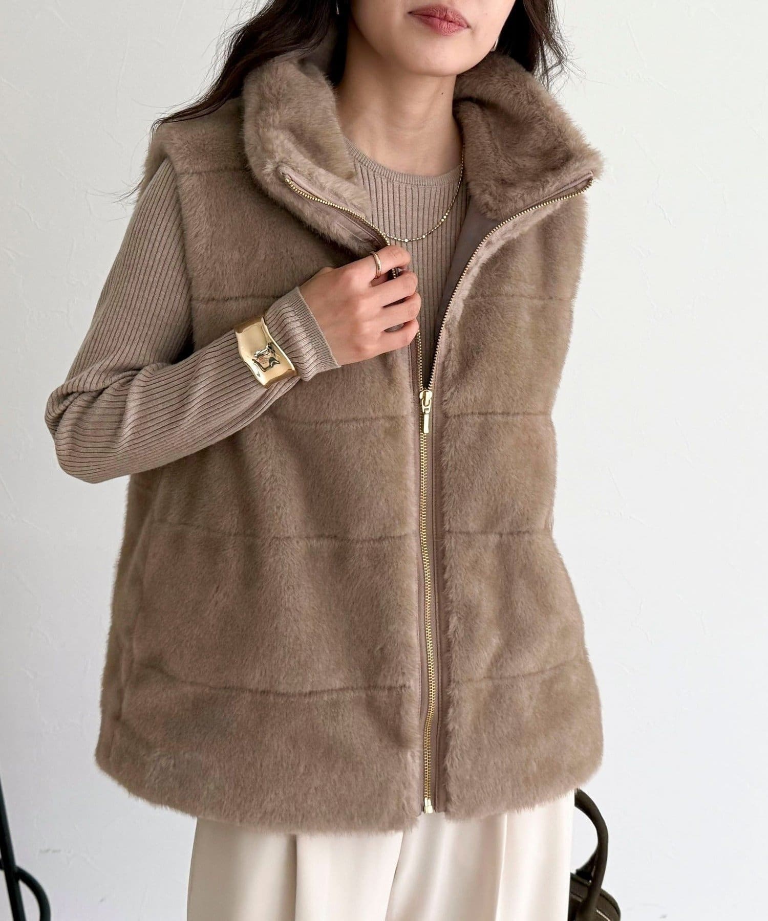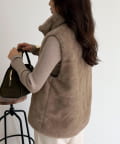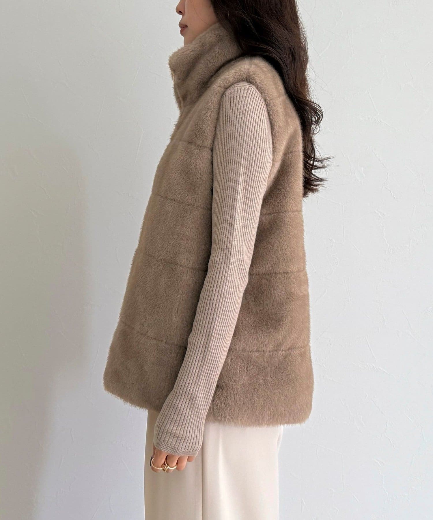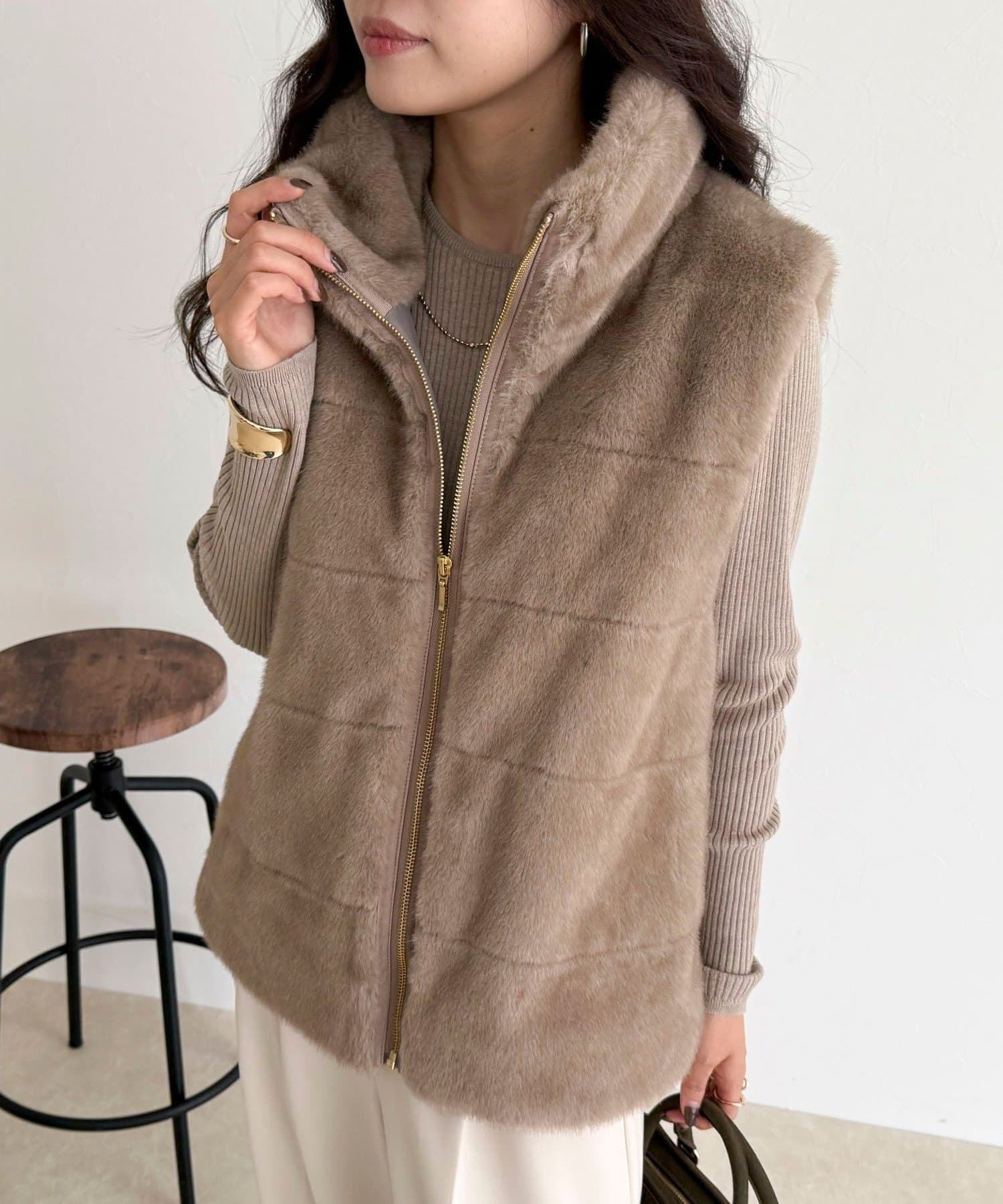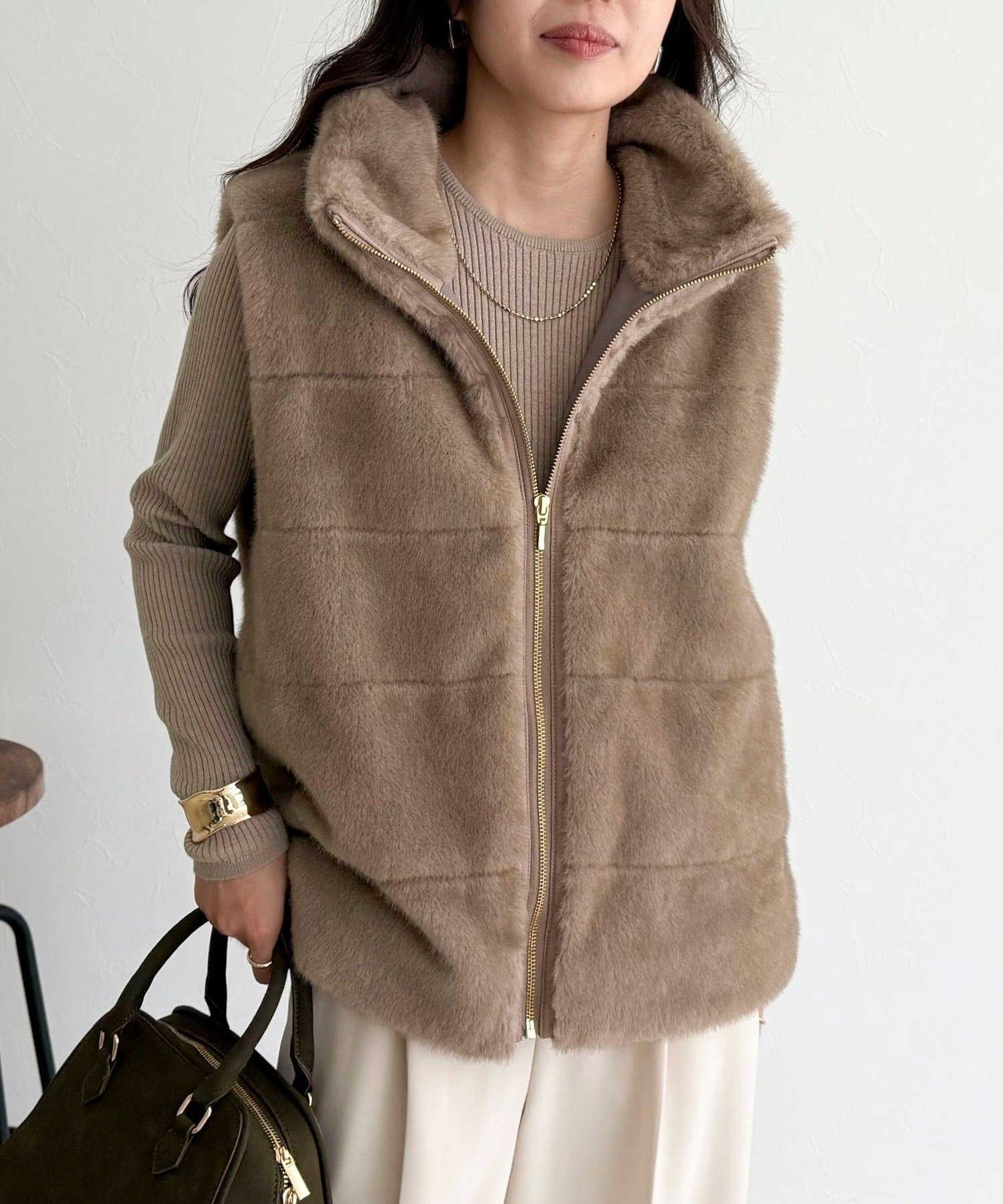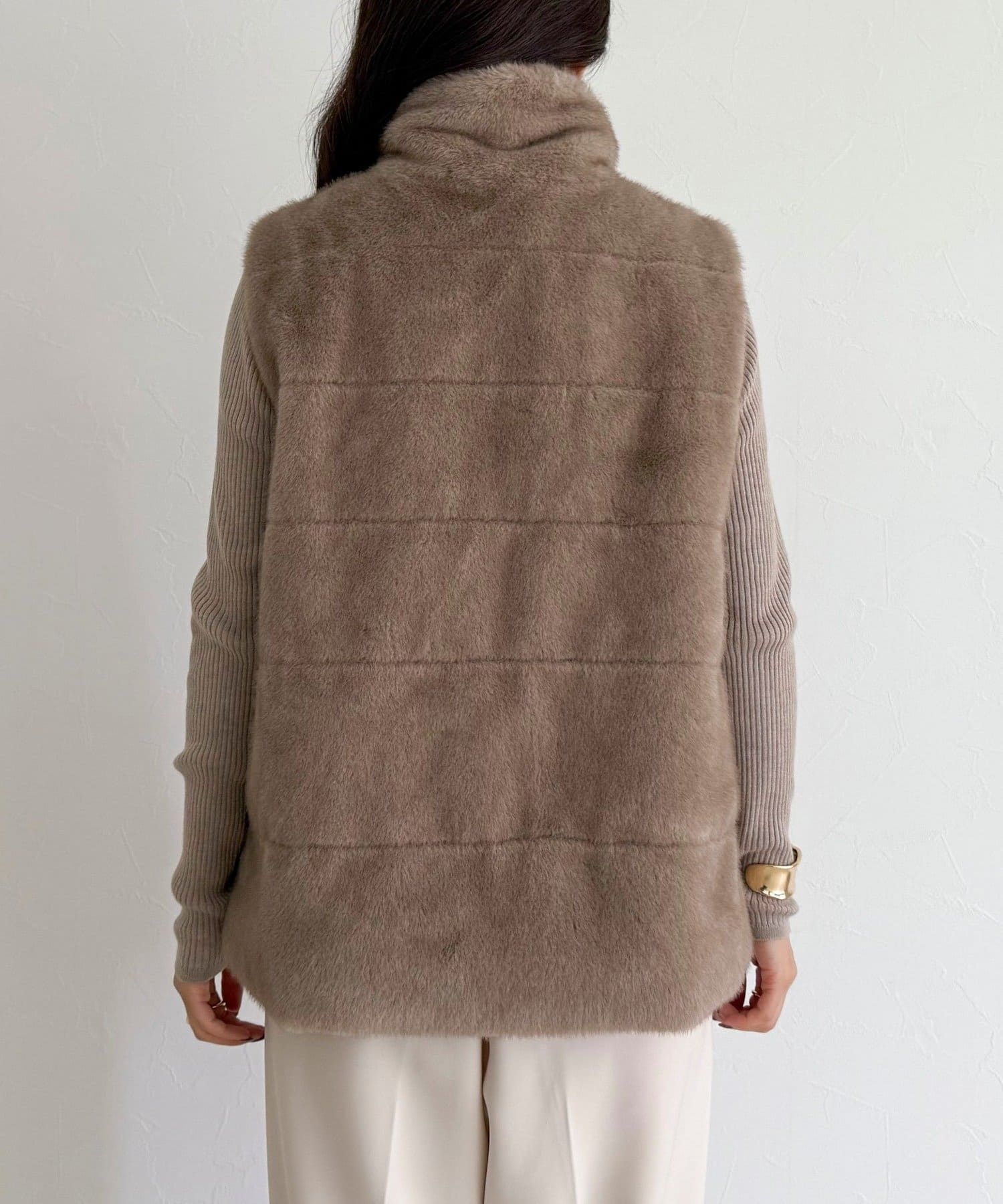・ふわふわのファーが魅力的なボーダーキルトファーベスト