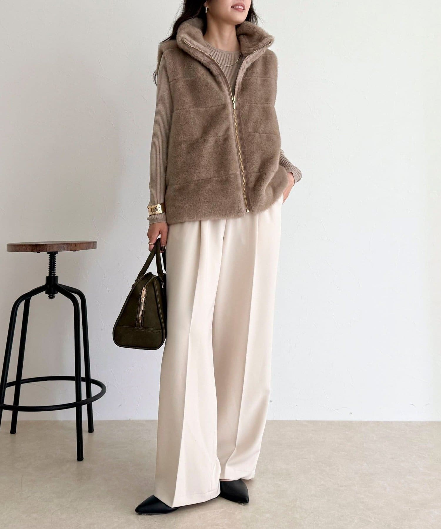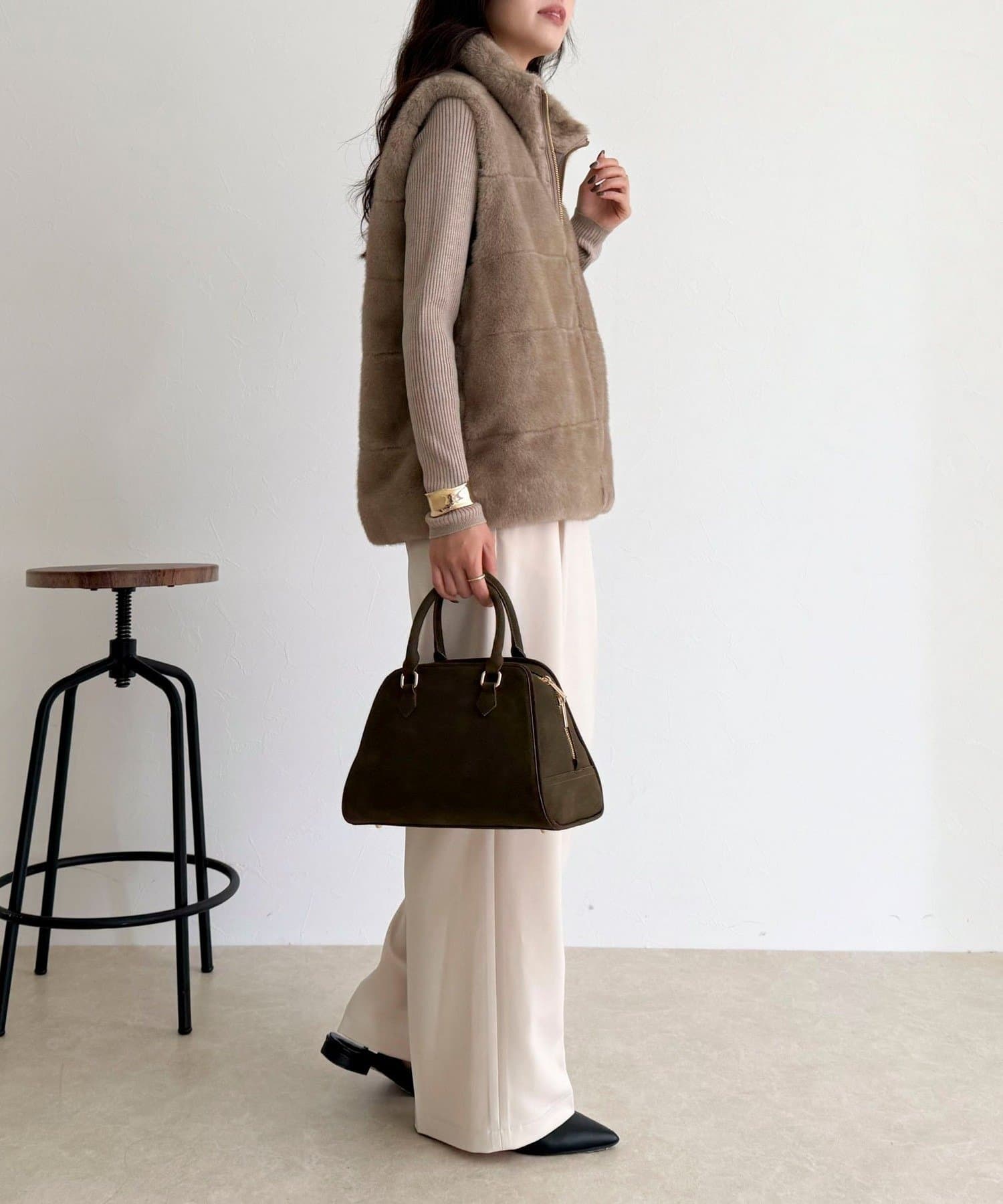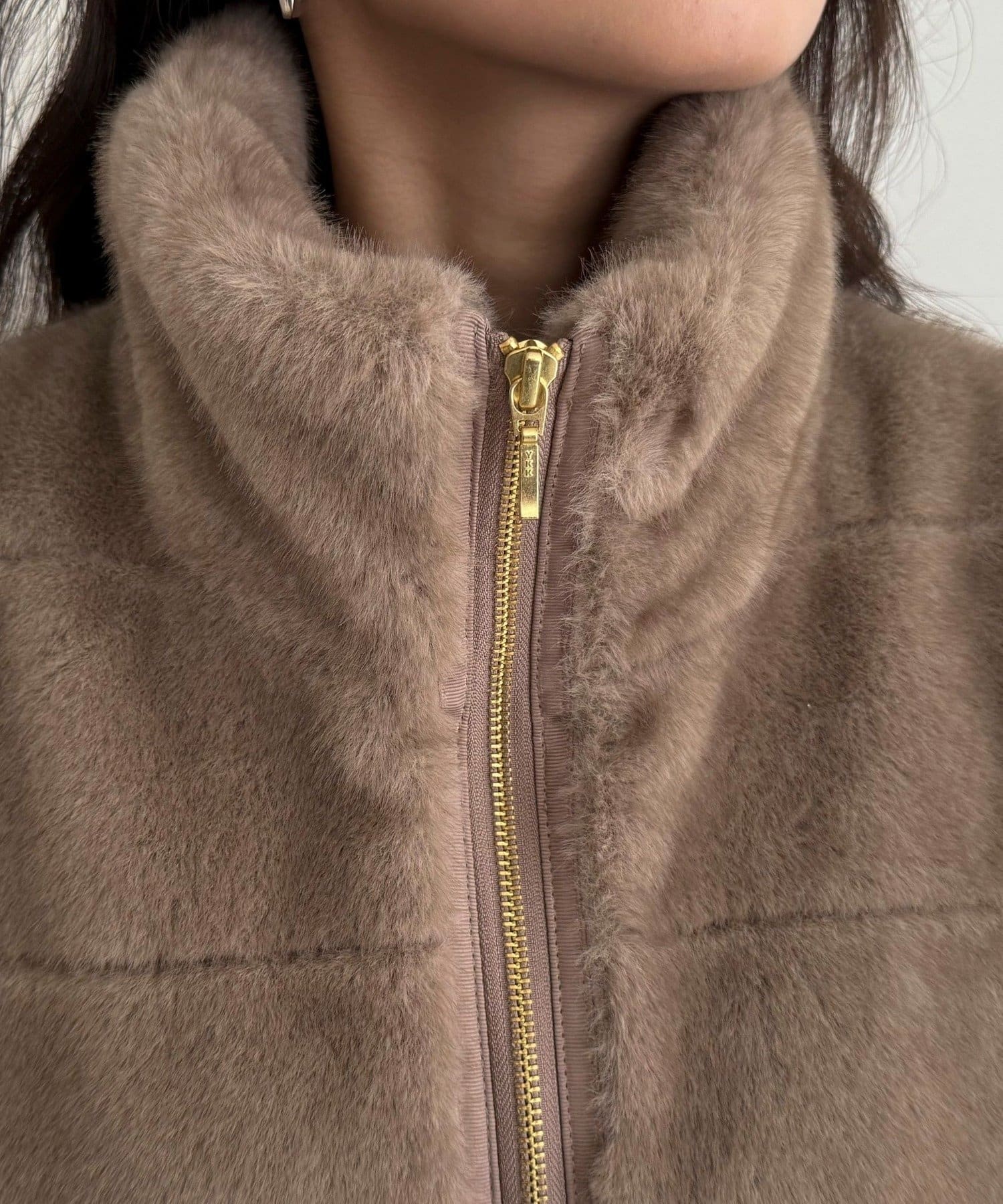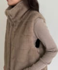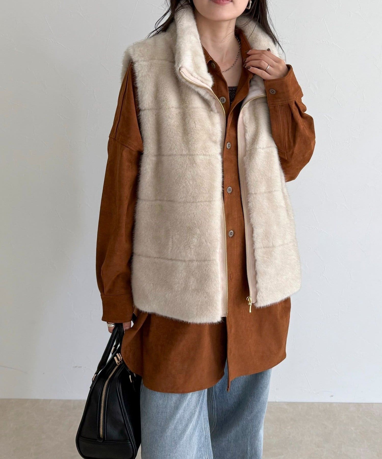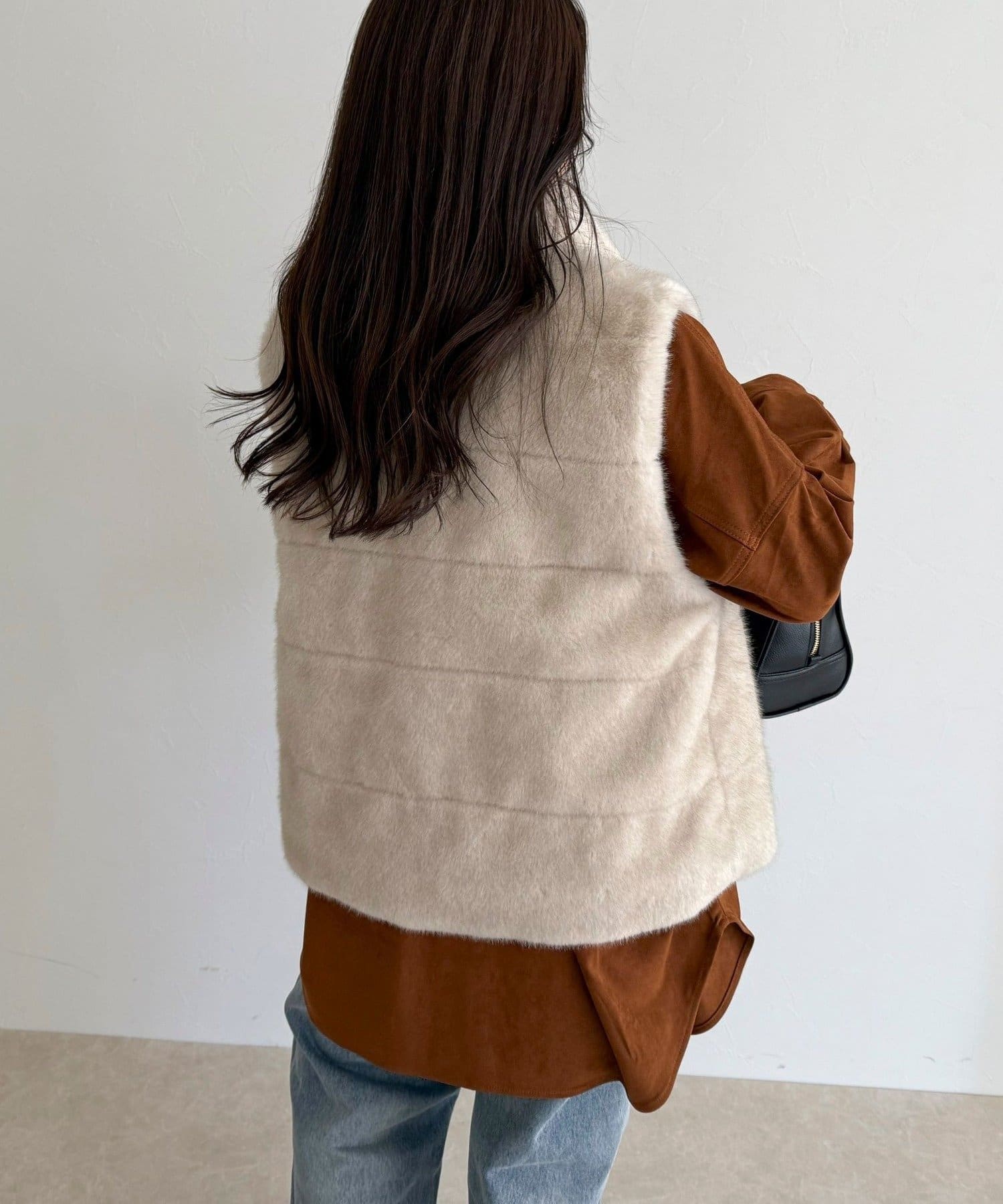 ・ふわふわのファーが魅力的なボーダーキルトファーベスト