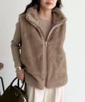 ふわふわファーで華やぐボーダーキルトベスト
