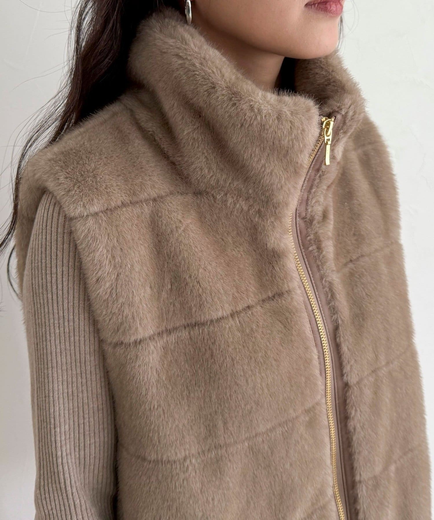 ・襟付きデザインで、ボリュームのあるファーでもすっきりと見えるシルエット