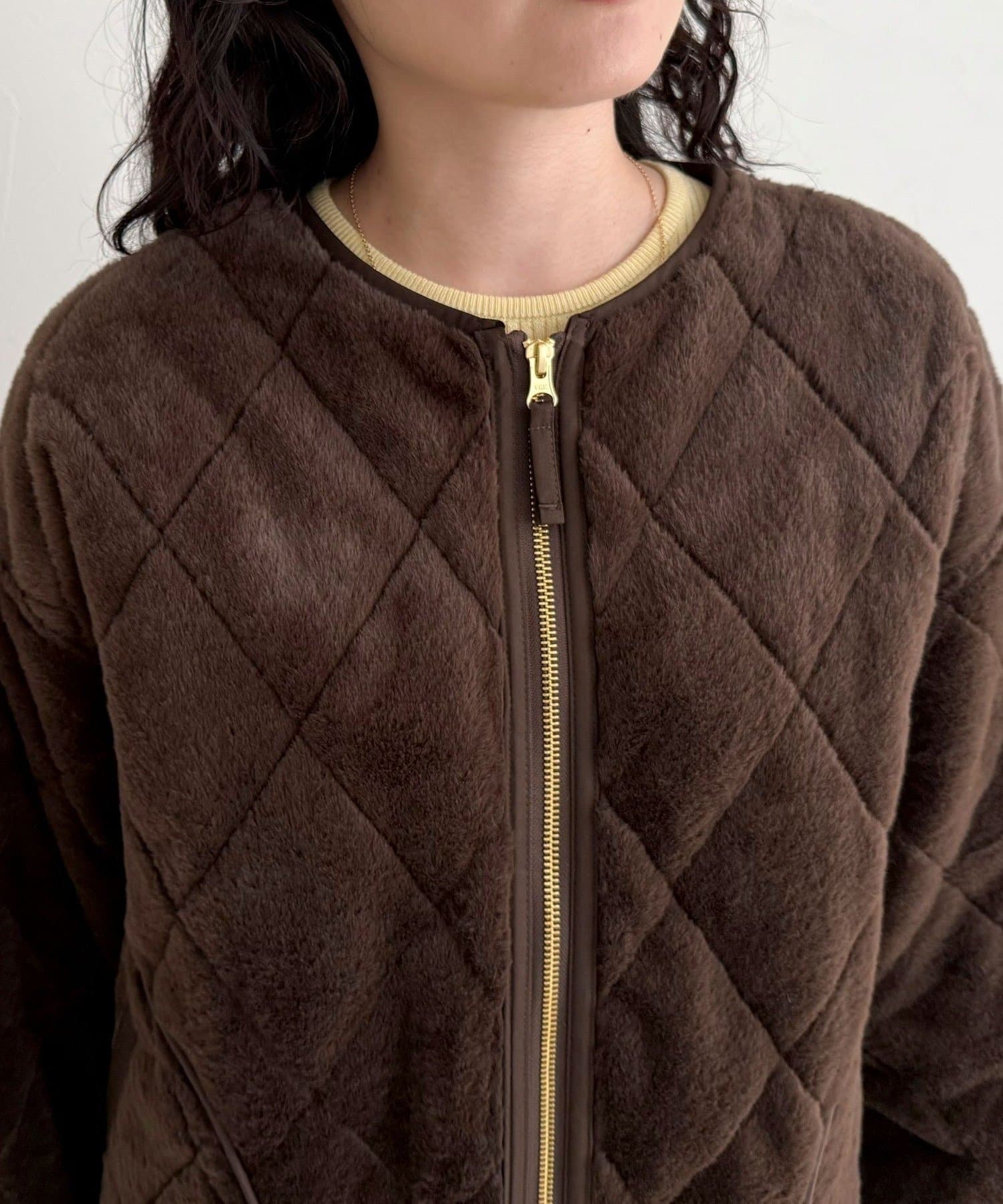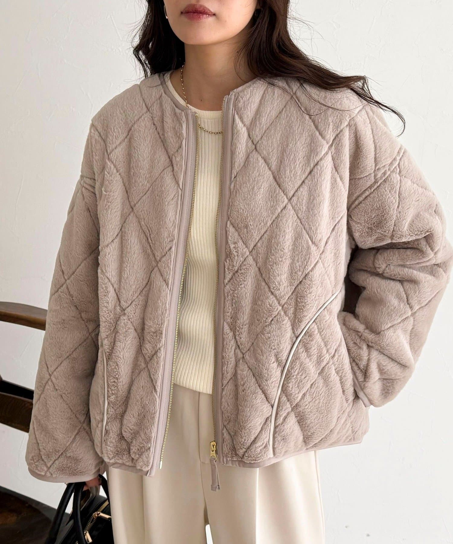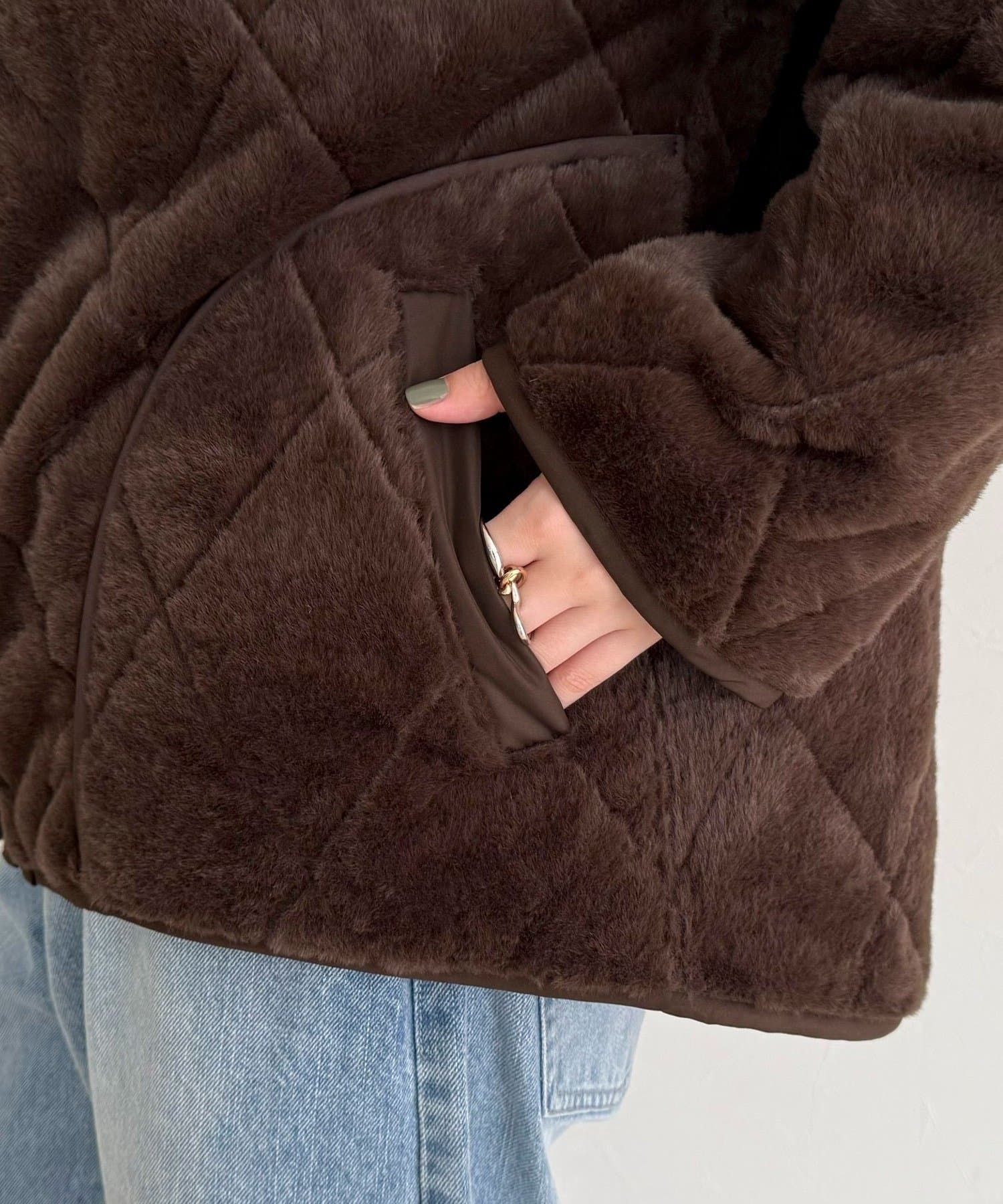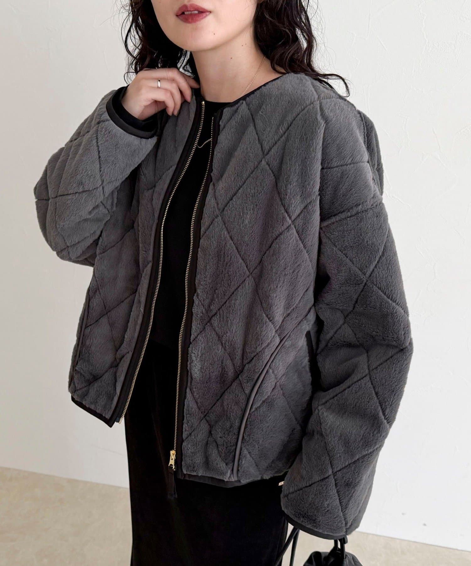 ・ふんわり柔らかなファーを贅沢に使用したキルトジップコート
