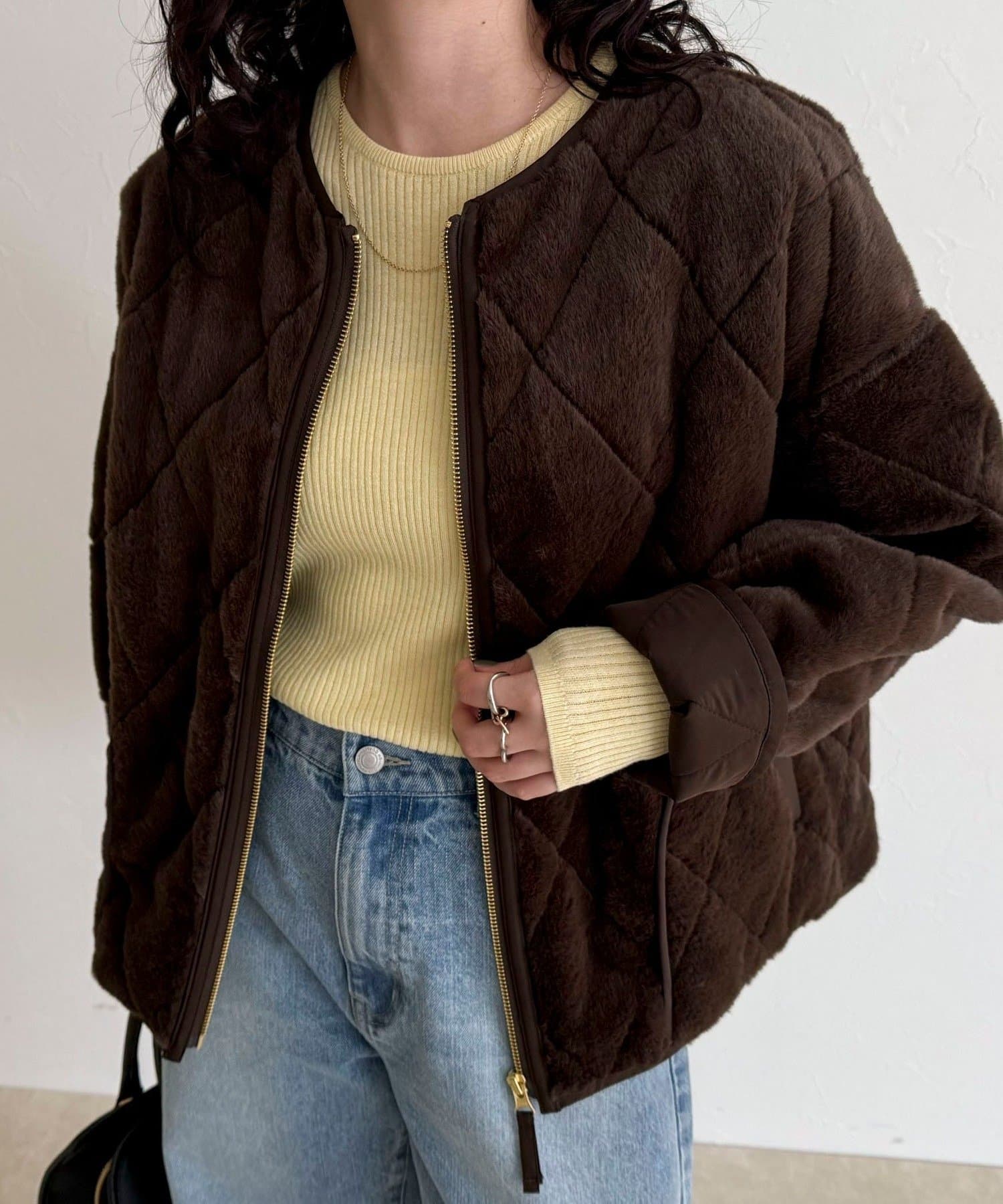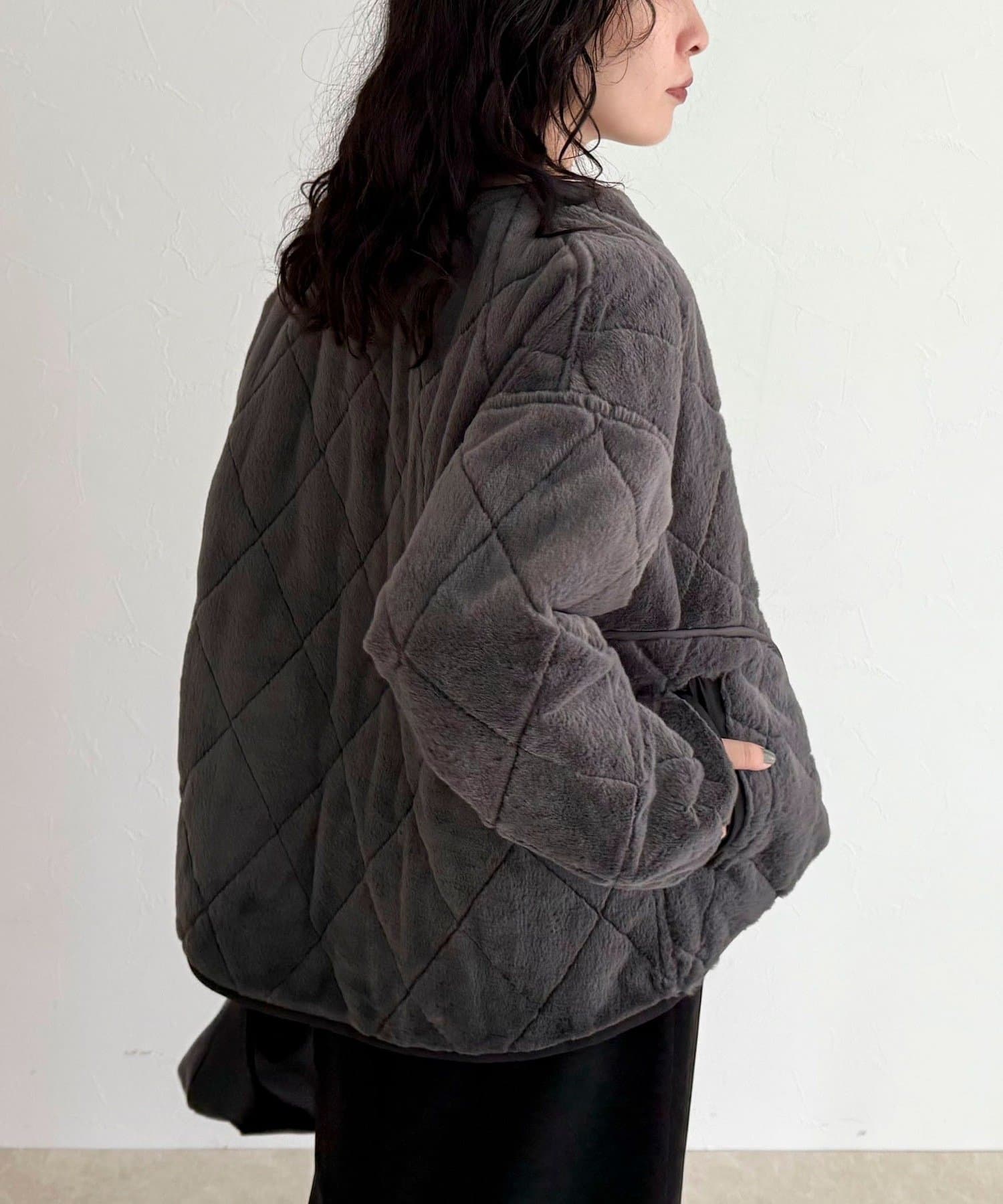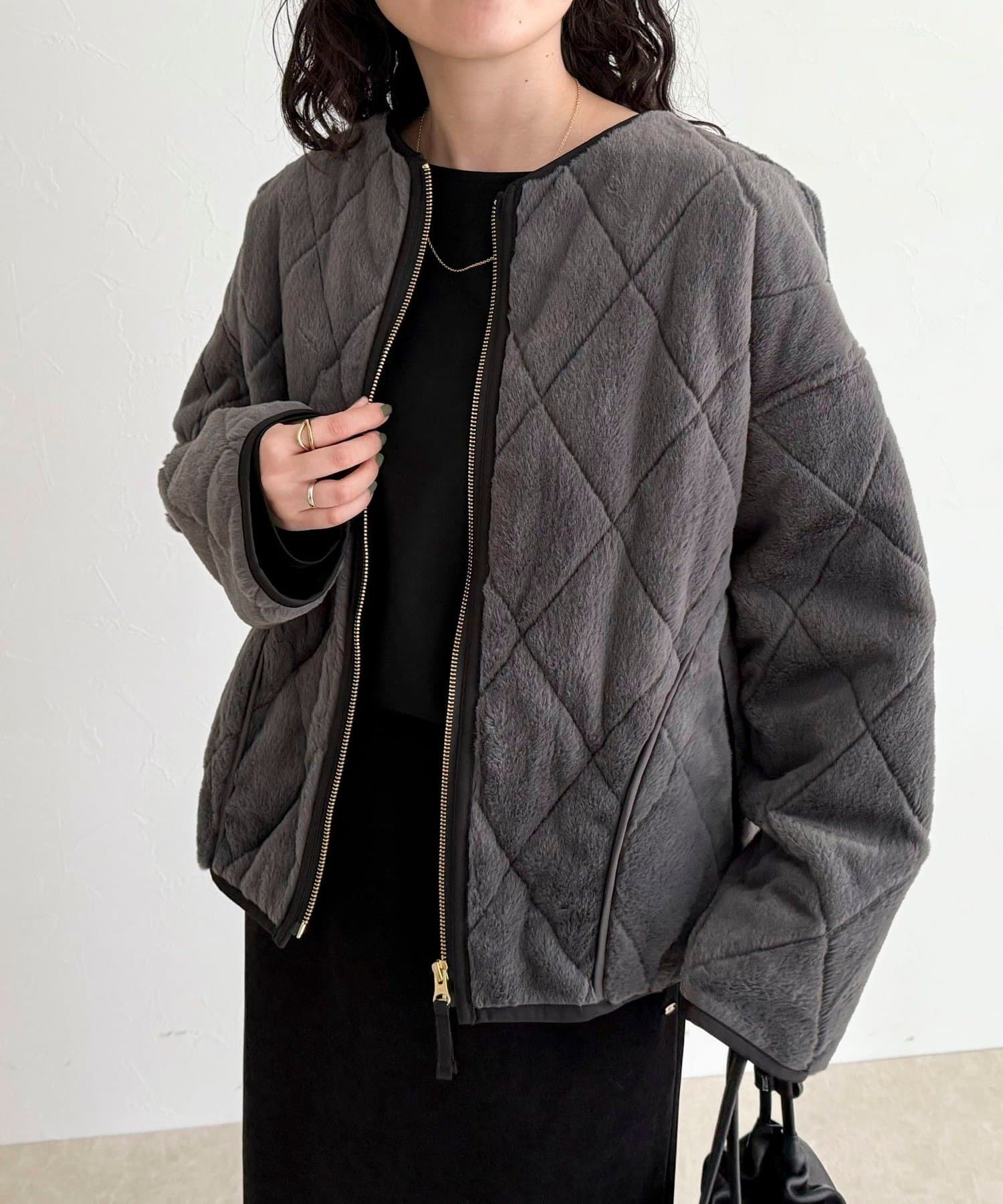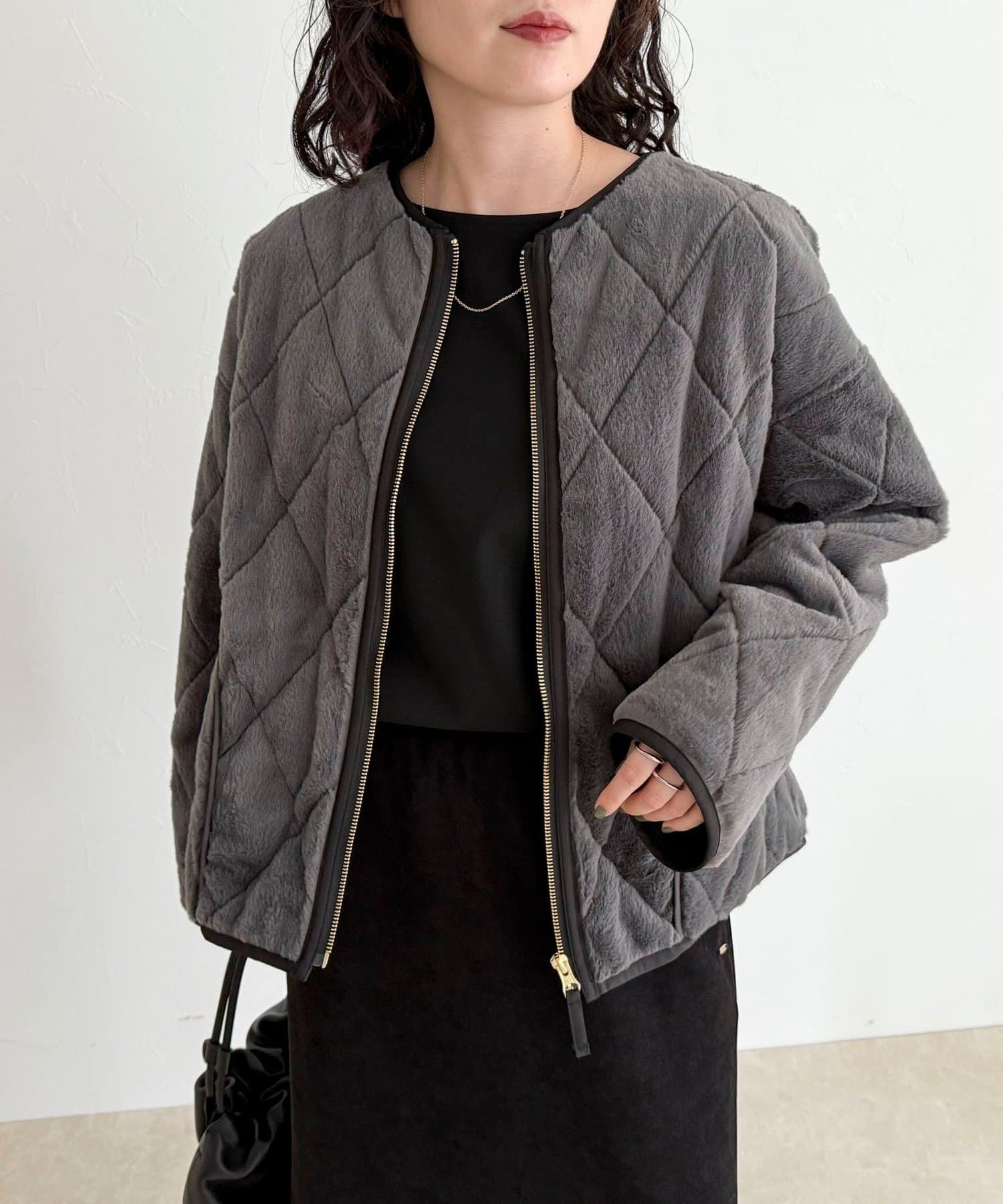 ・ふんわり柔らかなファーを贅沢に使用したキルトジップコート