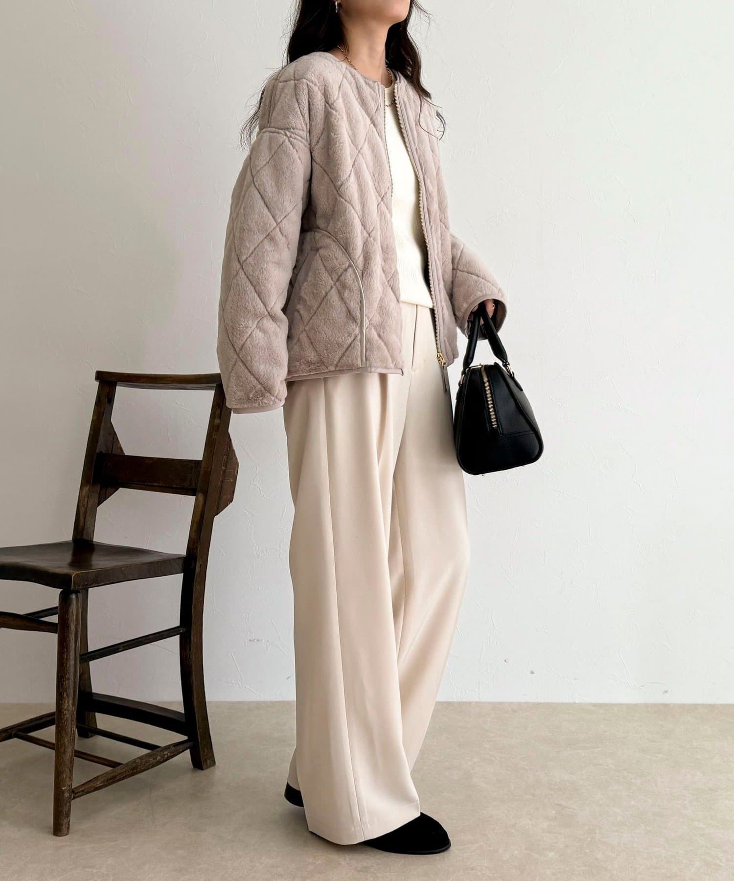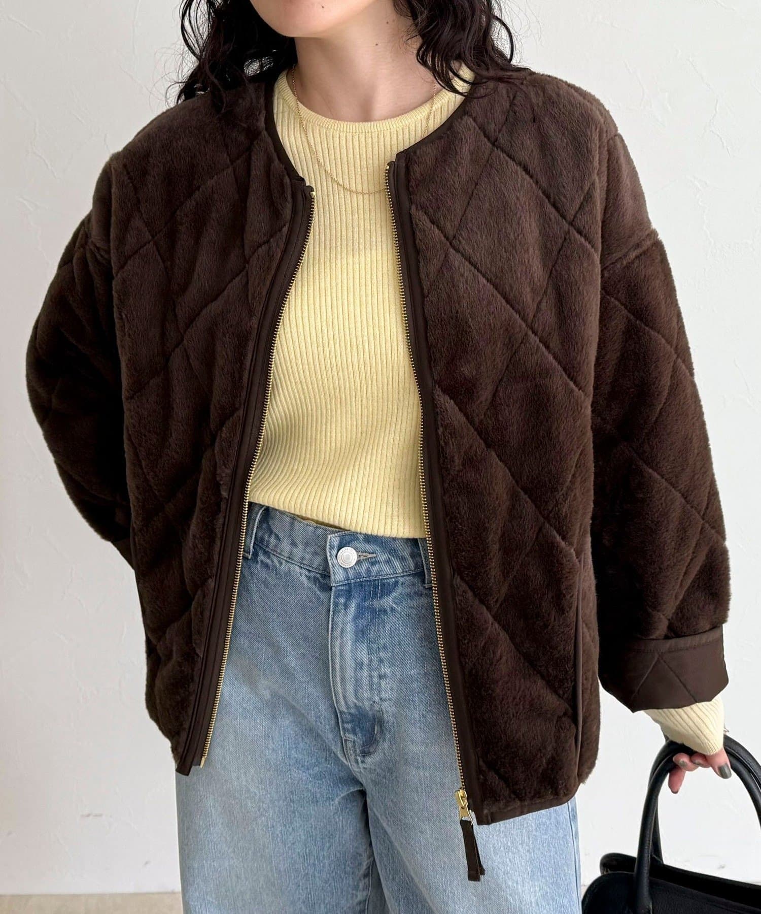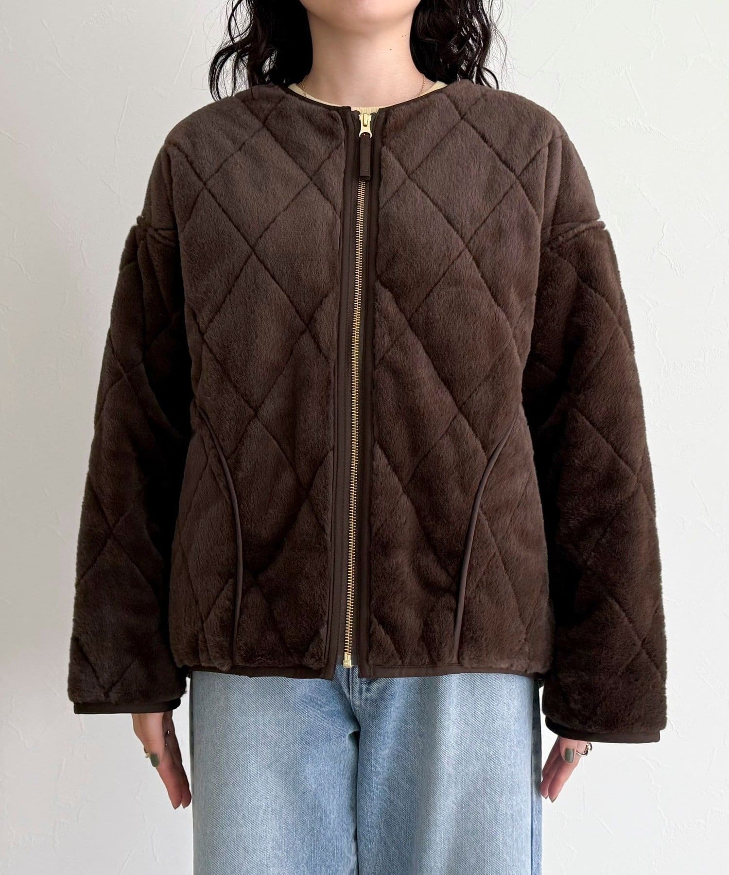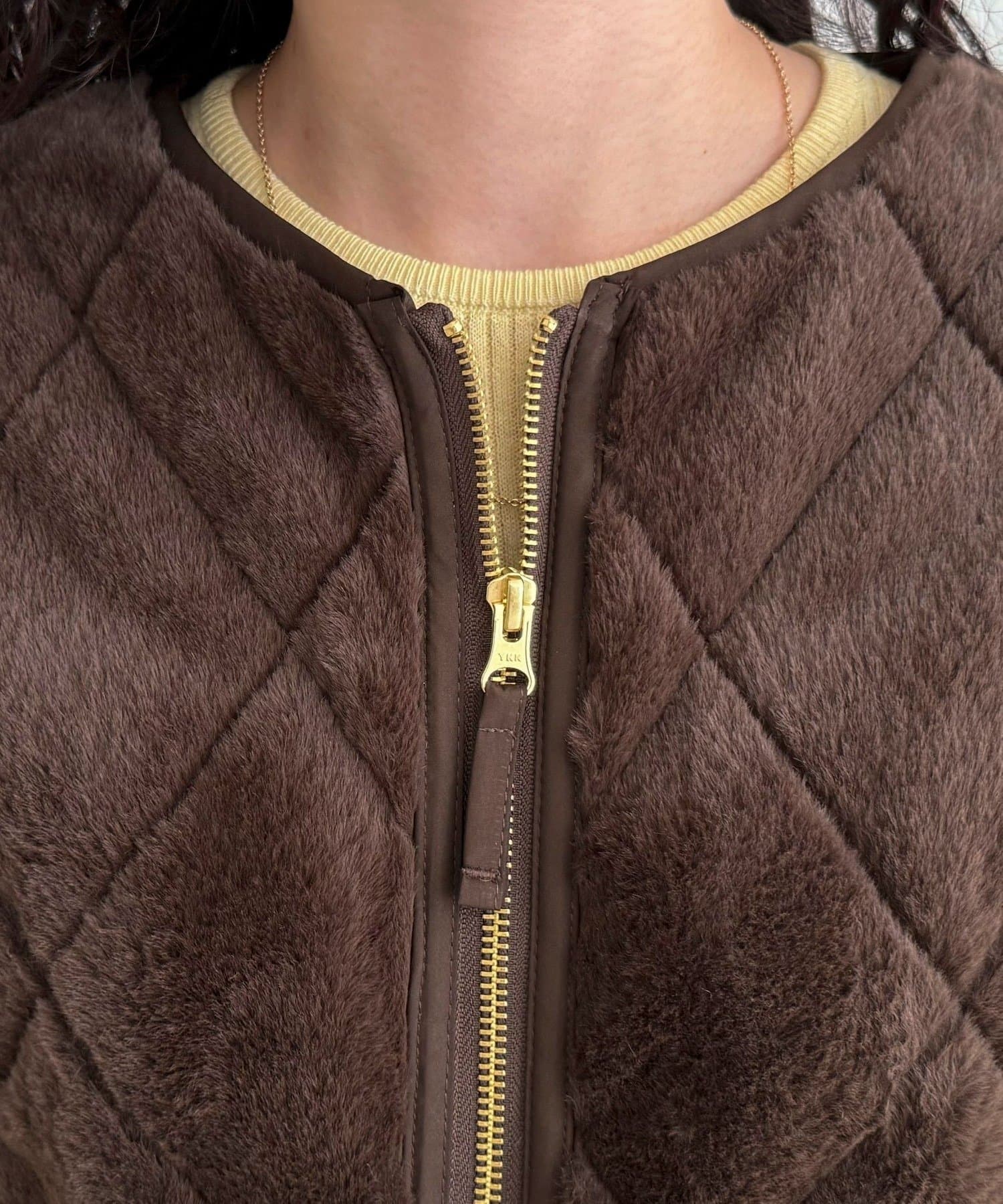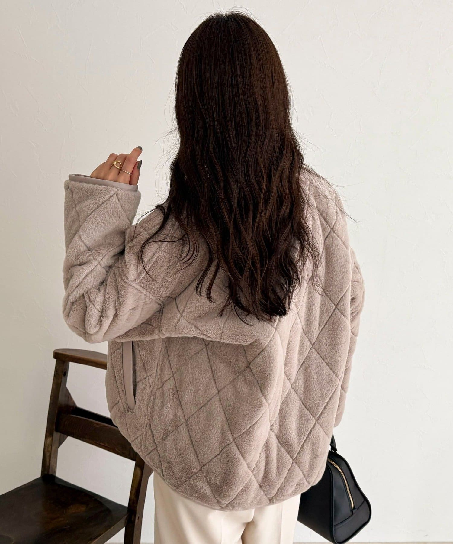 ・ふんわり柔らかなファーを贅沢に使用したキルトジップコート
