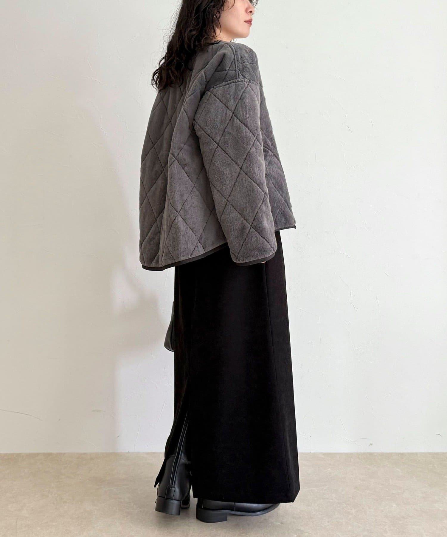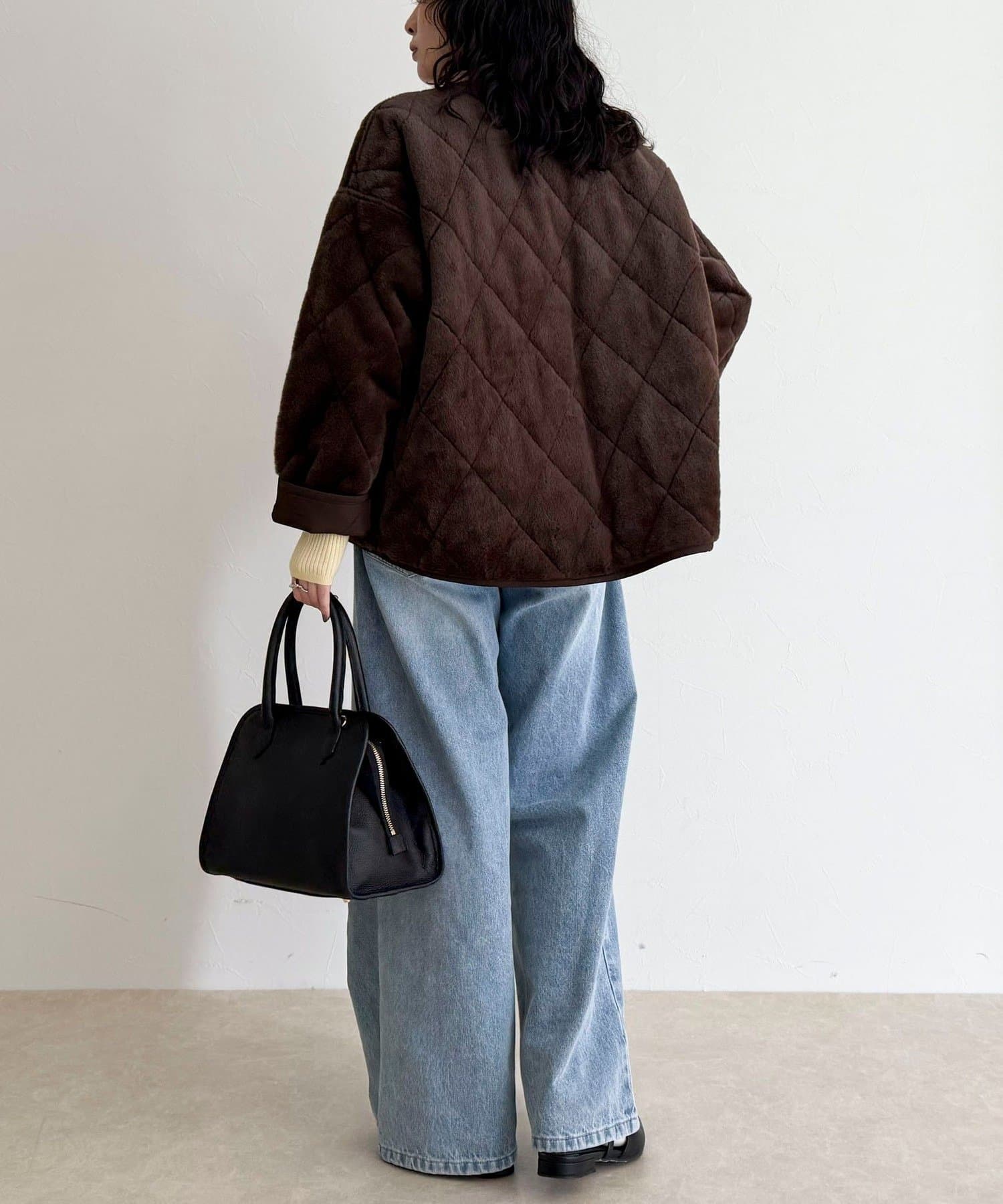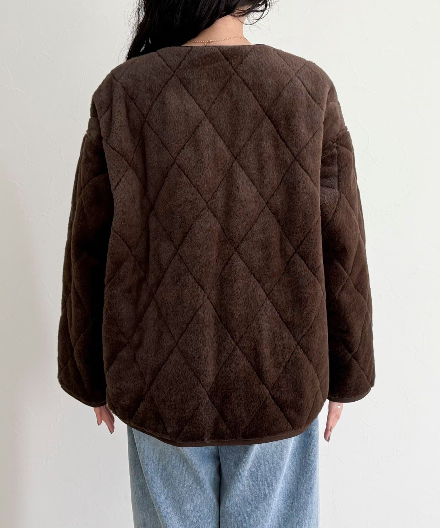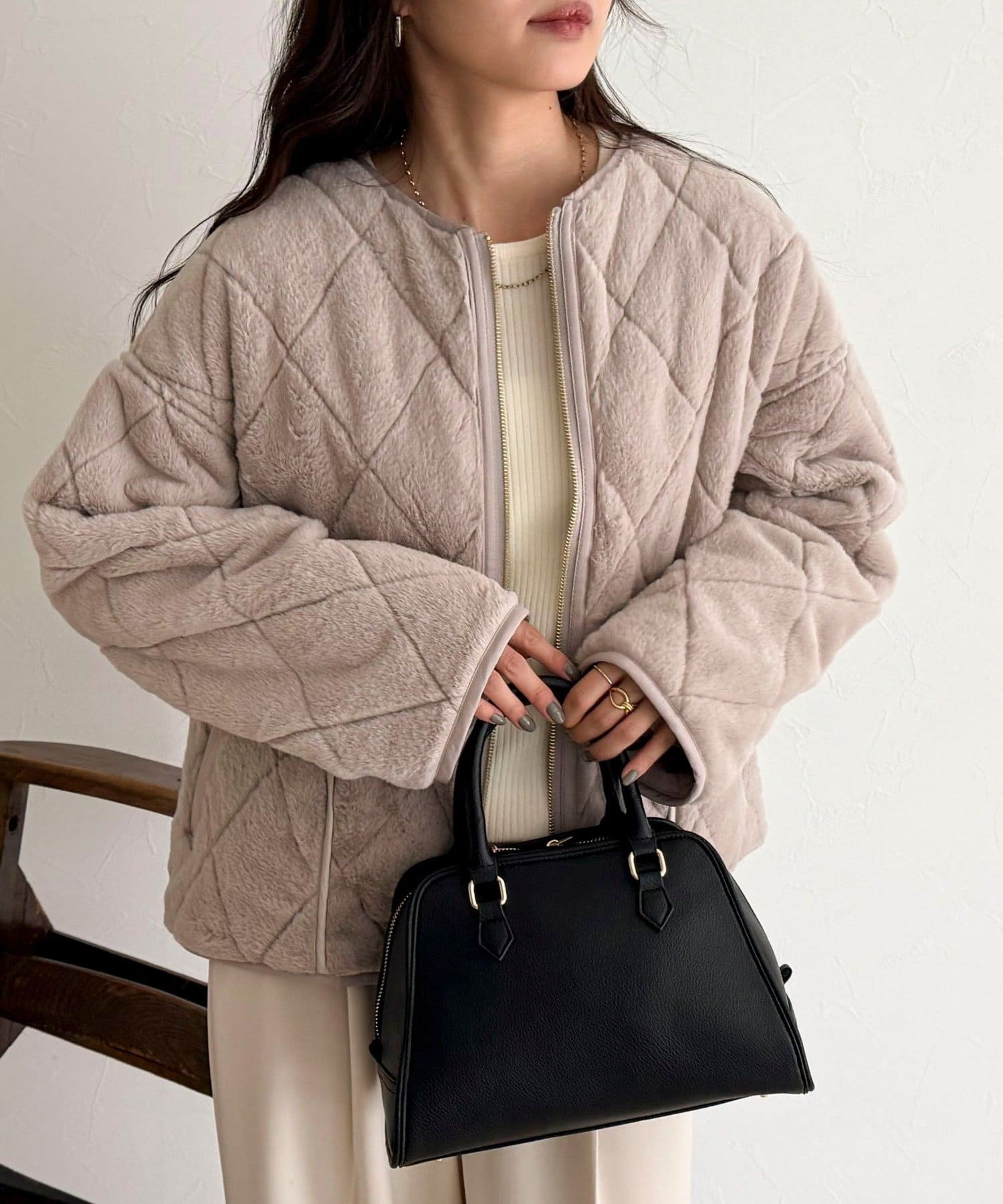 ・ふんわり柔らかなファーを贅沢に使用したキルトジップコート