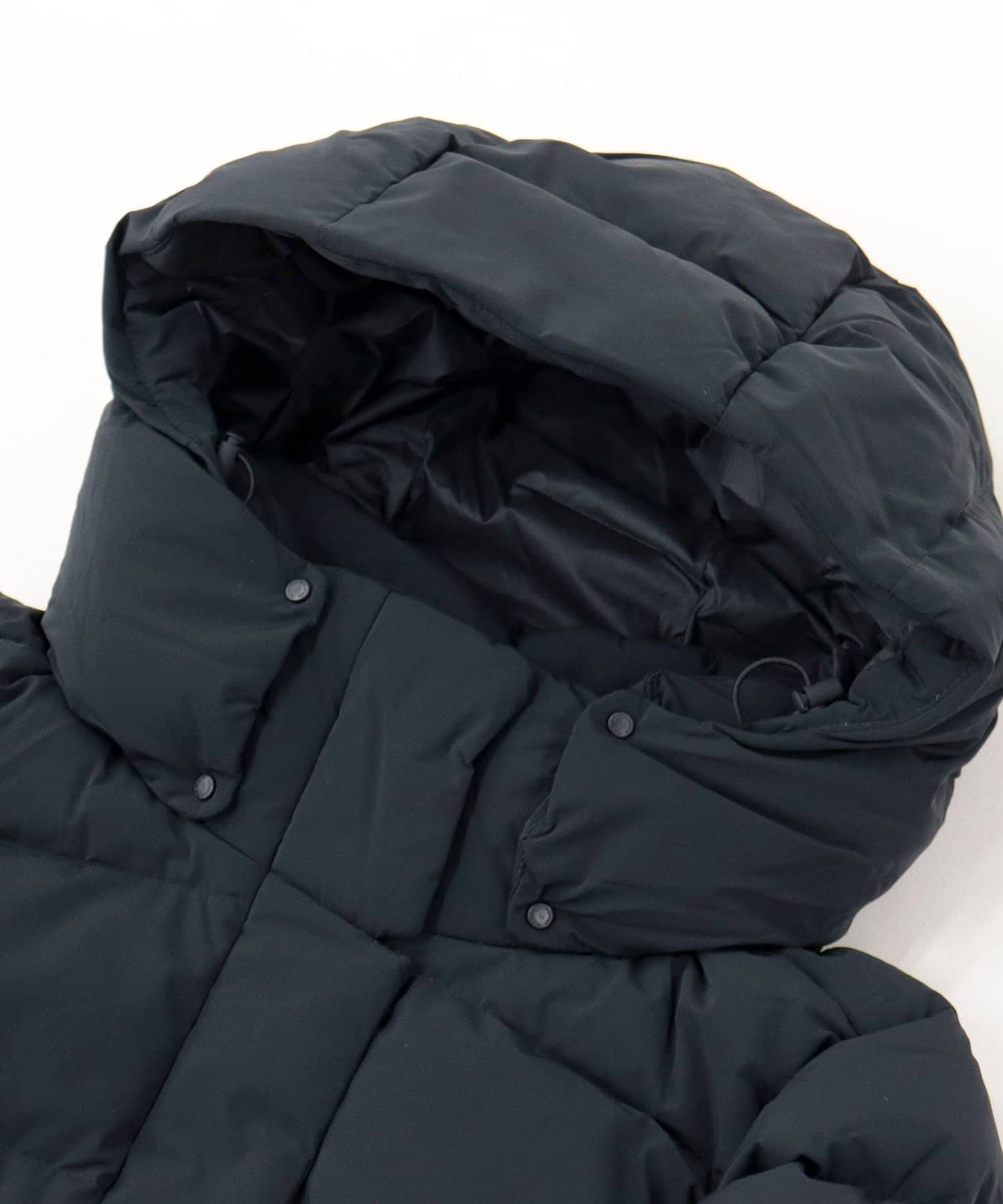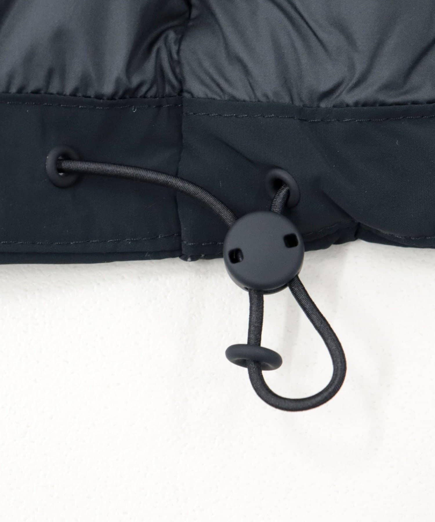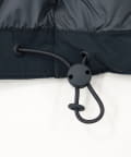 ・フードは用途に応じてスナップボタンで取り外しができ、首元と裾はフィット感を調整できるドローコード付き