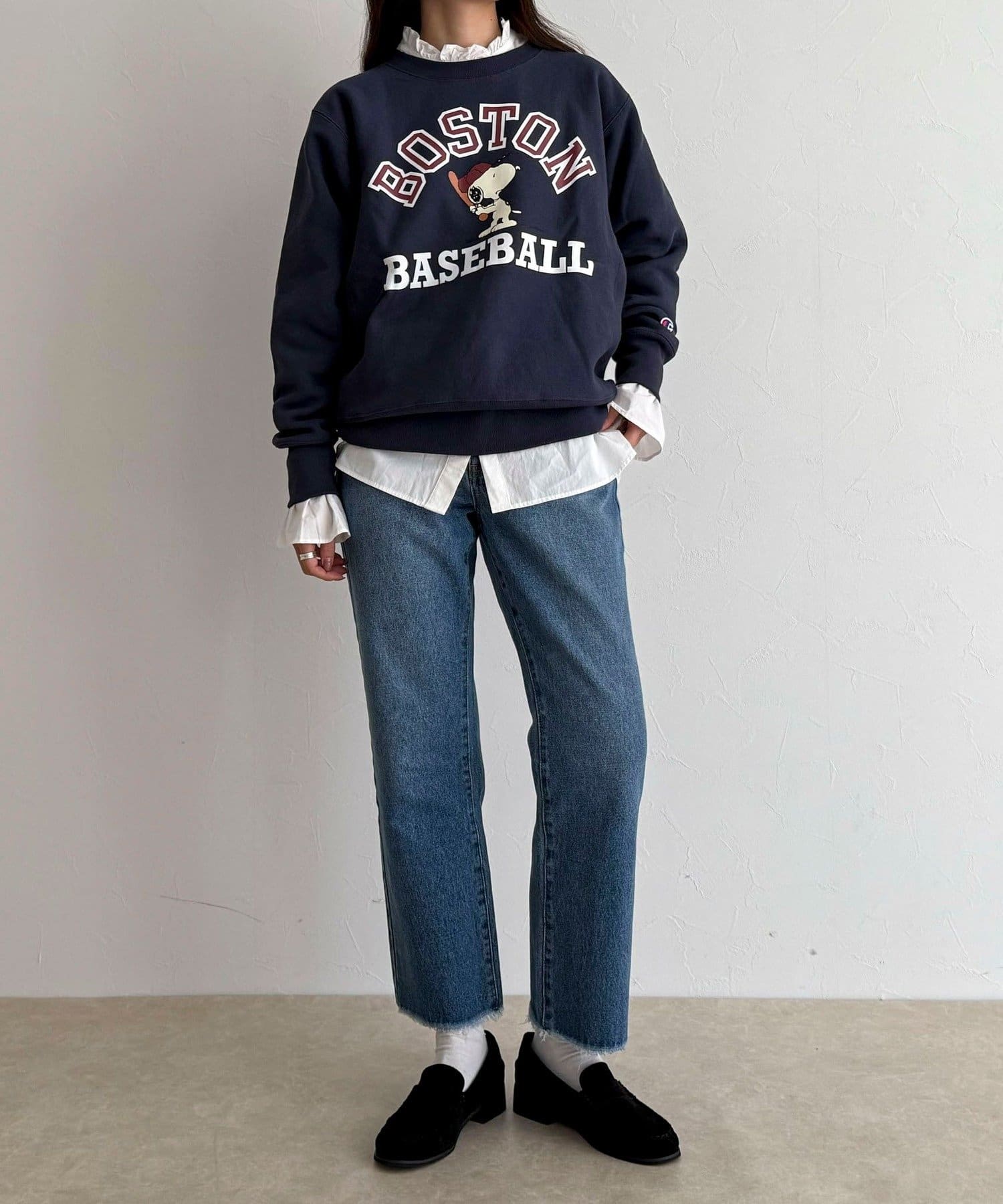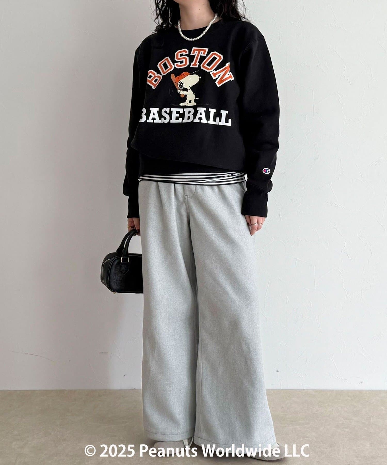 ・目を惹くスヌーピープリントがコーデのポイントに