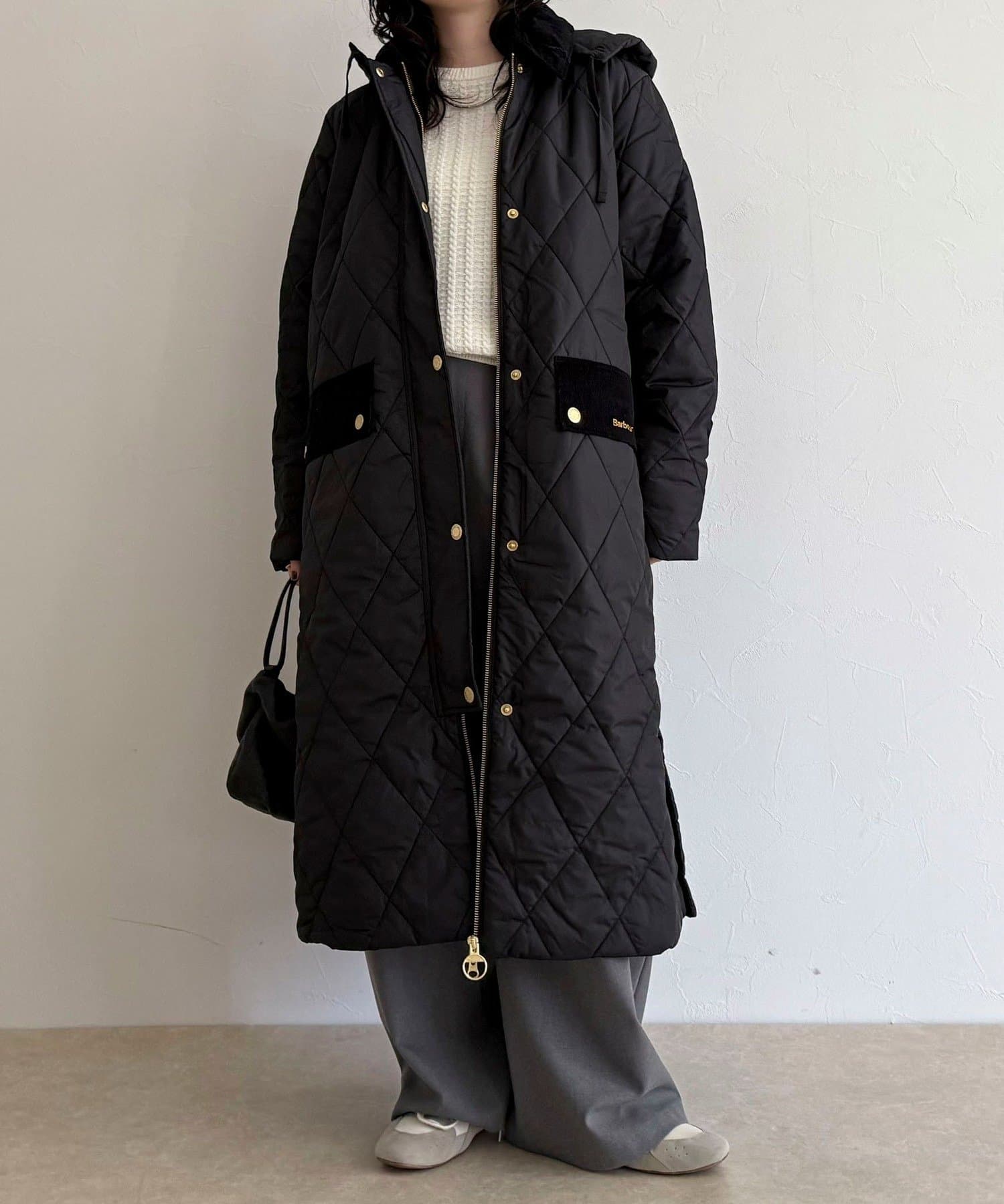 ・Barbour秋冬の定番である大ぶりのダイヤモンドキルトを施したロング丈ジャケット