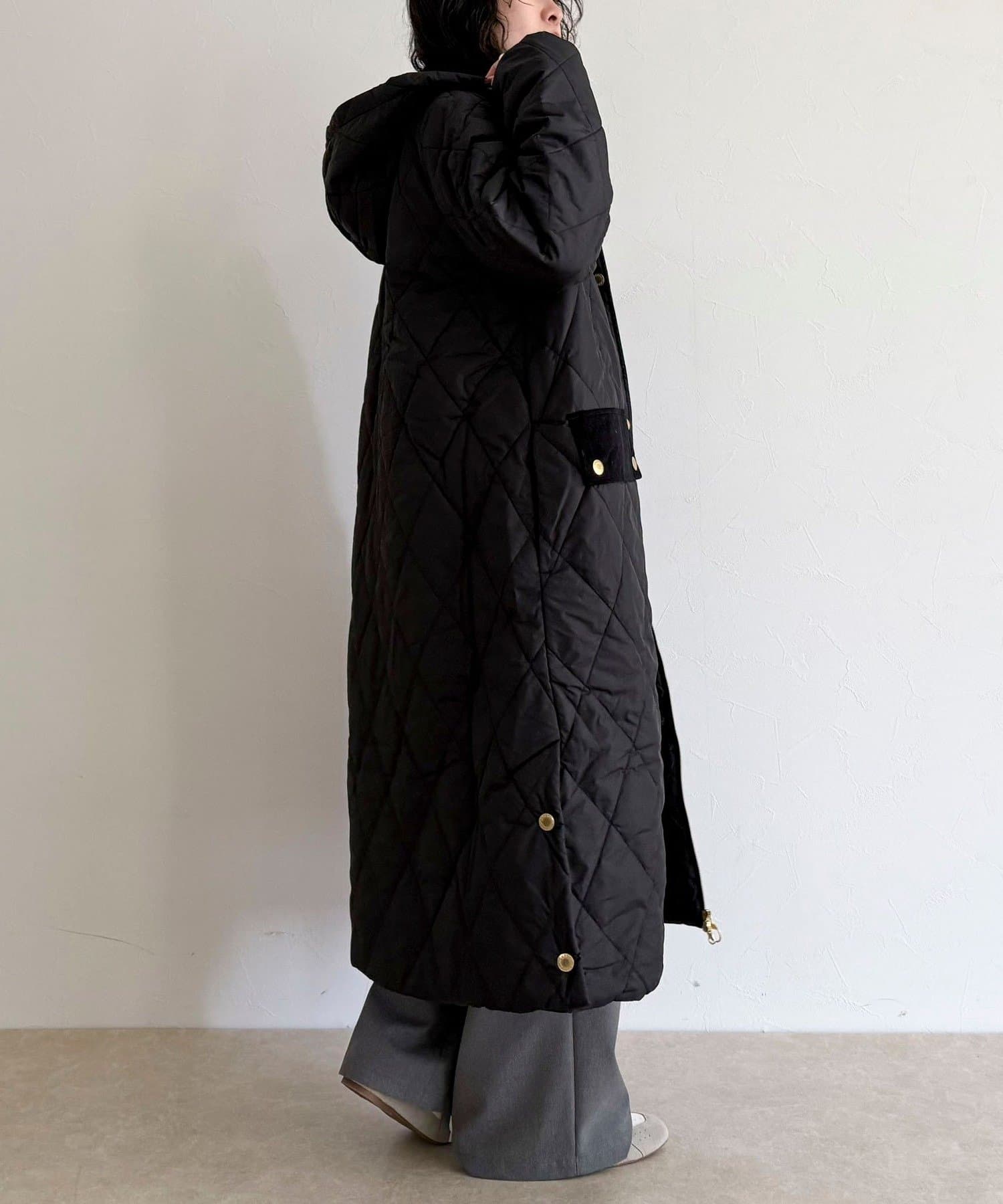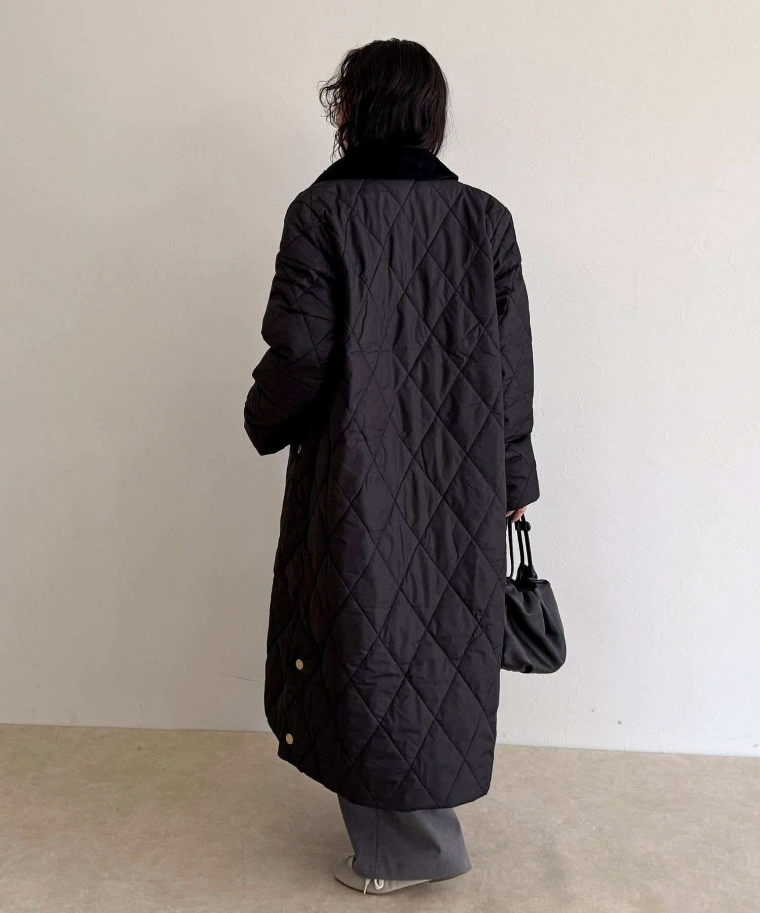 カジュアルにもきれいめにも使える定番キルティングロングジャケット