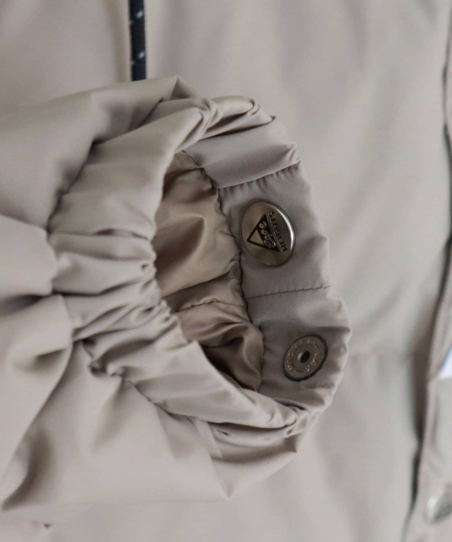 ・高めの襟、ドローコード付きフード、袖口のボタン仕様で防寒性◎