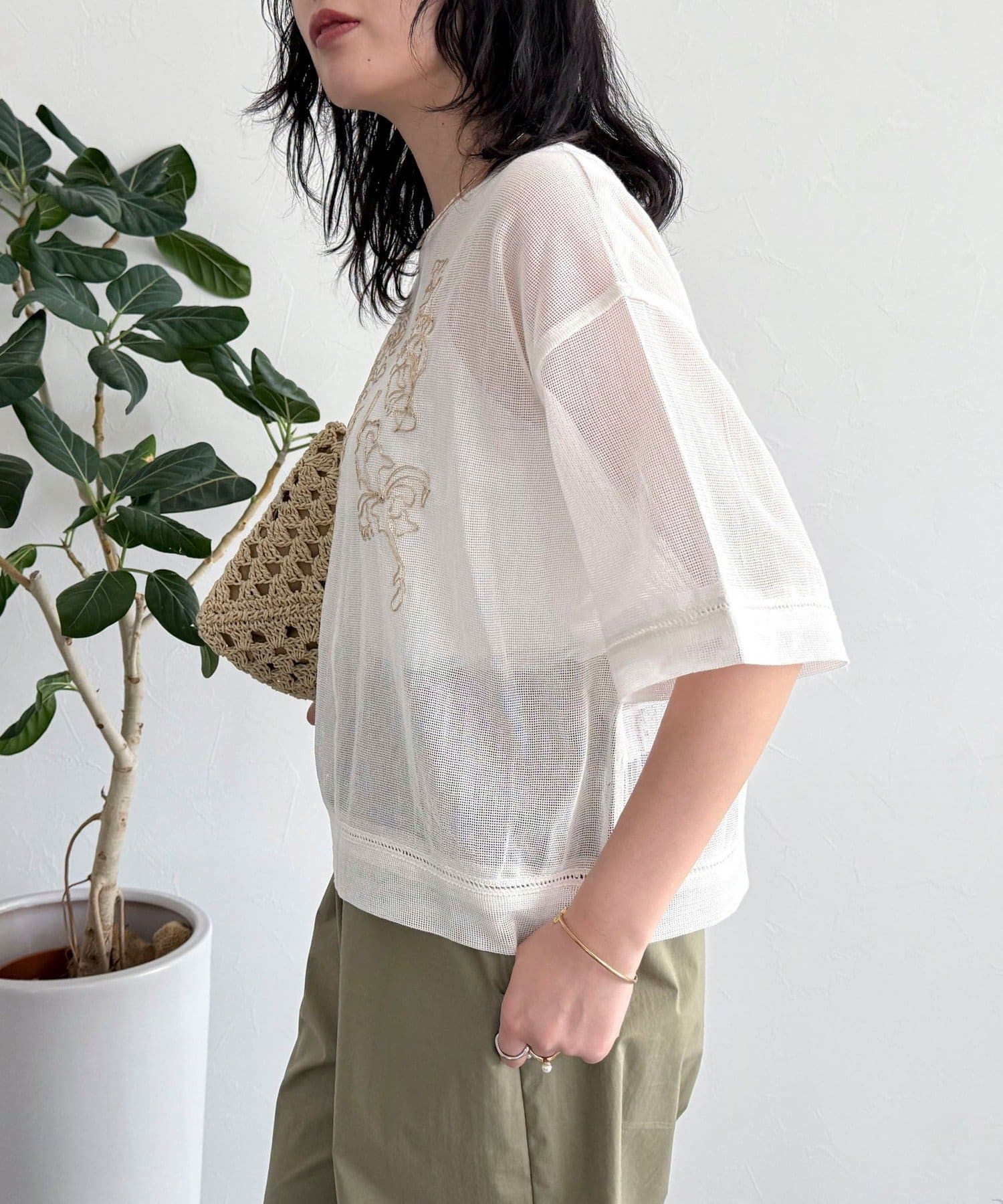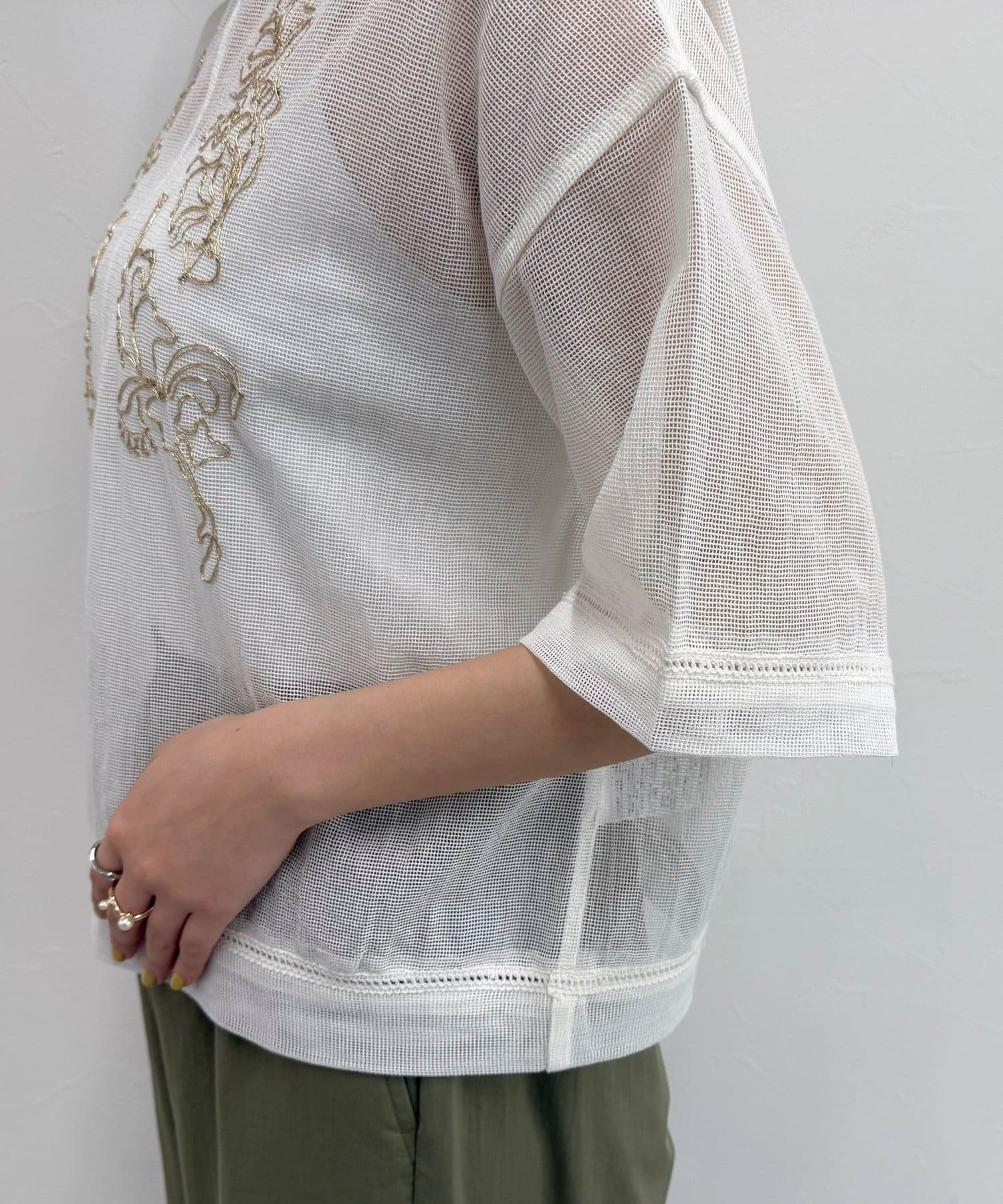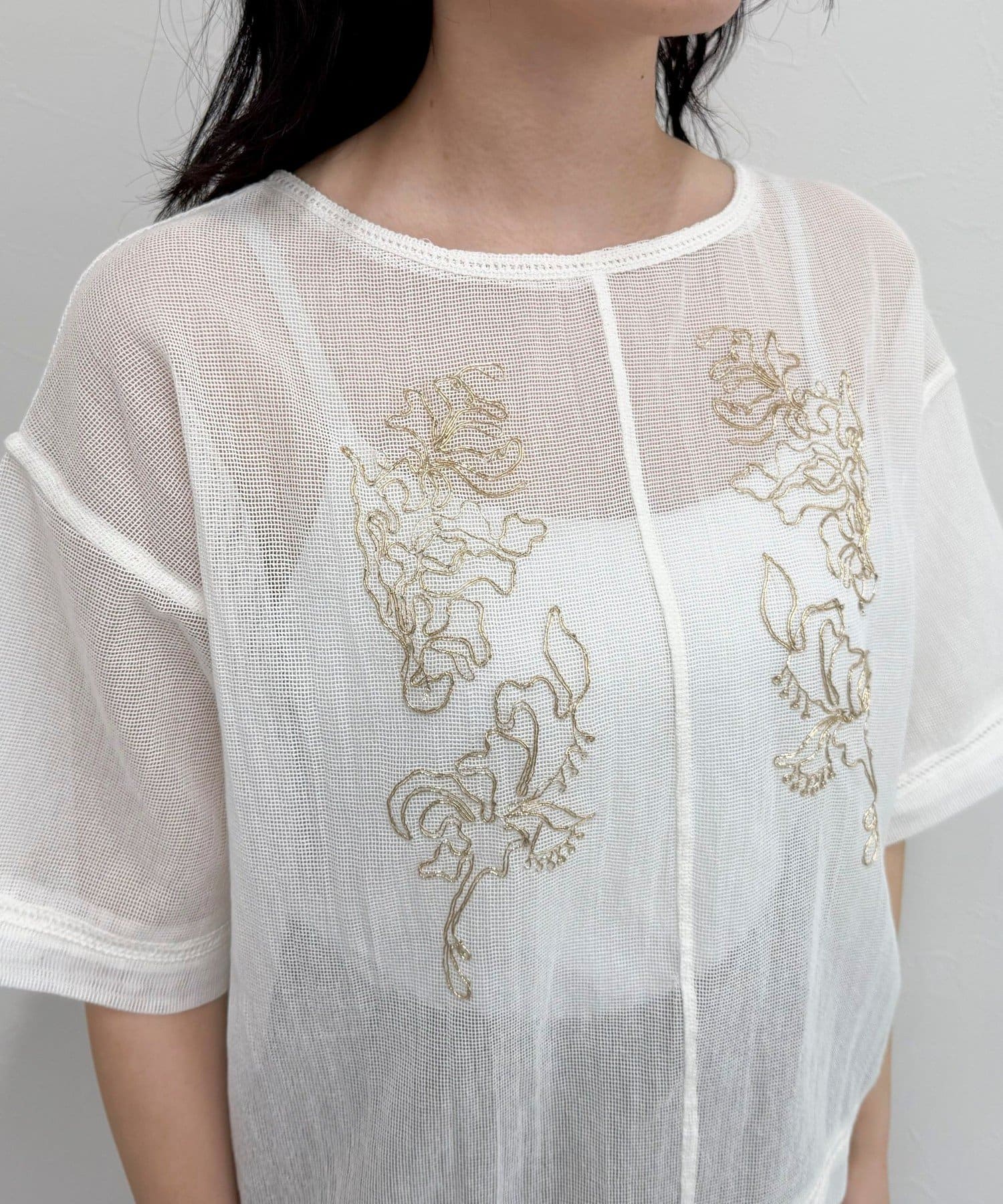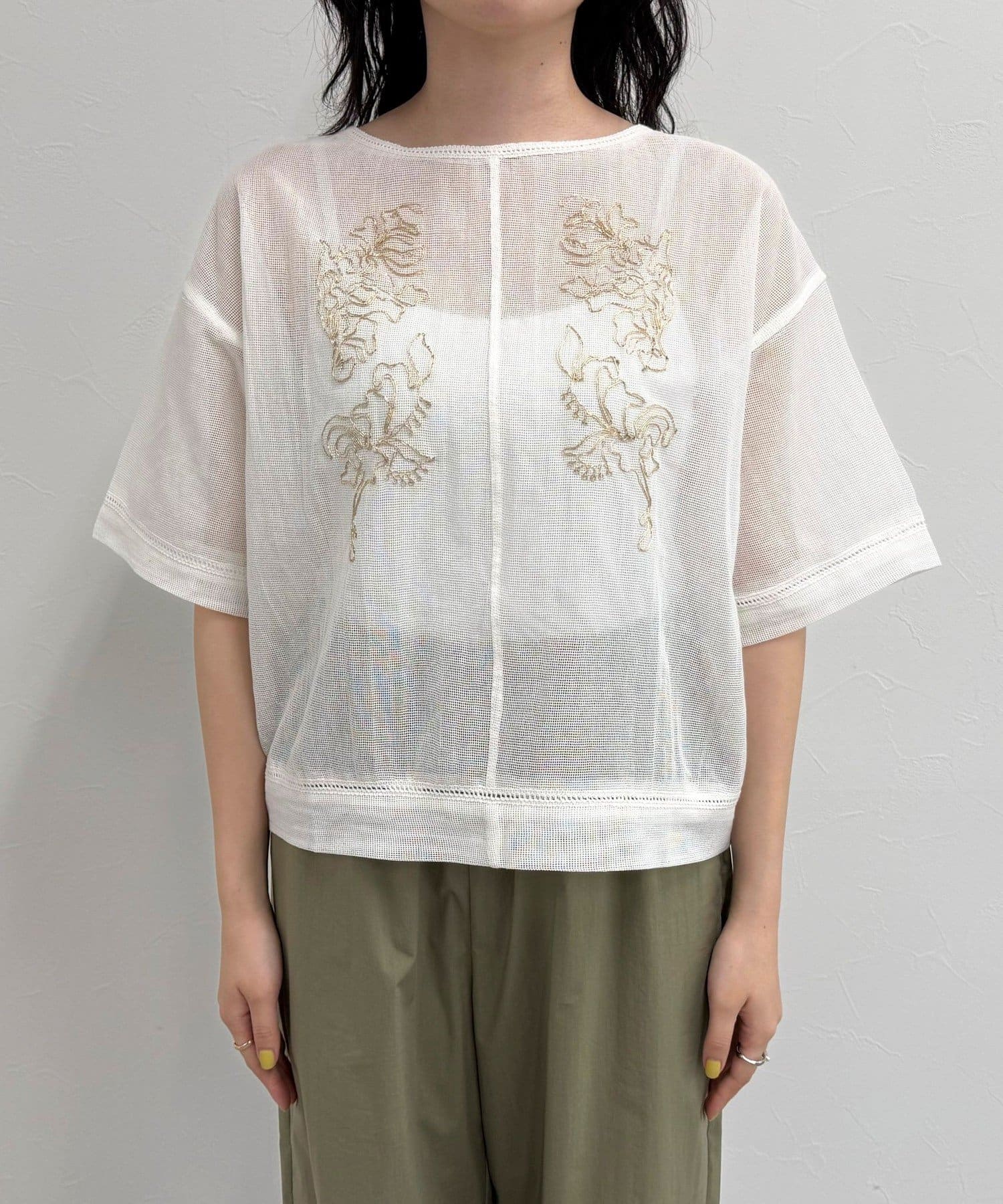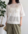 ・コットンメッシュ地に華やかな刺繍が映えるプルオーバーです