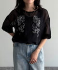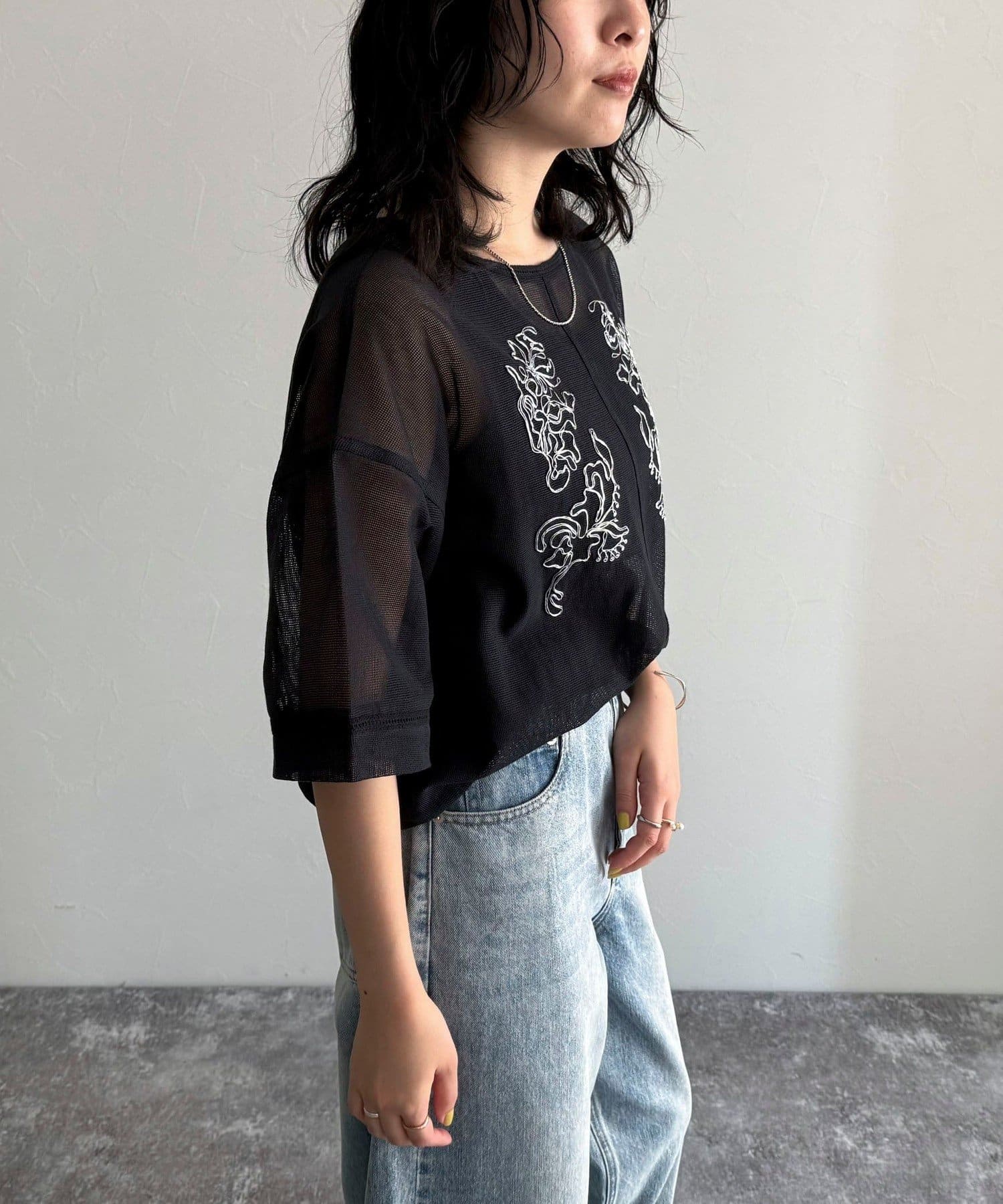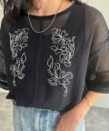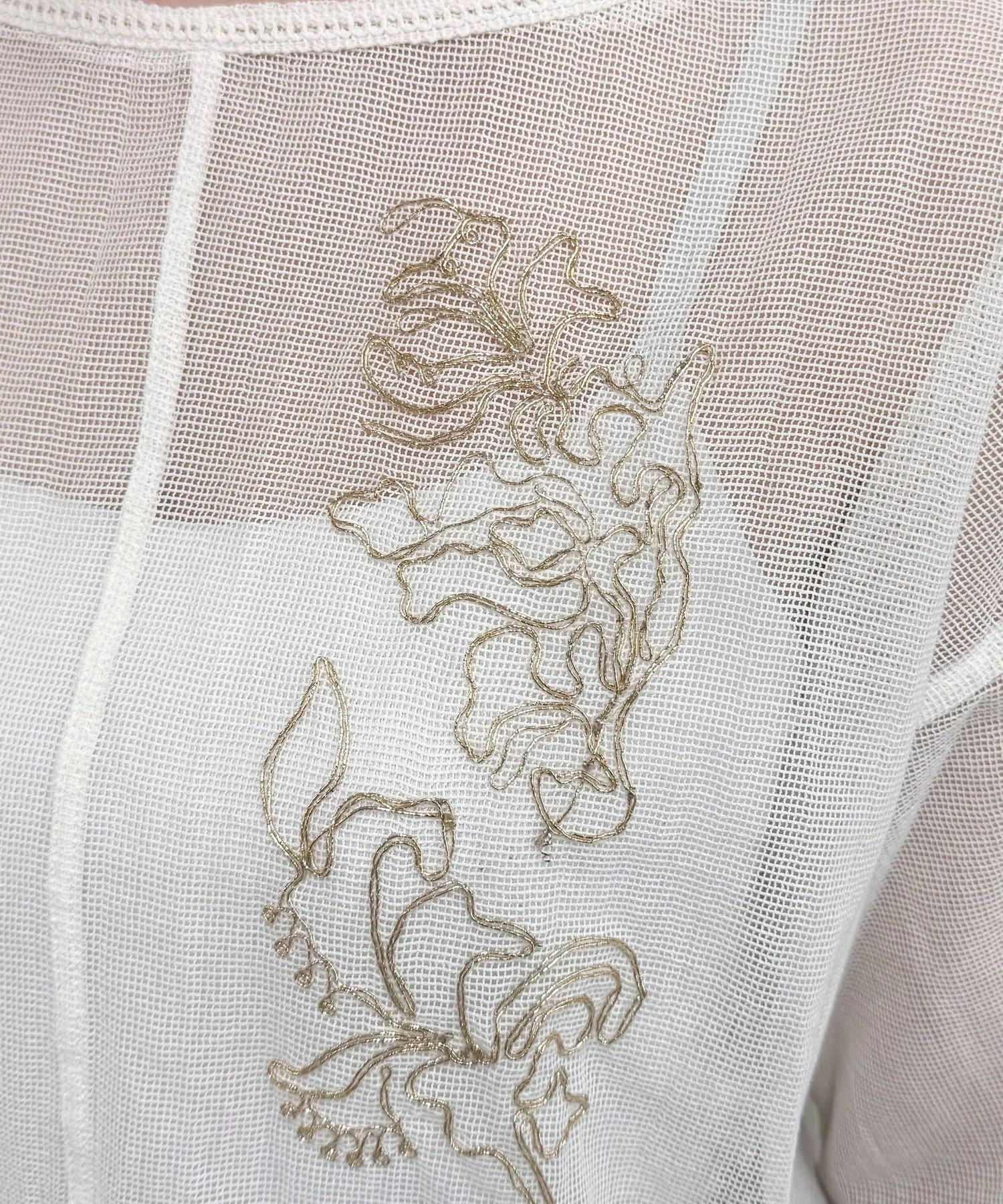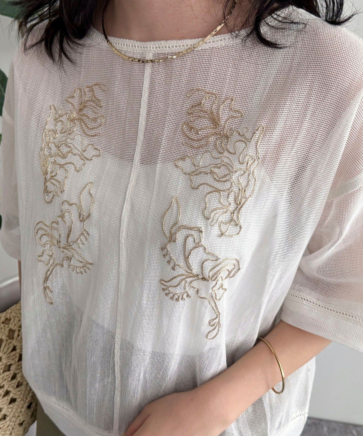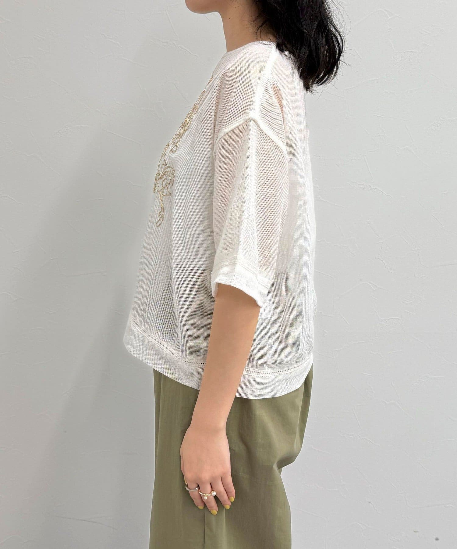 ・コットンメッシュ地に華やかな刺繍が映えるプルオーバーです