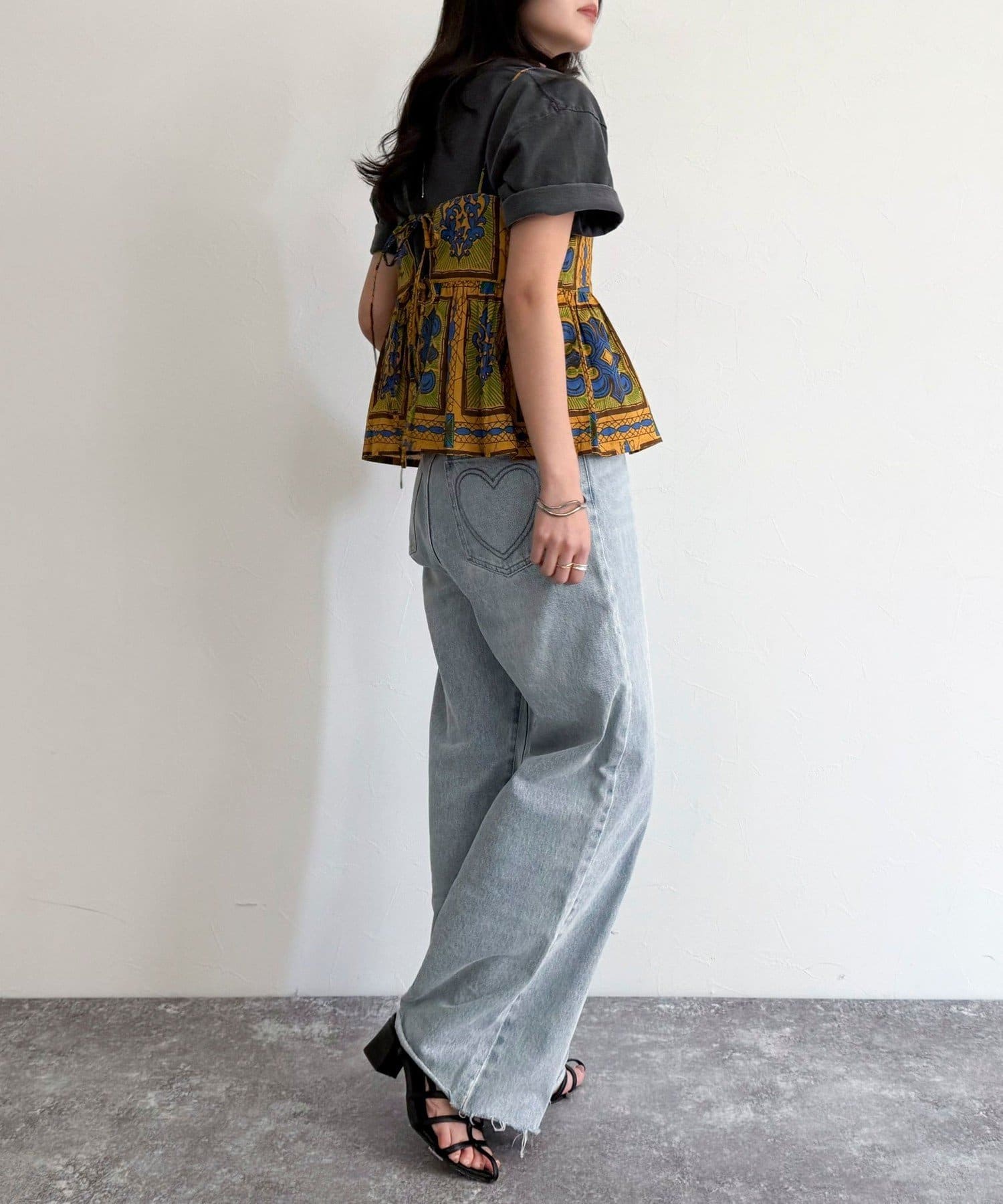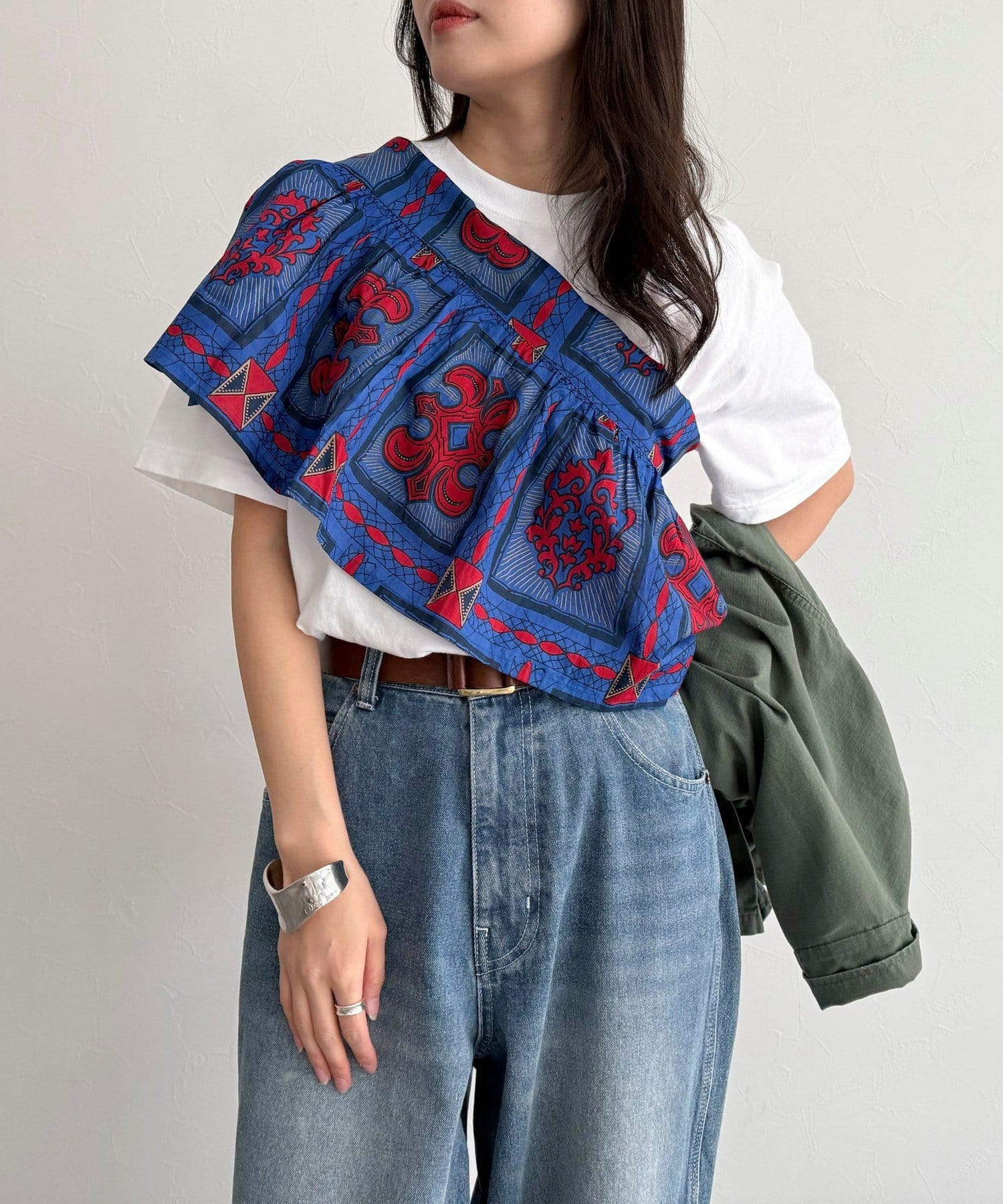 ・肩の上に乗せてワンショルダー風に着たり、袖下に通してビスチェライクに着たりと、マルチway仕様で気分に合わせて着方を変えていただけます