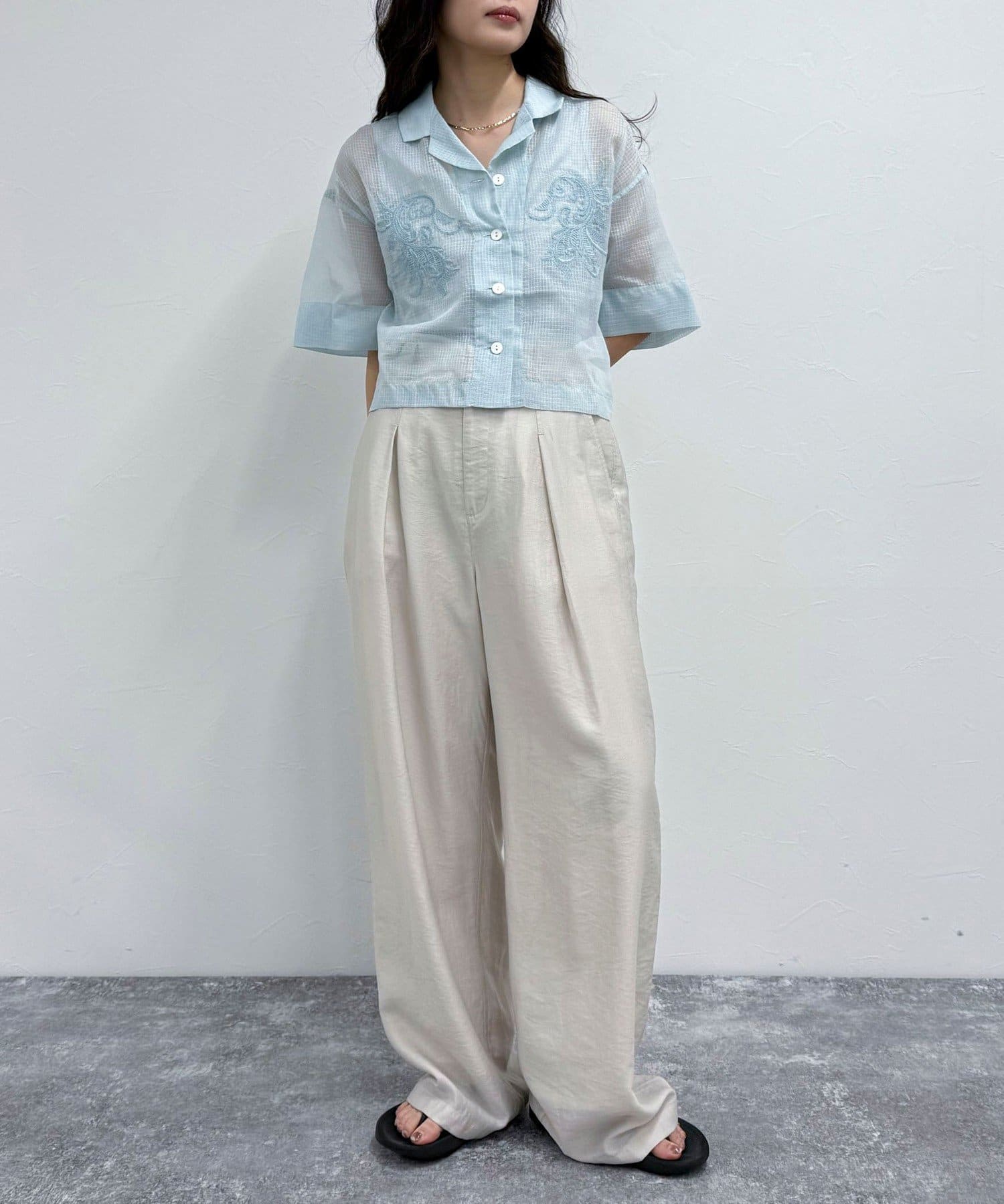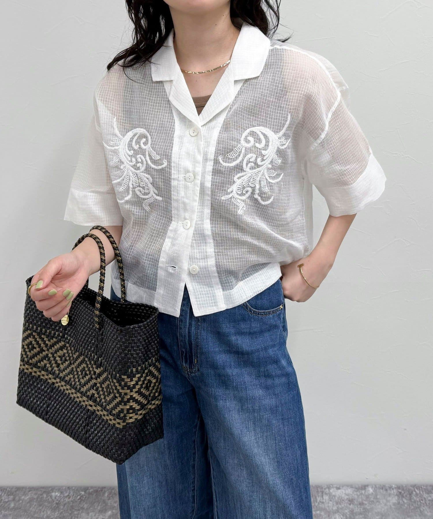 夏コーデに重宝するハンド刺繍ショートシャツ