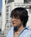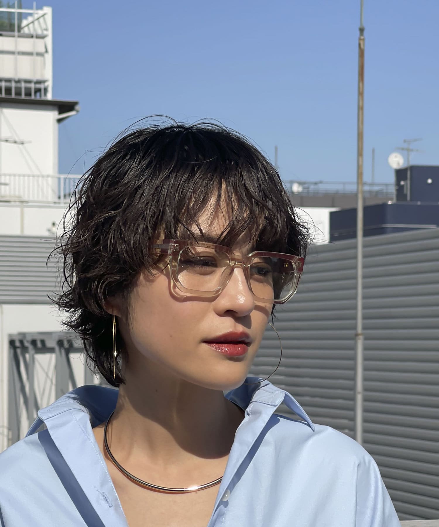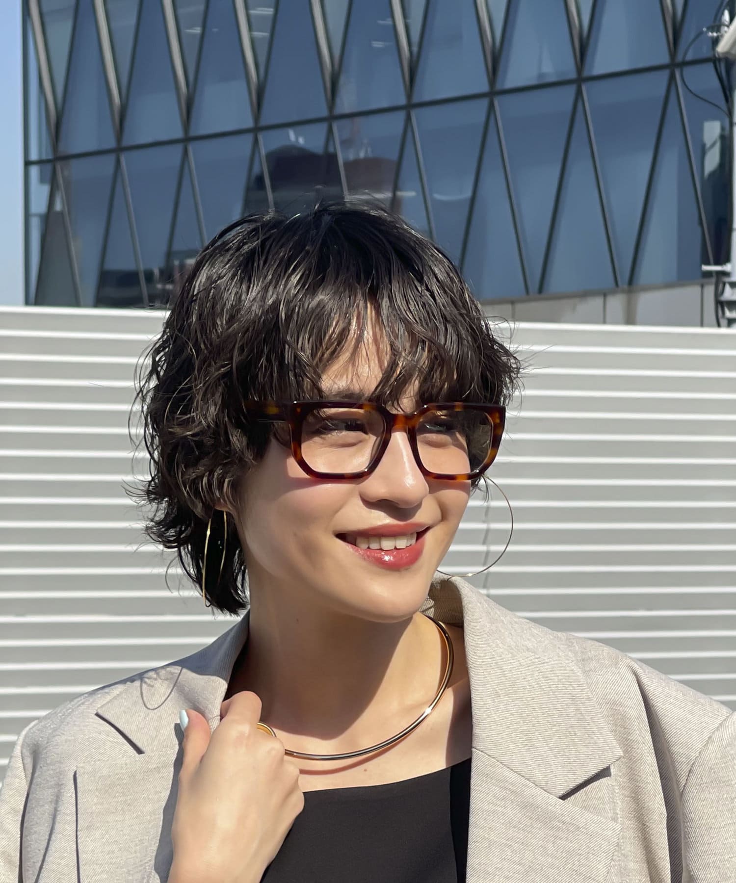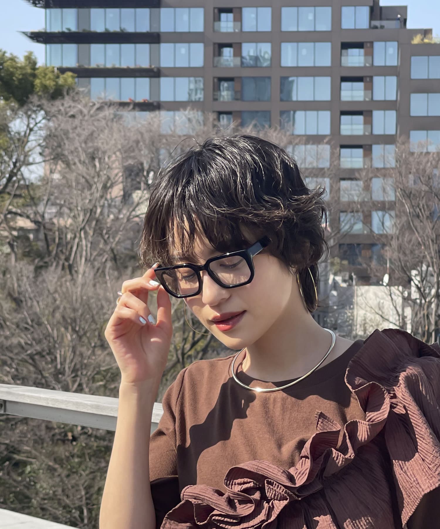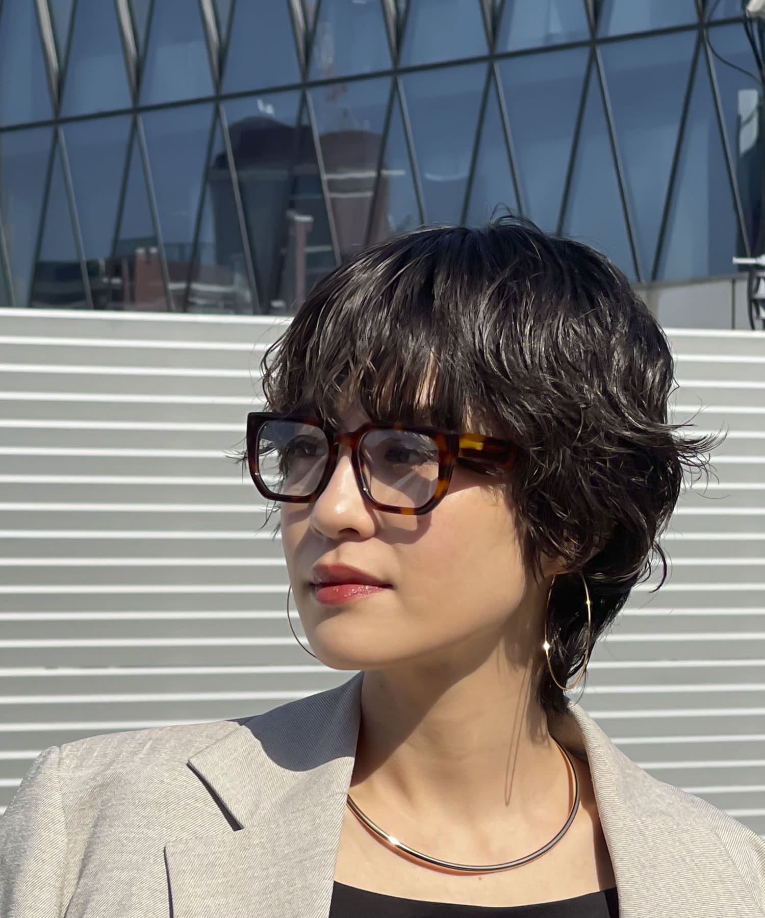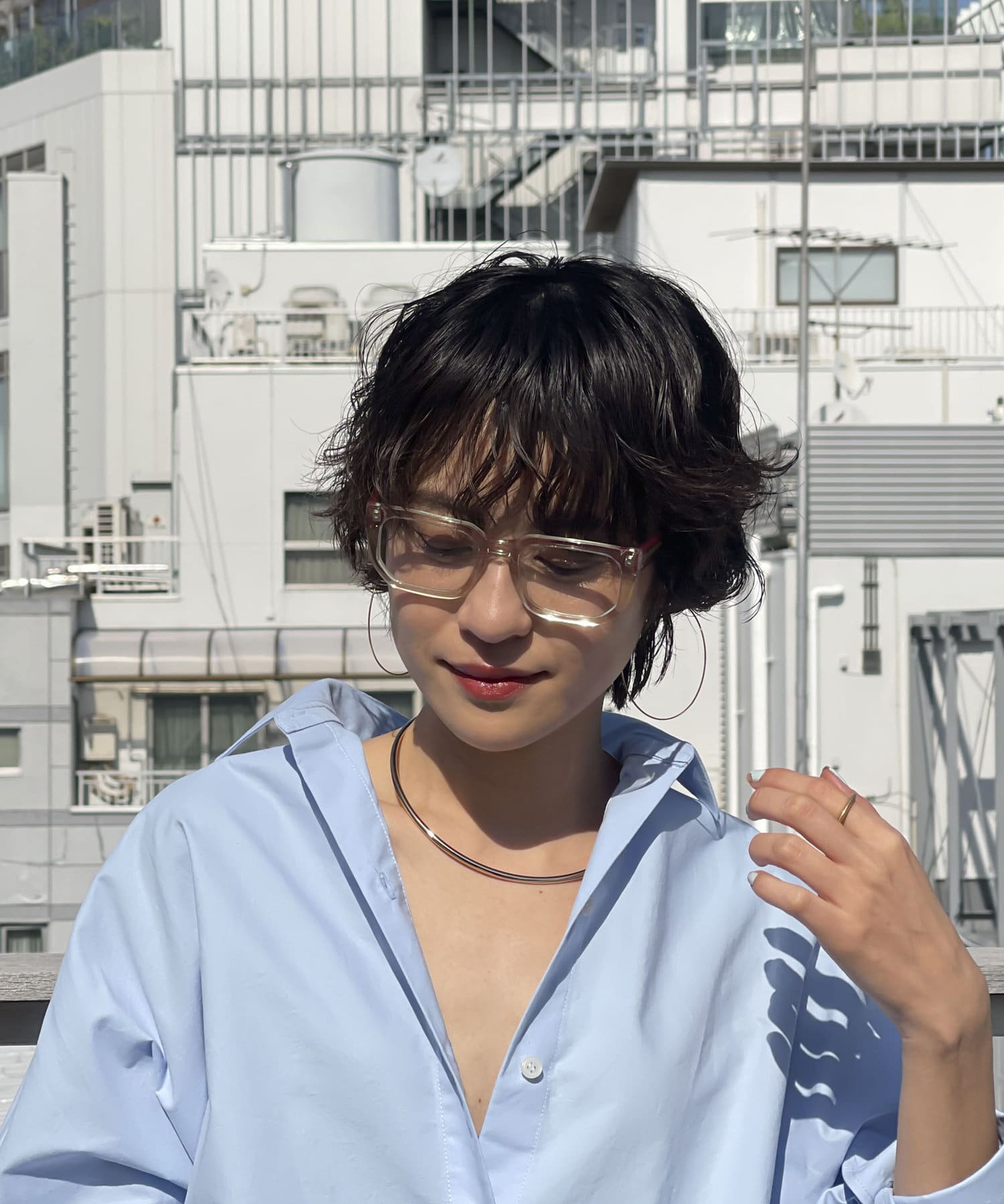 ・ウェリントン型のフレームが個性的なクリアメガネ