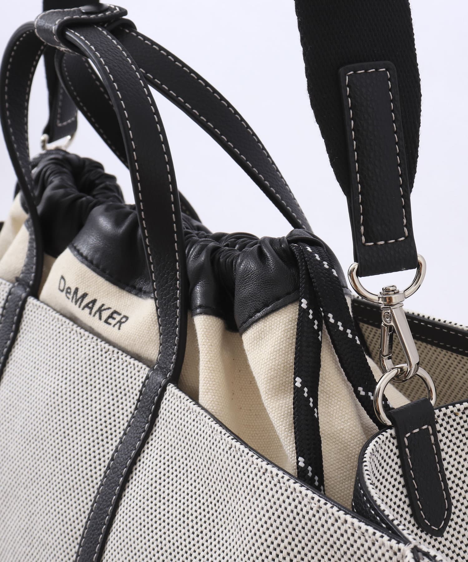 ・バッグの中身を整理整頓できるので、スマートにお使いいただけます。巾着部分のデザインも、さりげなくおしゃれ。