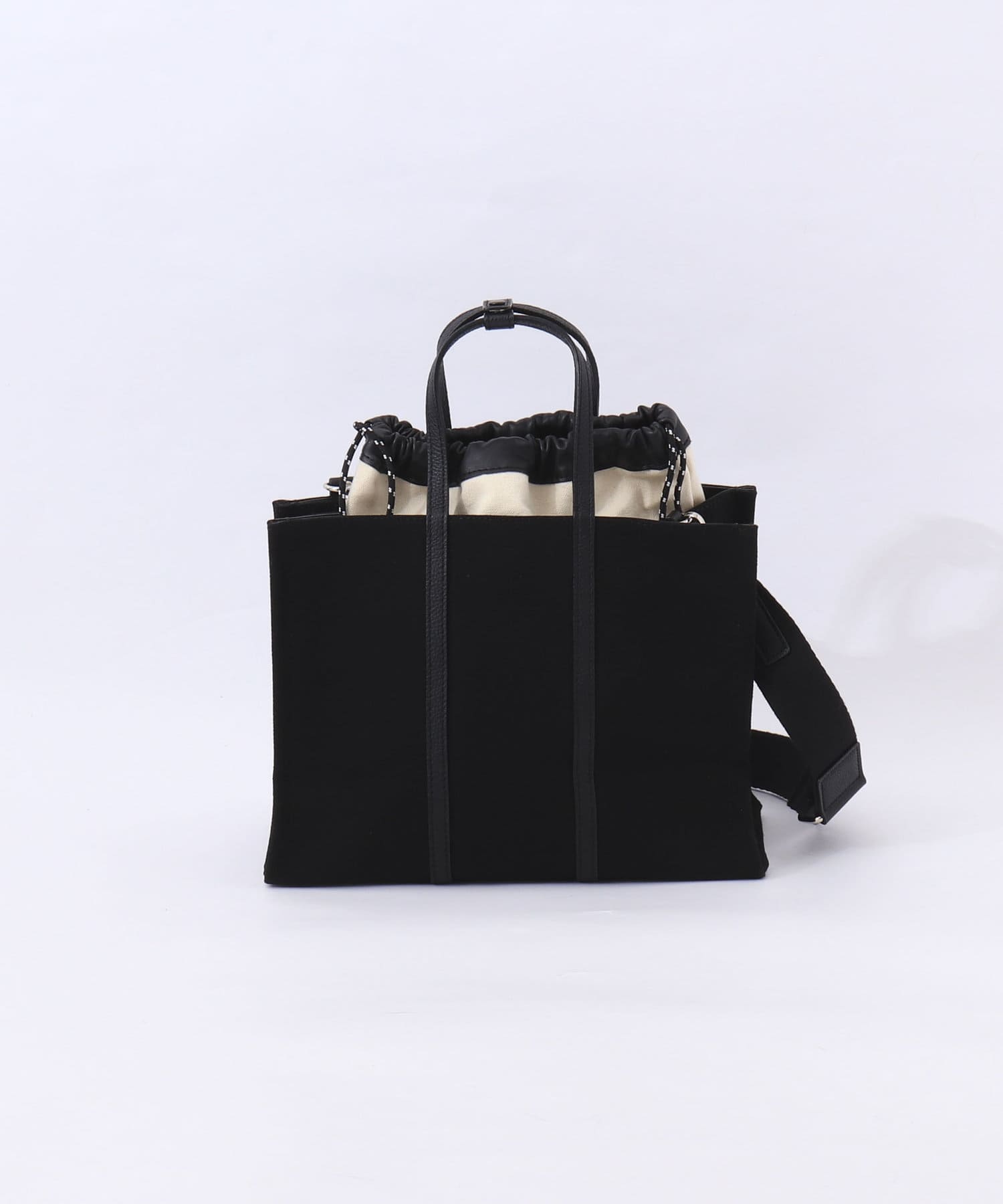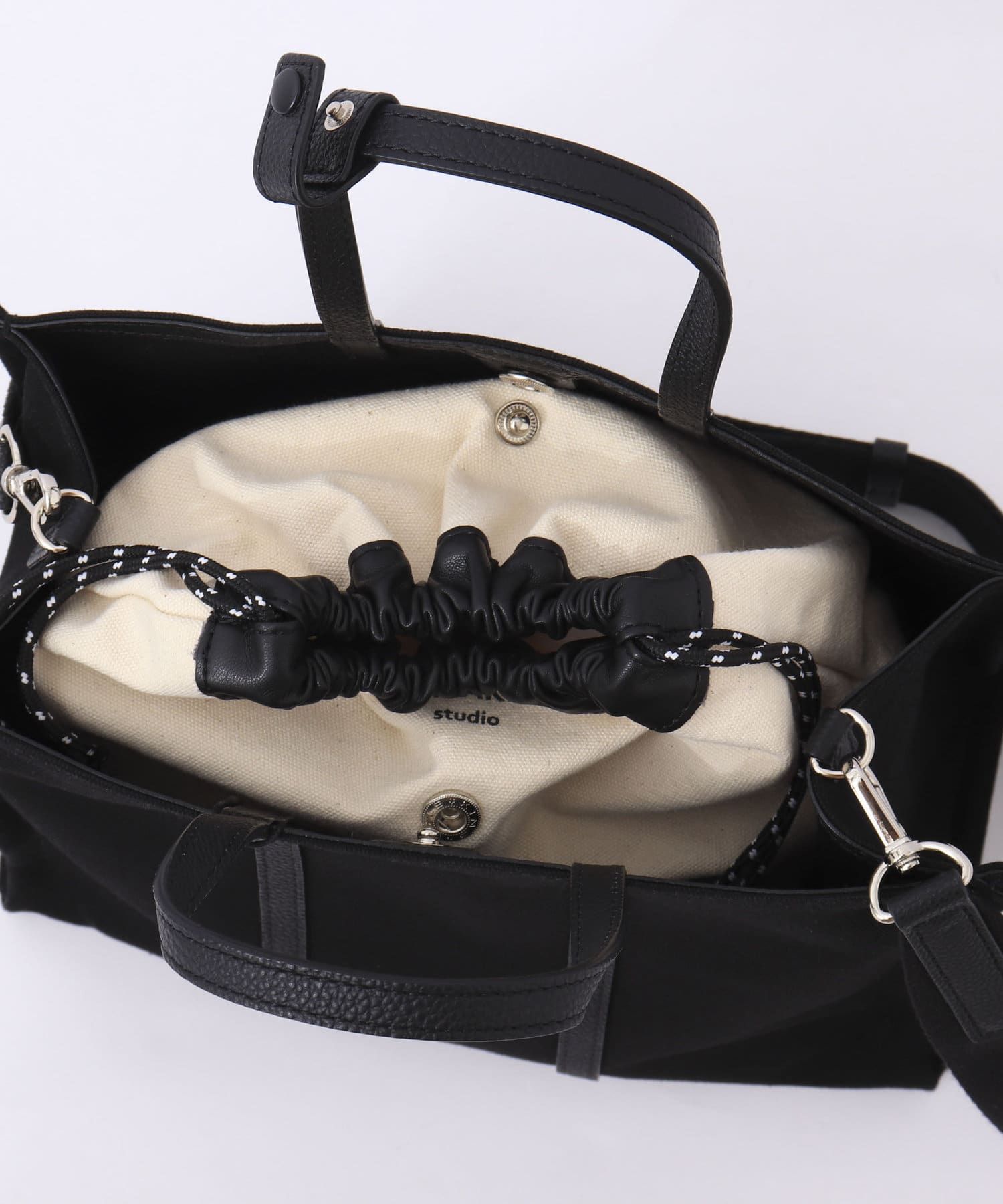 ・バッグ上部から覗く巾着型のインナーバッグが、デザインのアクセントに。