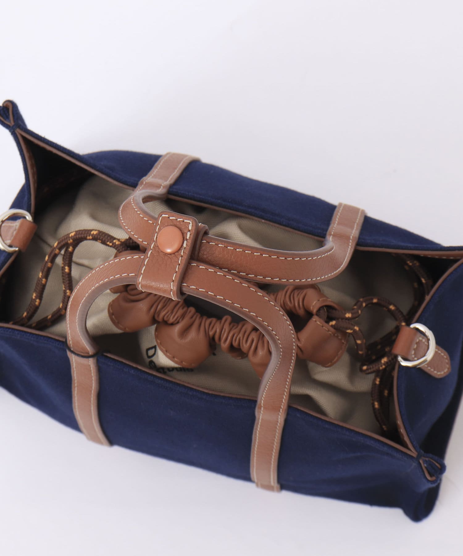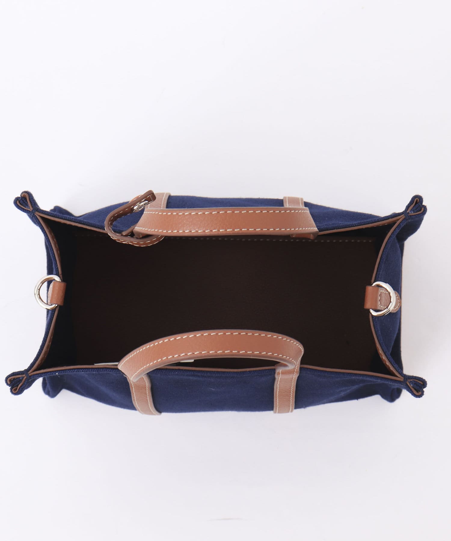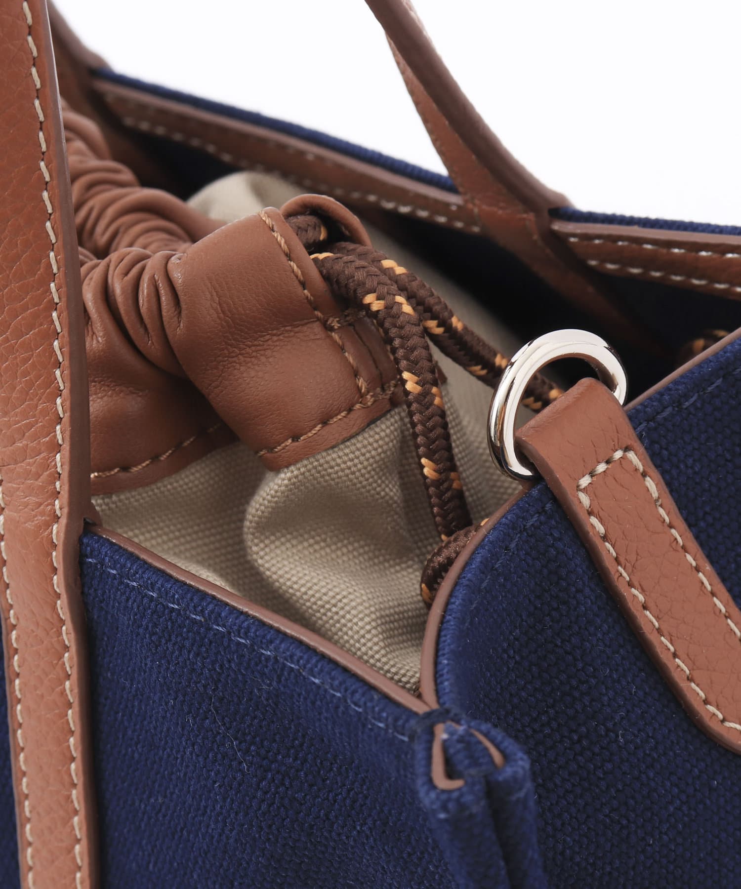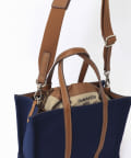 ・都会的で落ち着いたネイビーカラーと、上品なキャメルカラーの組み合わせが目を引くトートバッグ