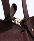 ・しぼ加工のレザーにゴールド金具が映え、高級感をプラス。