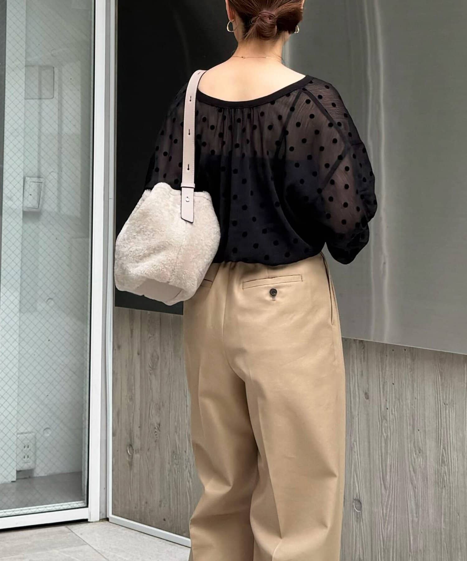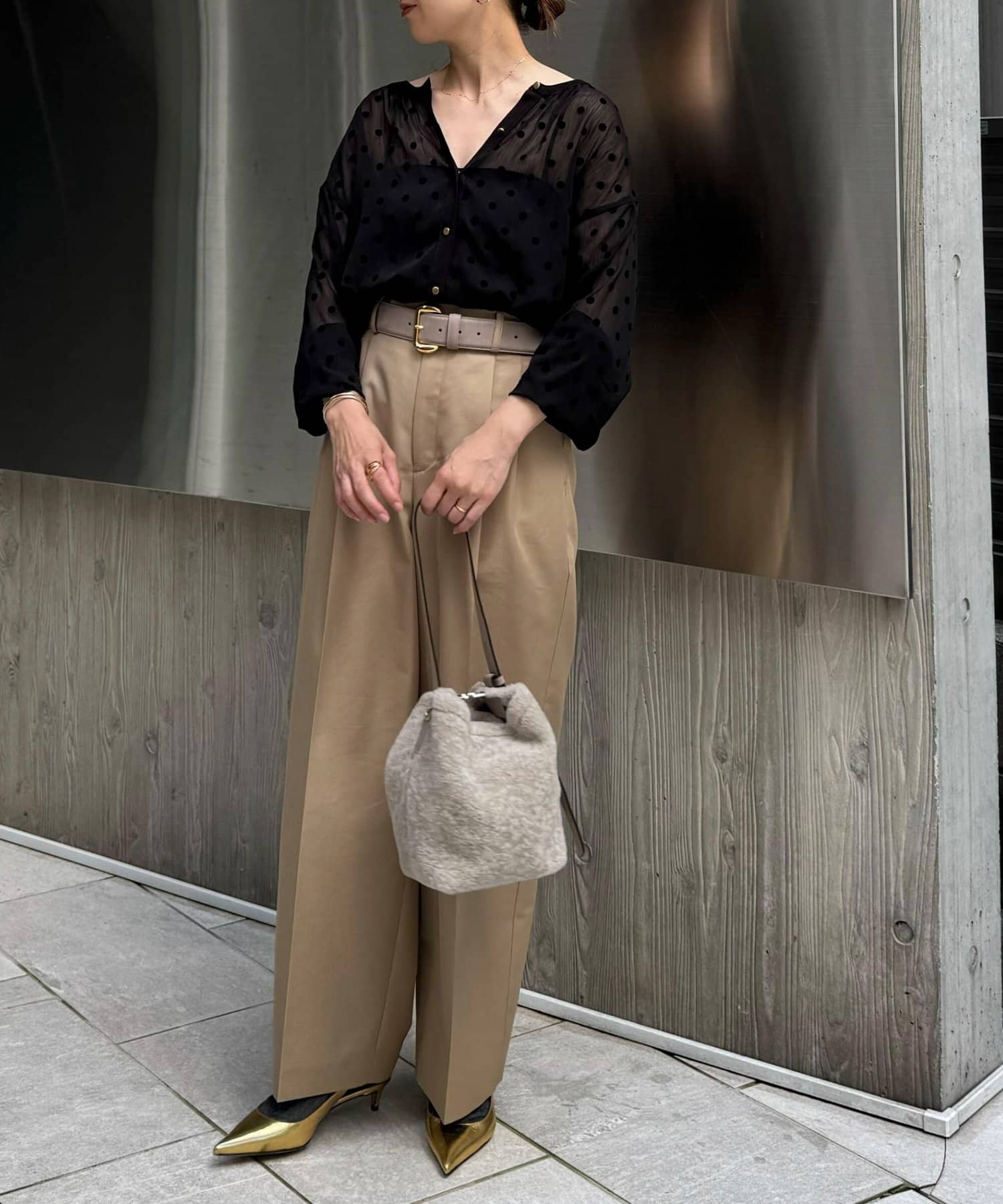 ・シーズンムードを高める素材感で、コーディネートにアクセントをプラス。