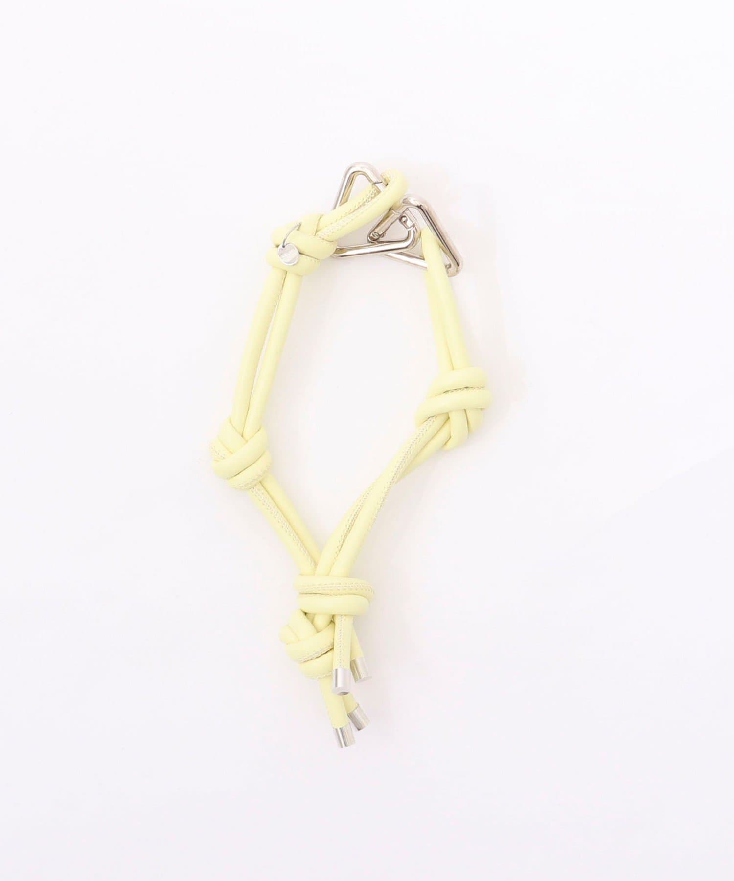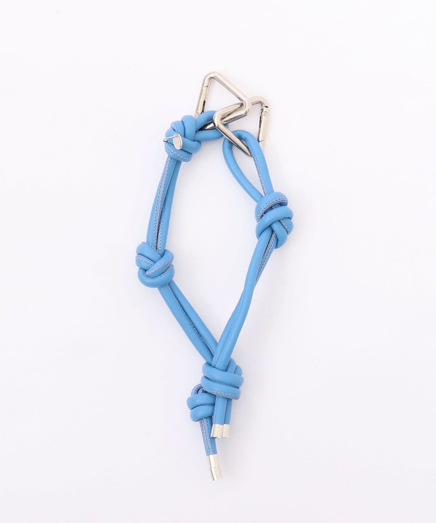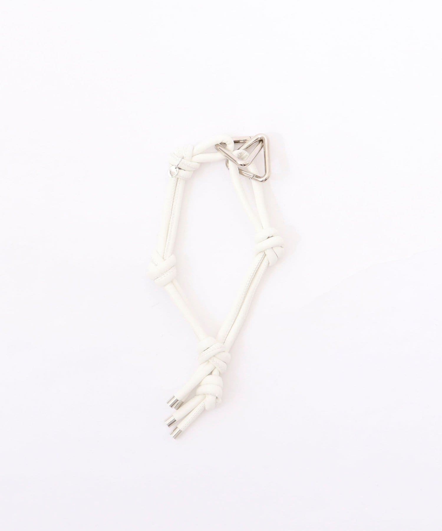 ・ダブルノットのモチーフにハート型のカラビナがポイント