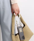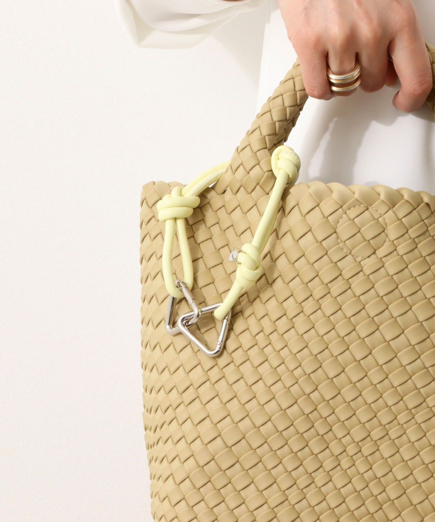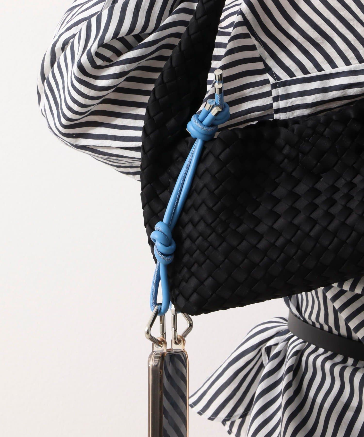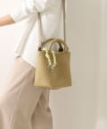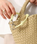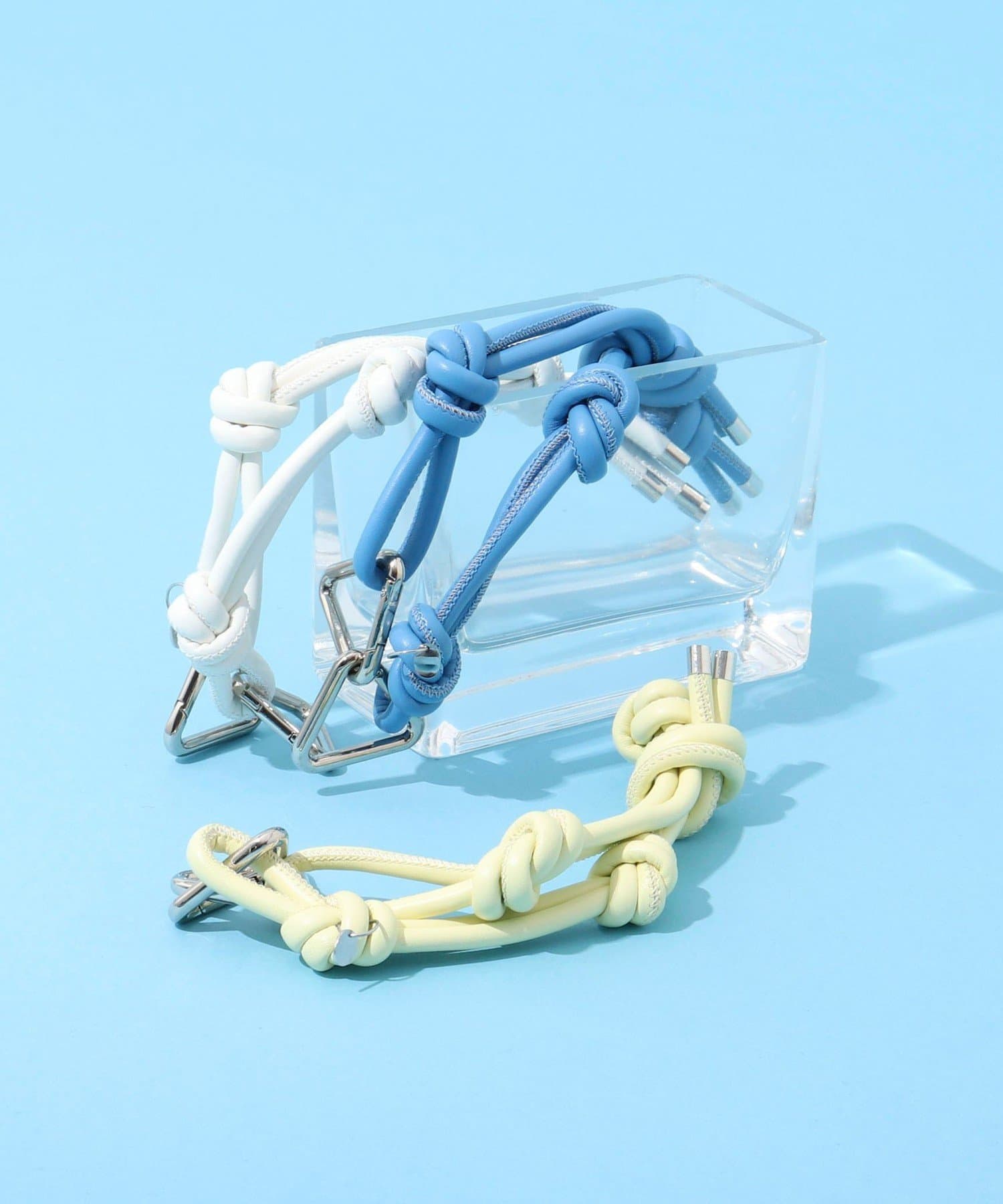 ・ダブルノットのモチーフにハート型のカラビナがポイント