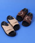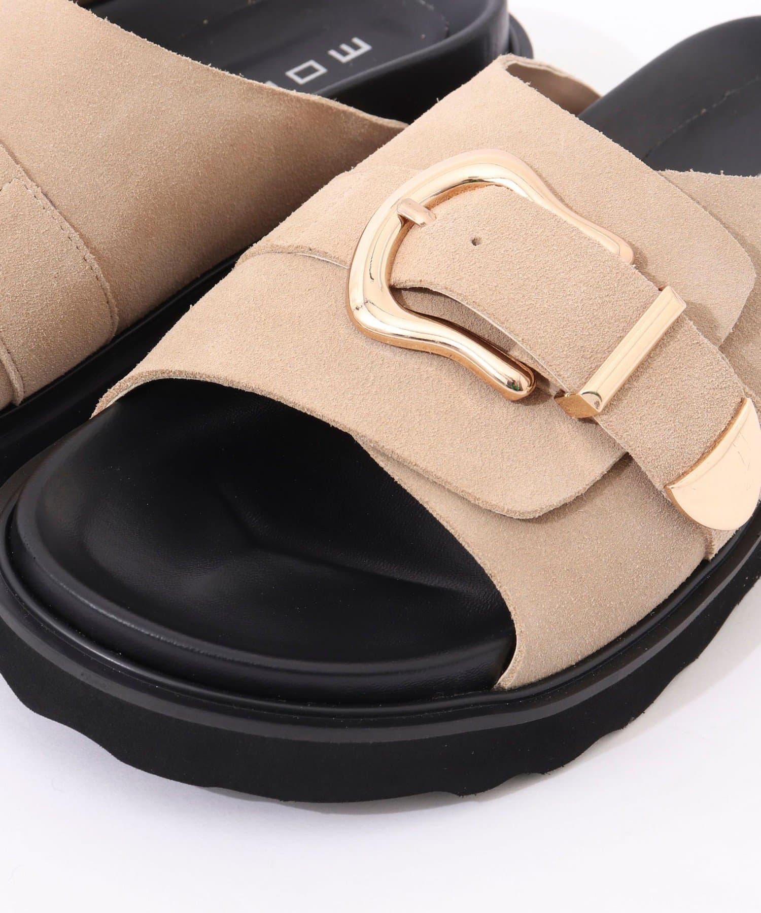 ・存在感のあるゴールドバックルがポイントのスエードサンダル