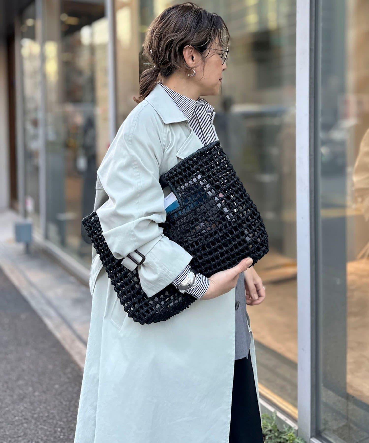 ・BAGMATI×NOLLEY'Sの透かし編みの抜き手型かごバッグ。
