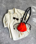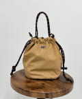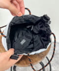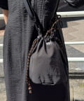 ・ギュッと絞った巾着型がトレンド感のあるシンプルで使い勝手のよいショルダーバッグです