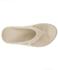 「OOFOS」は、2011 年にマサチューセッツ州でスポーツ選手や大手シューズメーカーの製品開発チームにより開発されたリカバリーシューズブランドです。製品に使われている特殊素材OOfoamは、一般的な EVA 素材のソールと異なり、衝撃の反発を 37% 抑え、着地による足裏への衝撃や膝、腰、背中にかかる負担を軽減します。人間工学に基づいた設計により、足を優しく包み込み、土踏まずをしっかりサポートします。