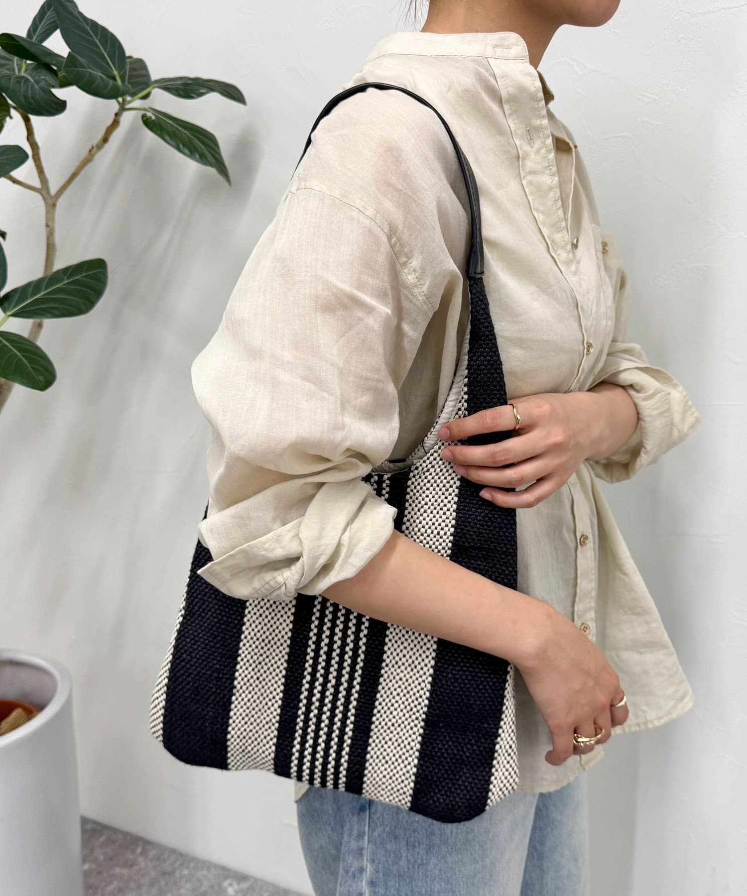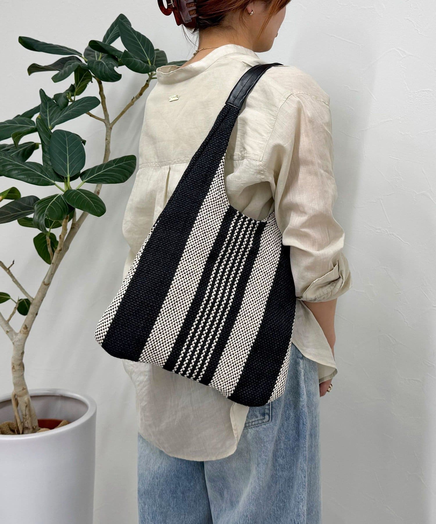 ・やわらかな編み素材で軽く、肩にかけやすいデザインもポイントです