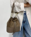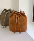 ・スエードとレザーの組み合わせが上品な巾着バッグです