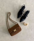 ・女性らしい華やぎを演出するチェーンショルダーとゴールド金具が高級感をプラス