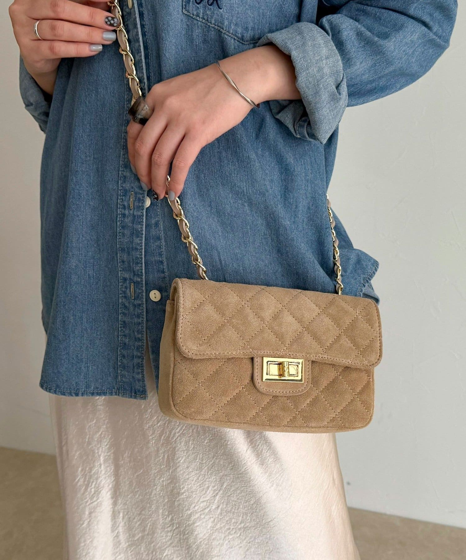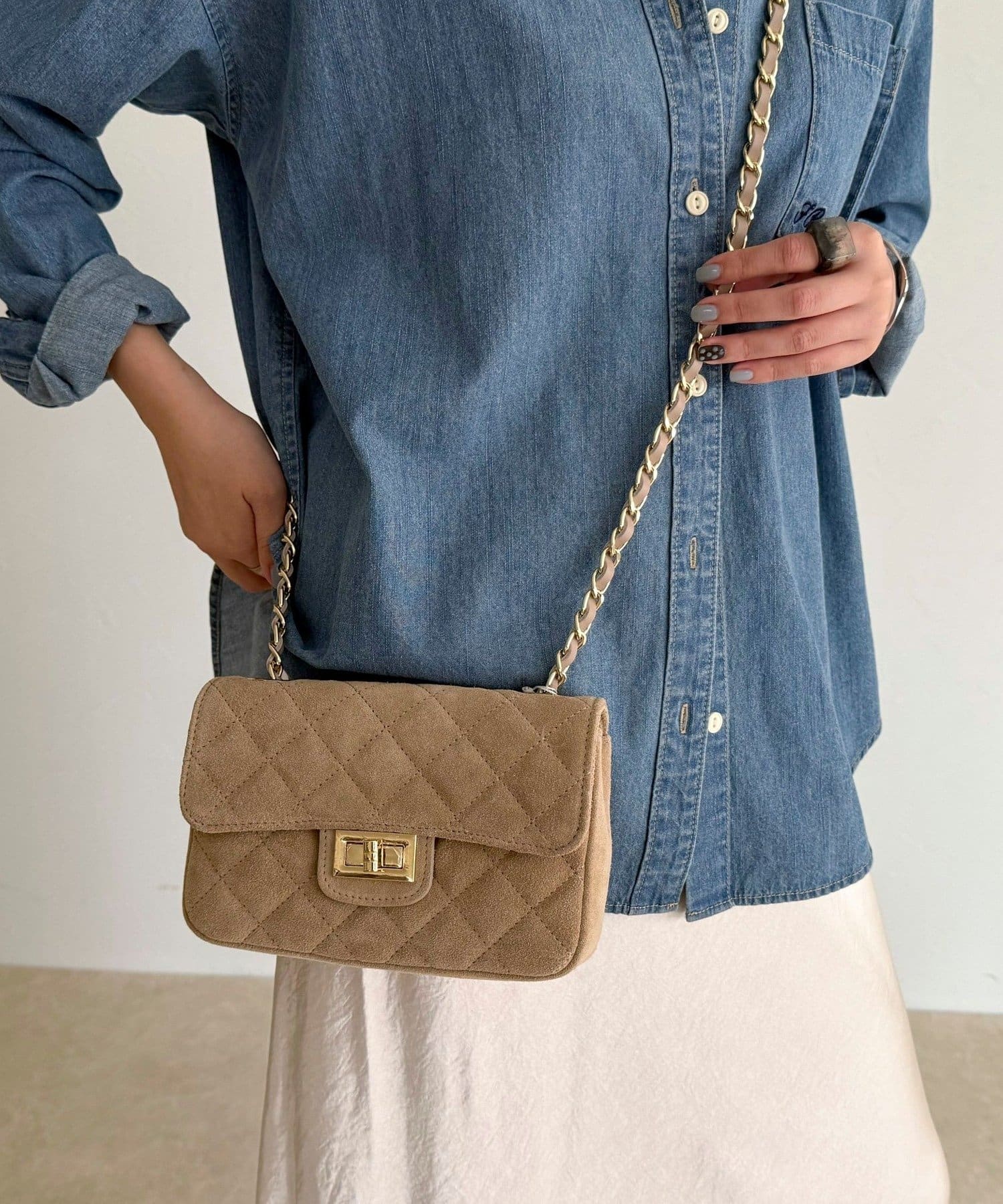 ・柔らかなスエード素材にキルティング加工を施したショルダーバッグ