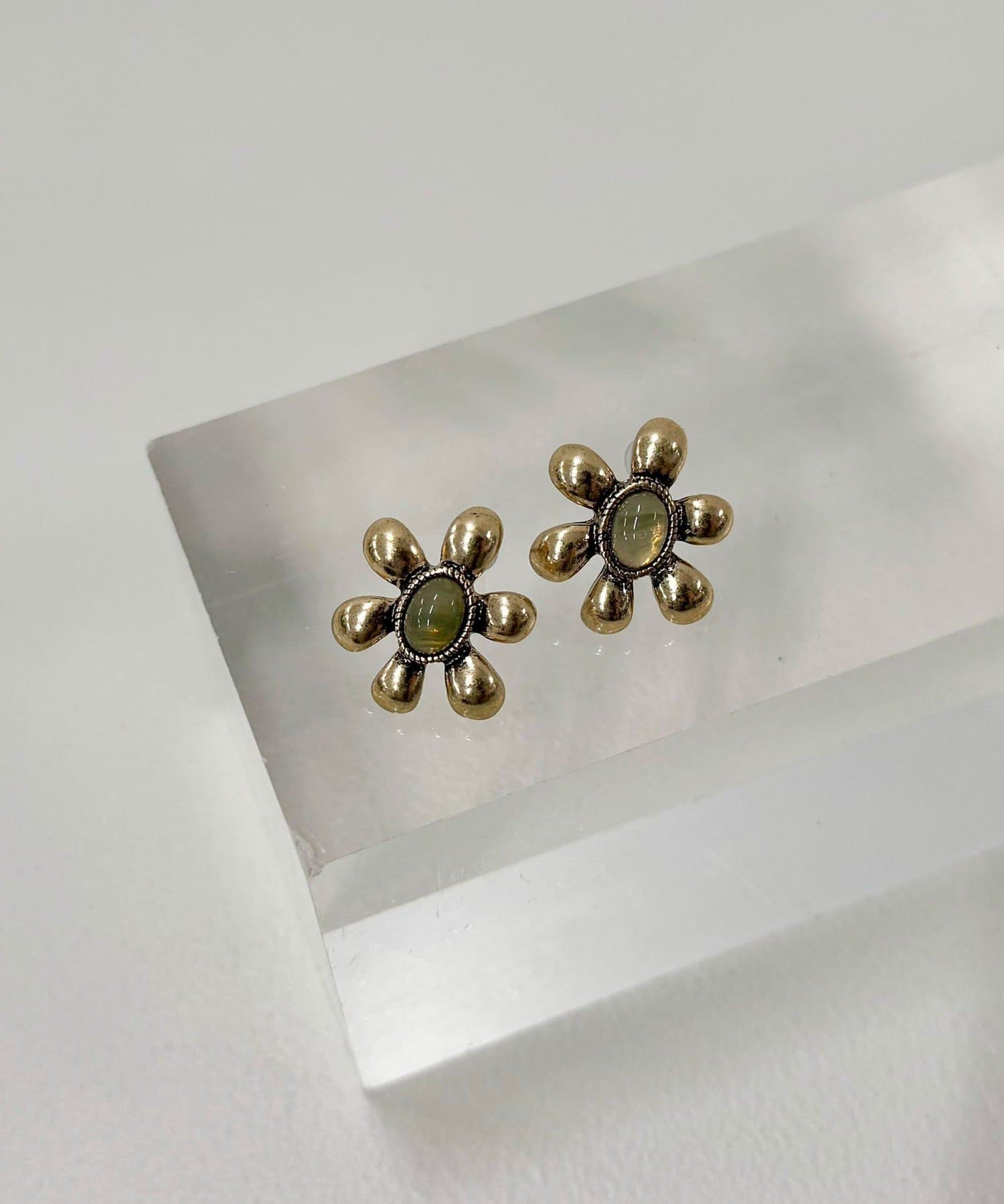 ぷっくりデザインが可愛いカラーストーンフラワーピアス