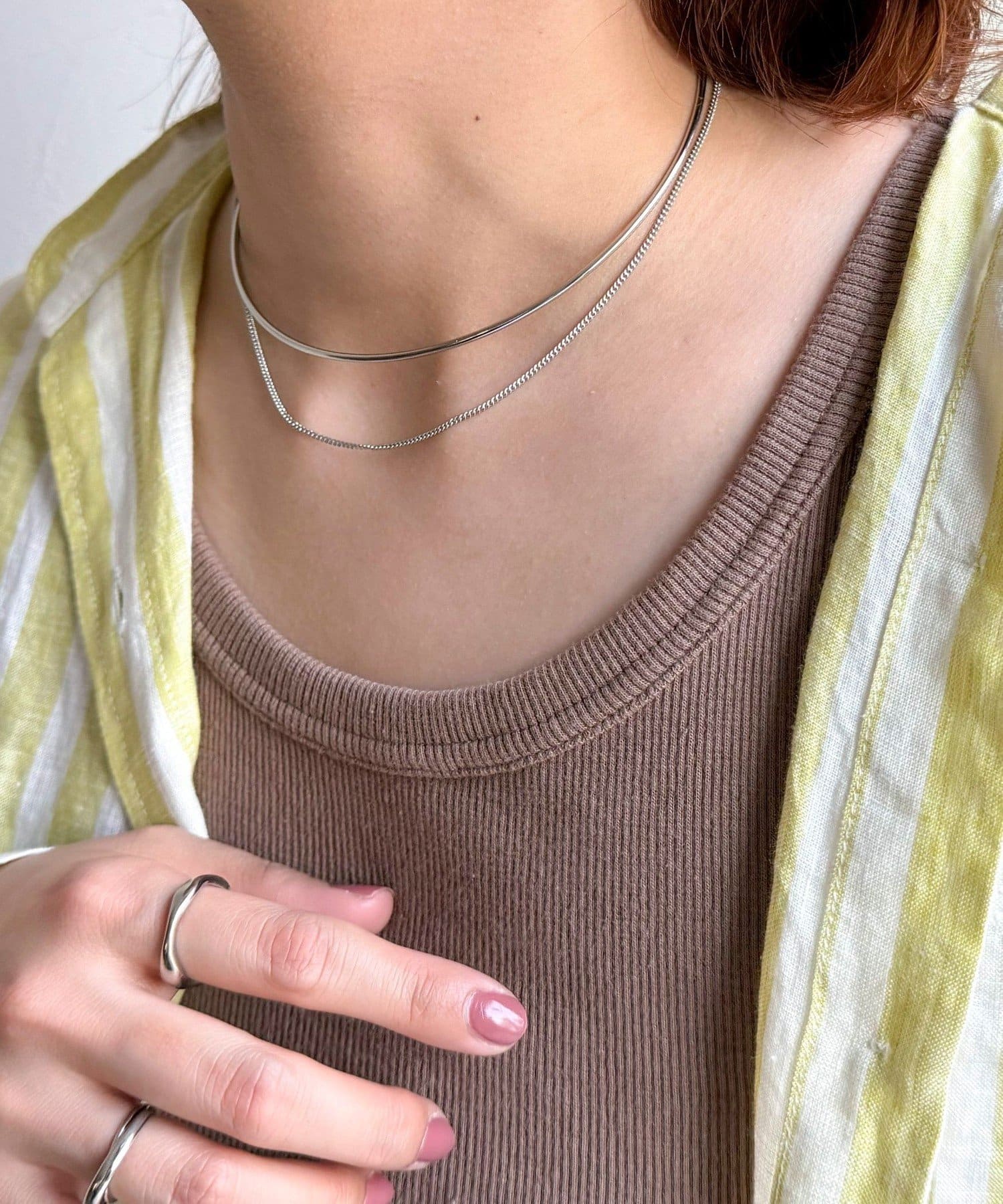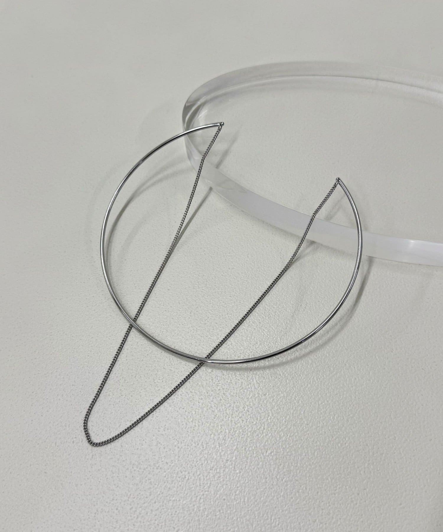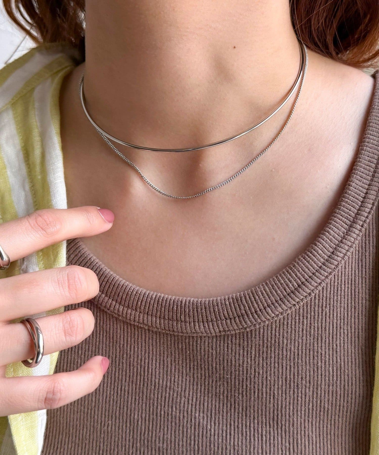 ・シンプルなネックカフに華奢なチェーンを重ねたアイテム