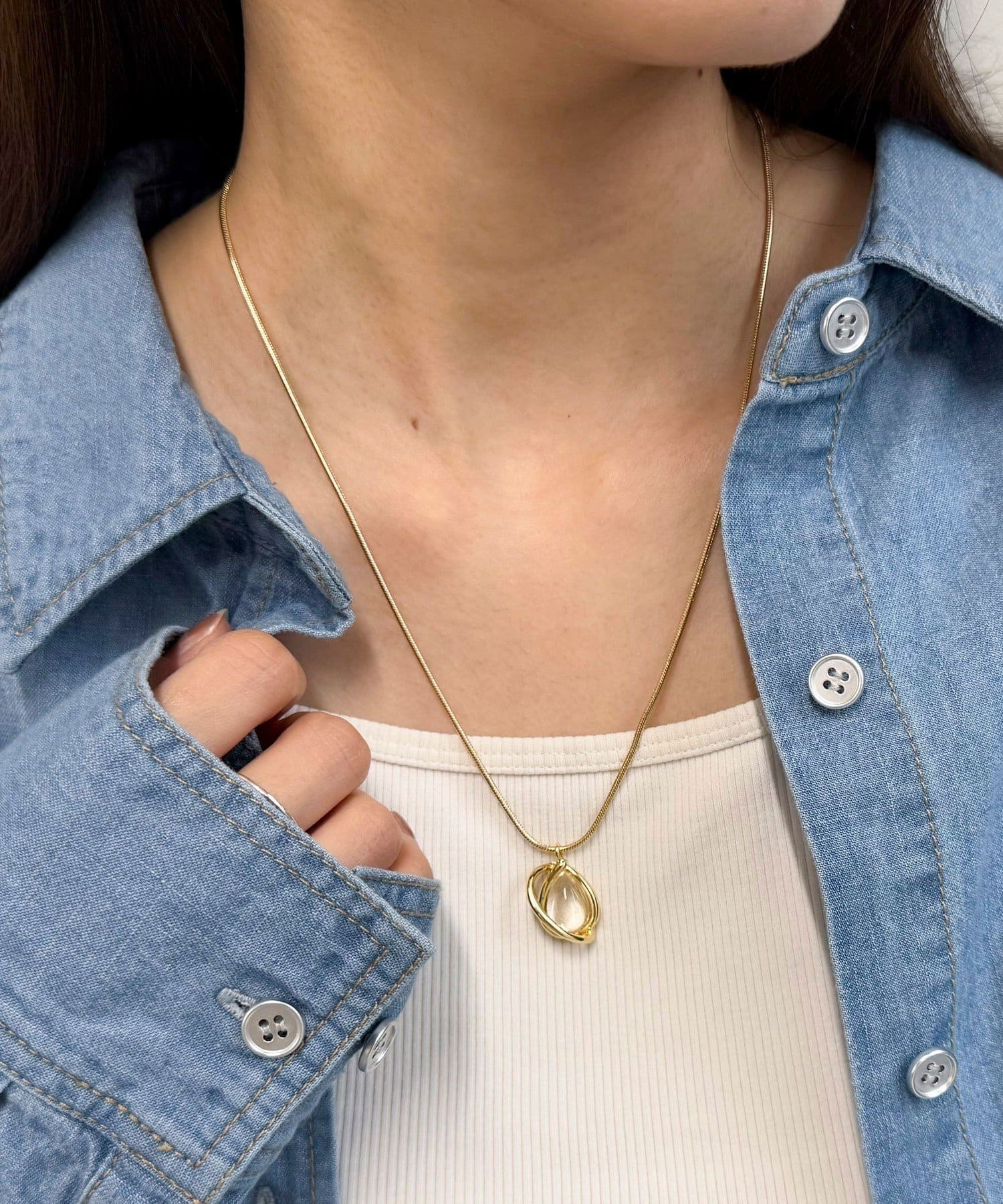 ・チェーンはアジャスト機能付きで、コーディネートに合わせて長さを調整して着用いただけます