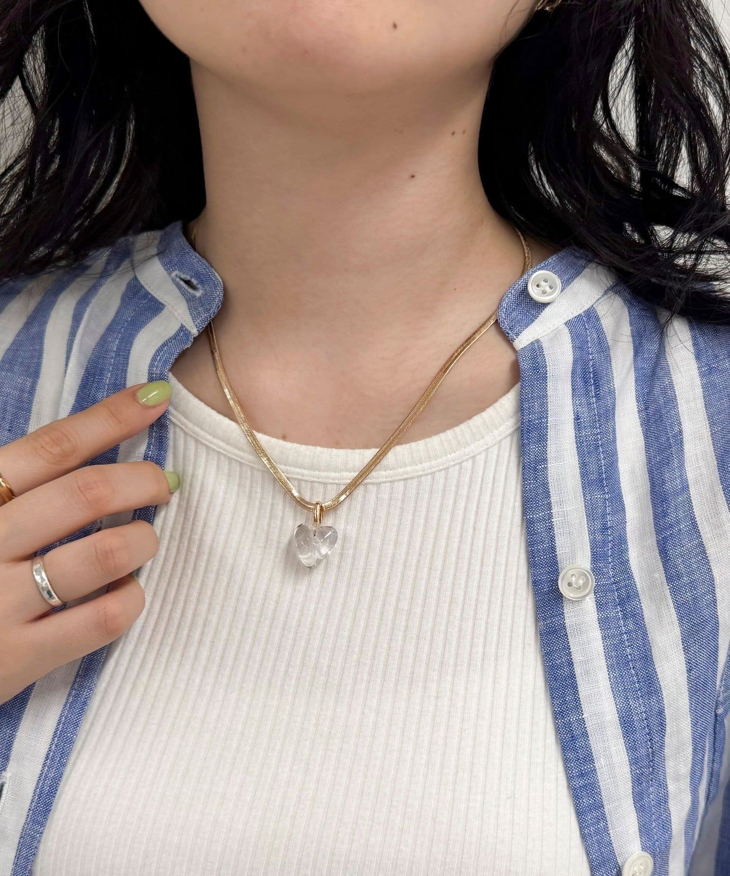 クリアハートの透明感が春夏コーデにぴったりなネックレス