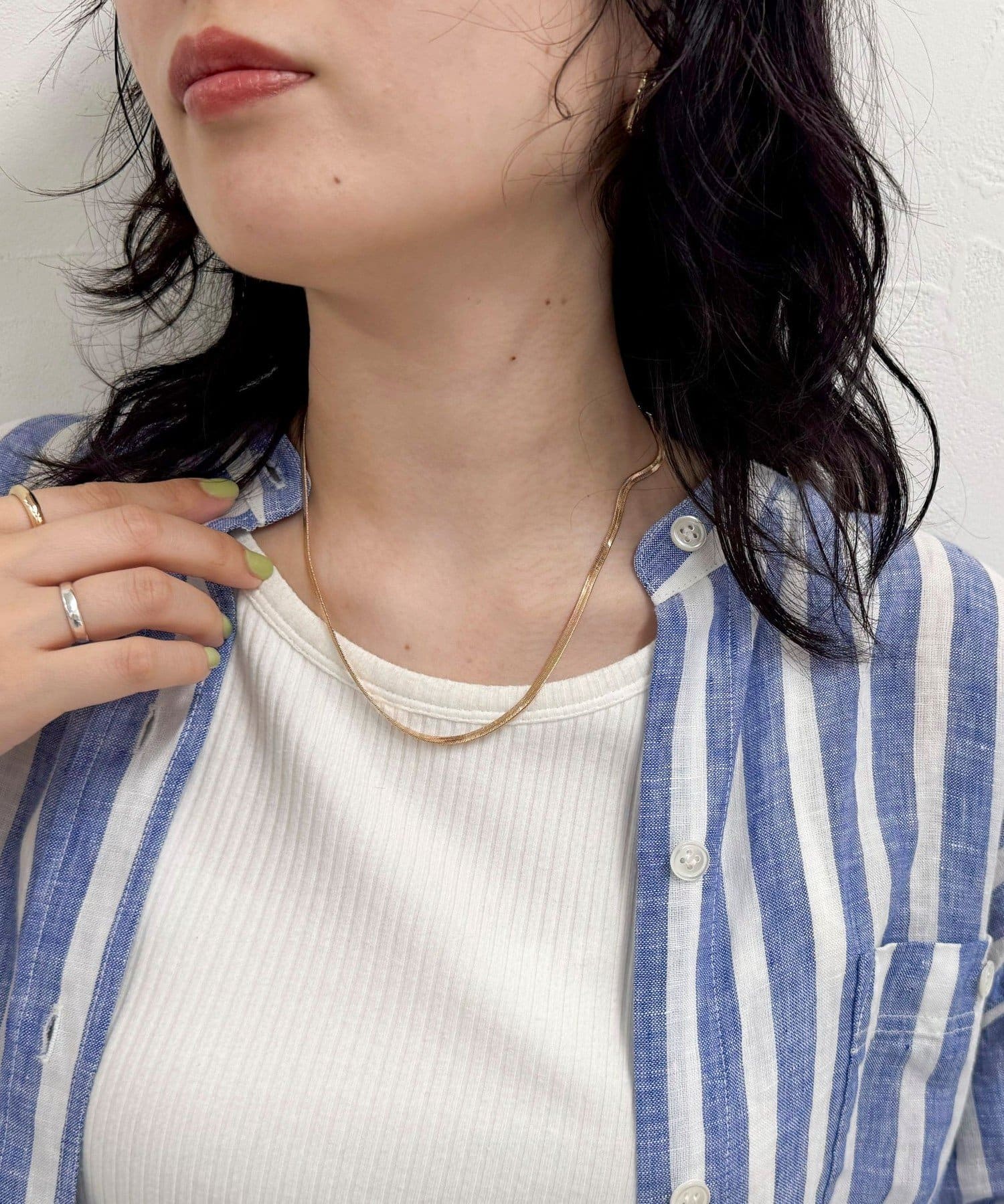 ・可愛くなりがちなハートモチーフですが、スネークチェーンと組み合わせることで程よい甘さに!
