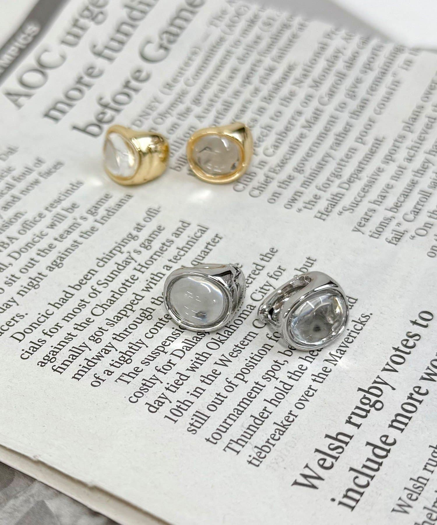 ・艶のあるフレームとクリアストーンの組み合わせが上品な印象を演出してくれるストーンピアスです
