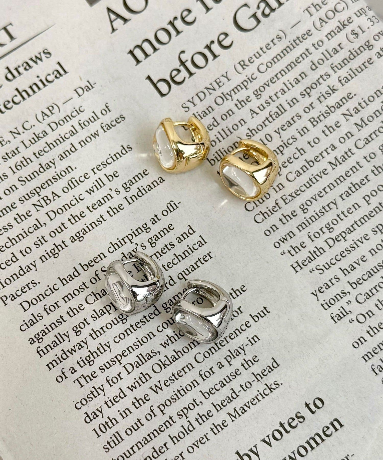 透明感のあるストーンが耳元を明るくしてくれるワンタッチピアス
