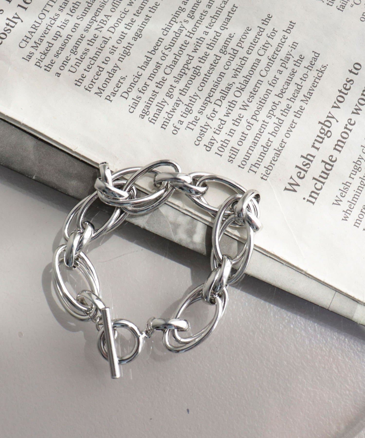 手元にこなれ感をプラスしてくれるだ円チェーンブレス