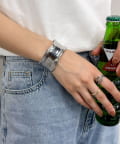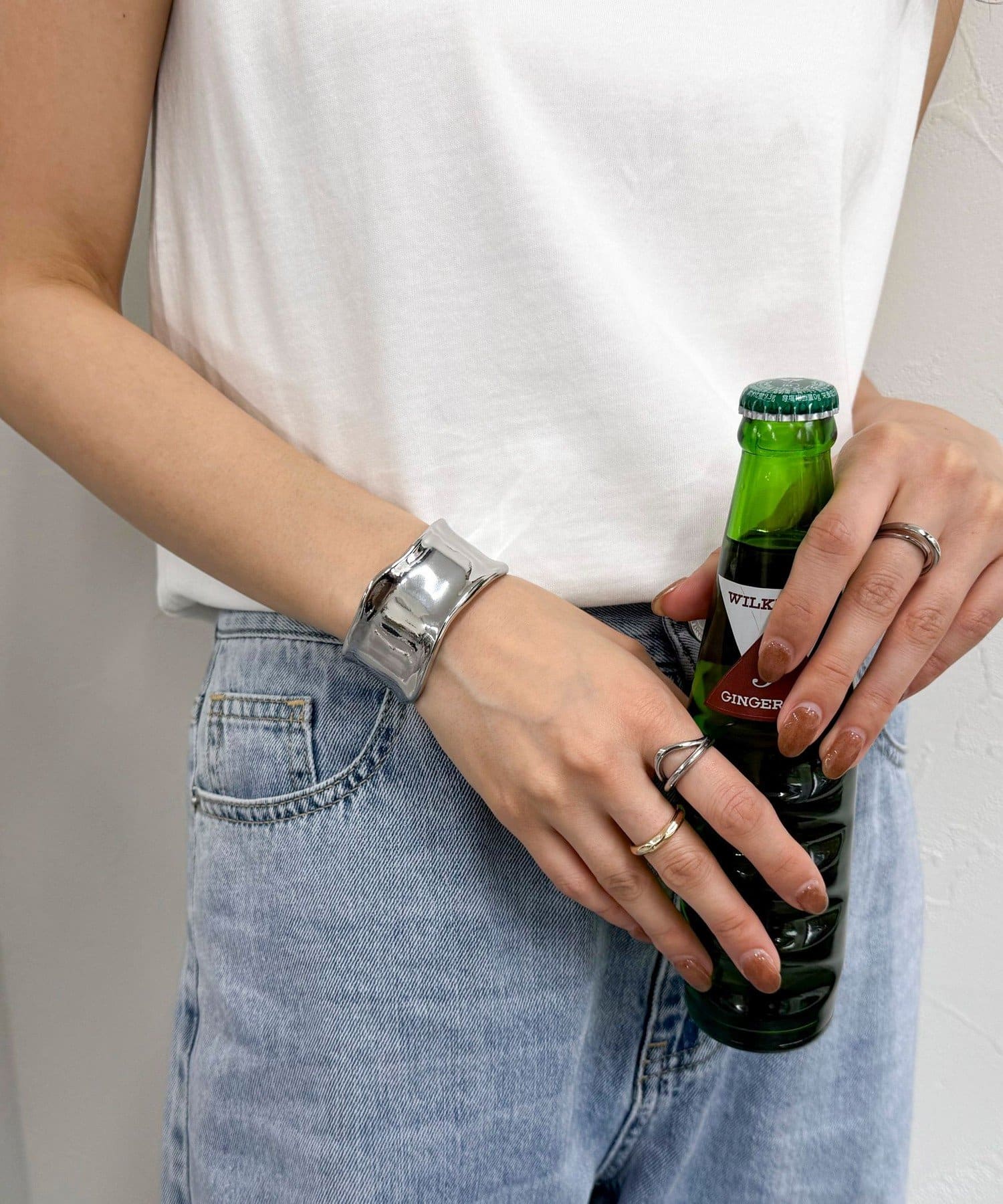 ・ワイドなシルエットで存在感のあるデザインのメタルバングルです